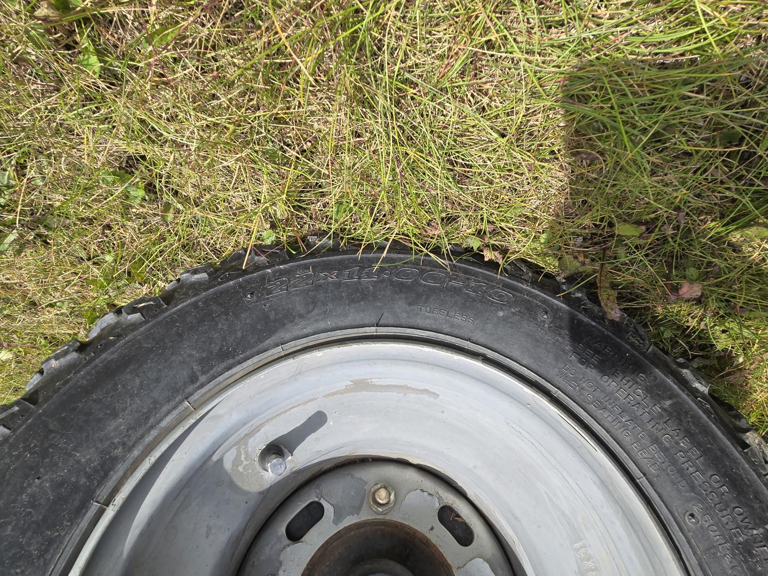 286 cc engine, automatic transmission, reverse, manual dump box, hitch, front winch, 22X9.00-10 front tires, 25X11.00-10 rear tires
