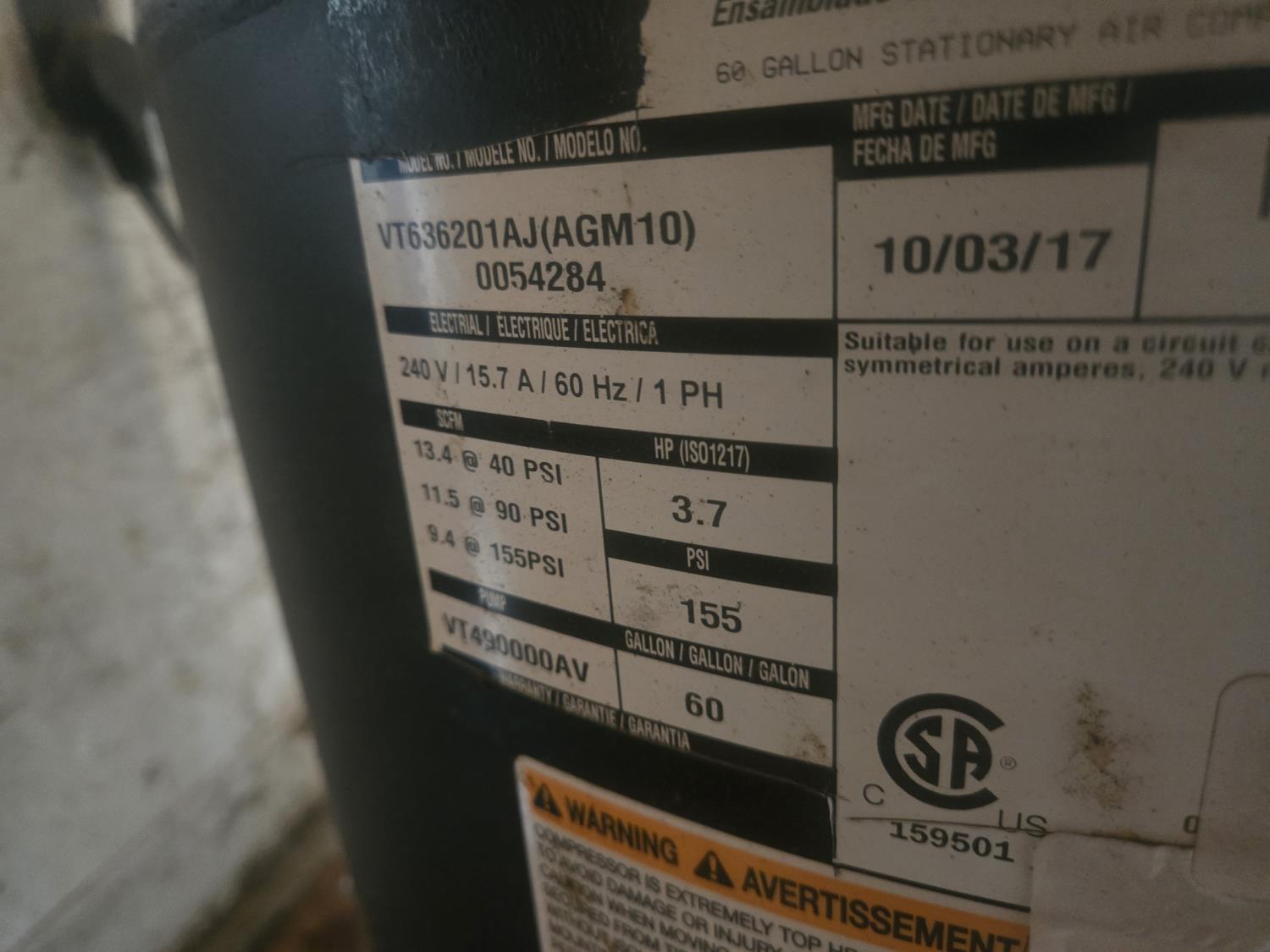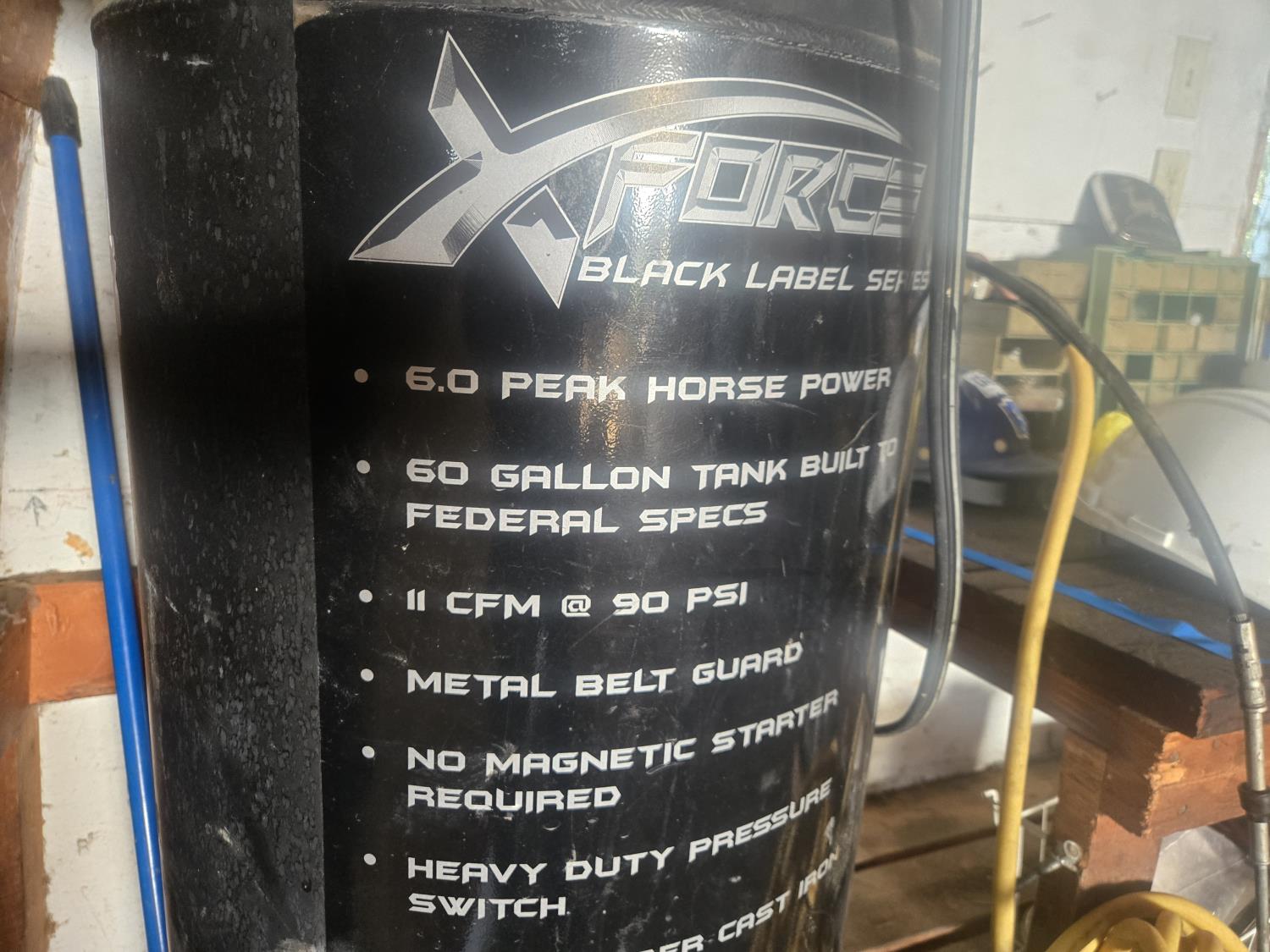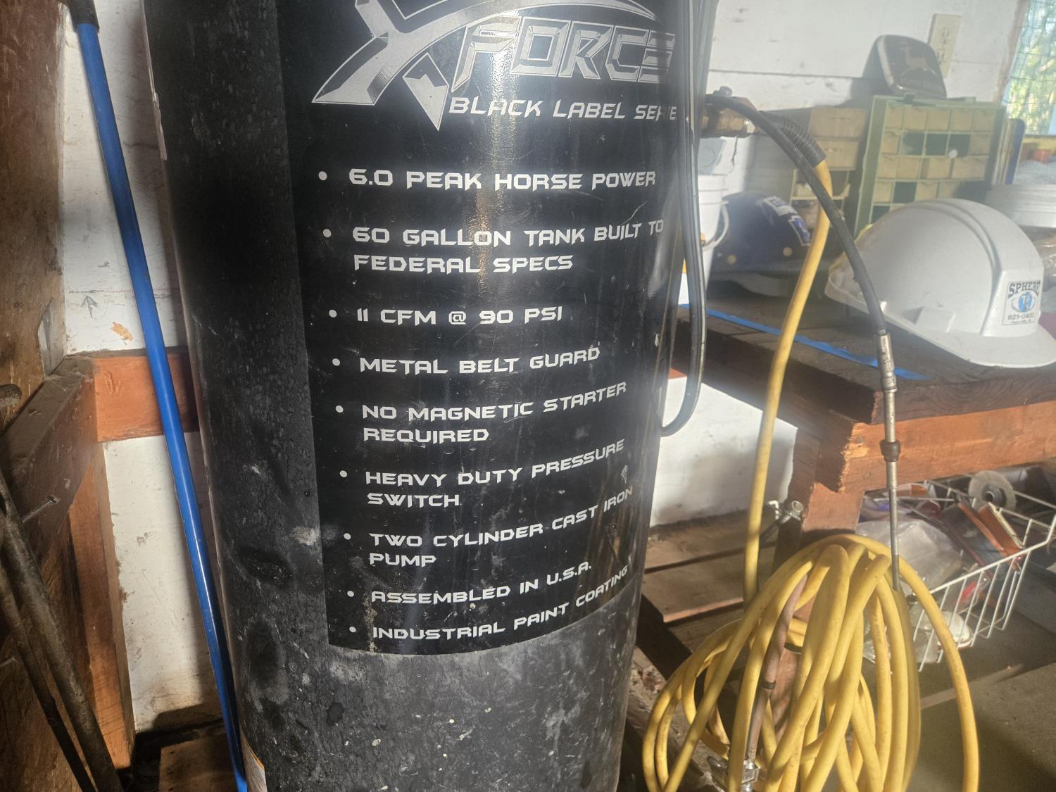 6 HP motor, 230 volt, single phase, air hose, 60 gallon tank, no magnetic starter required
