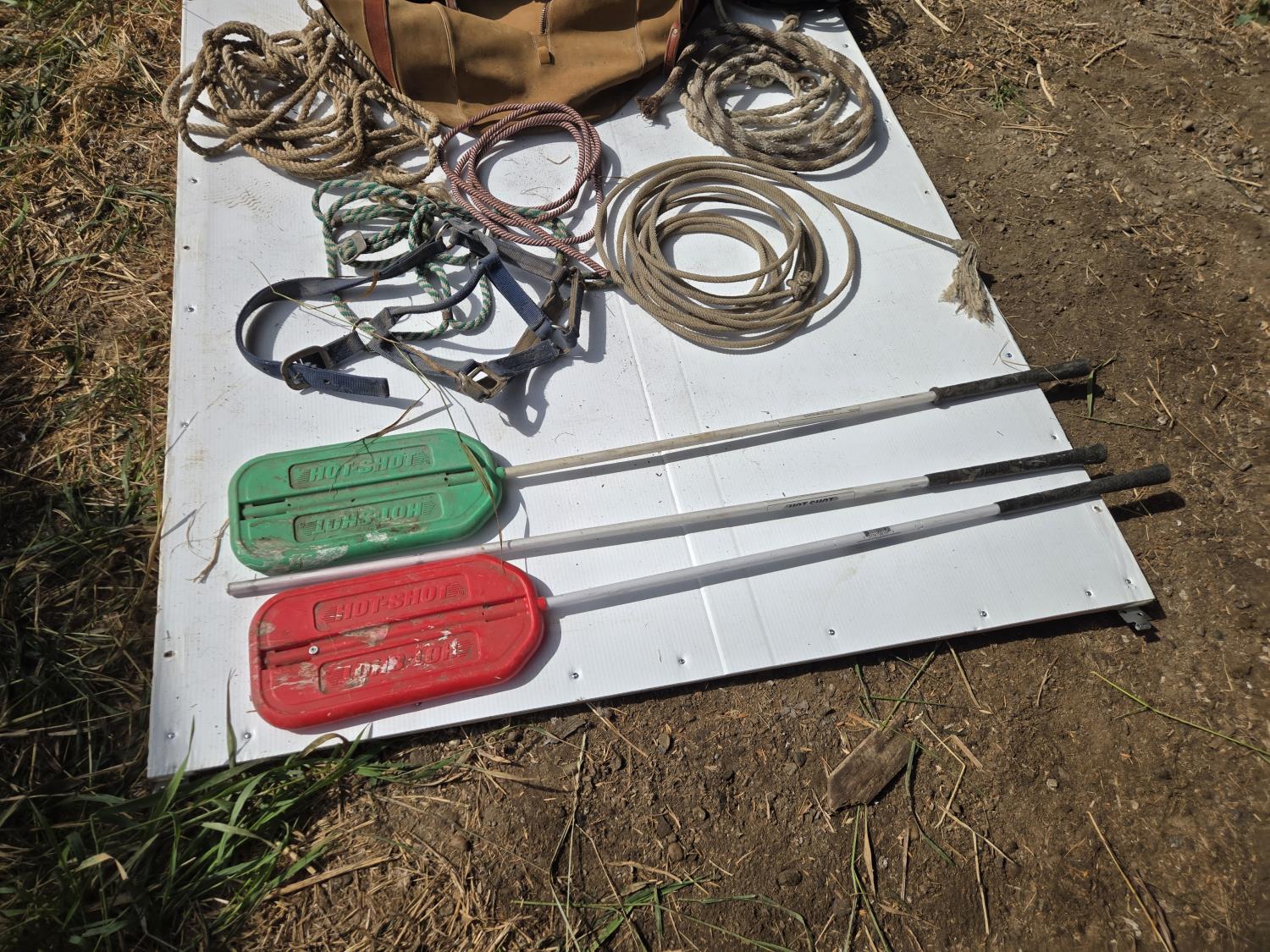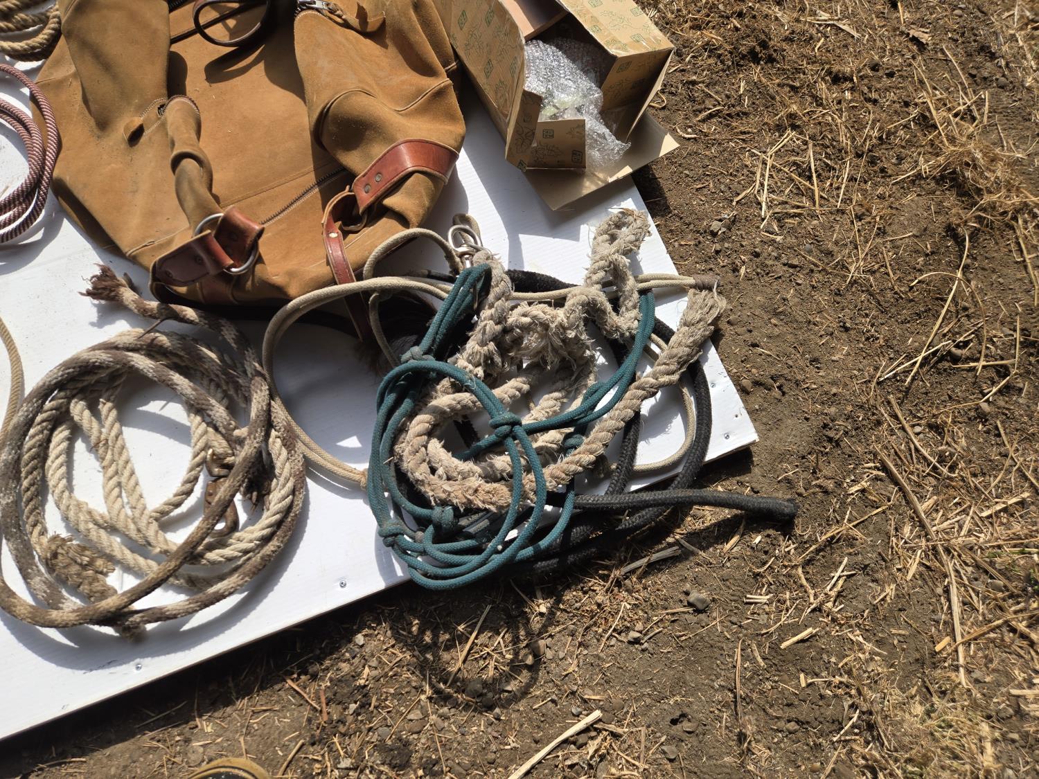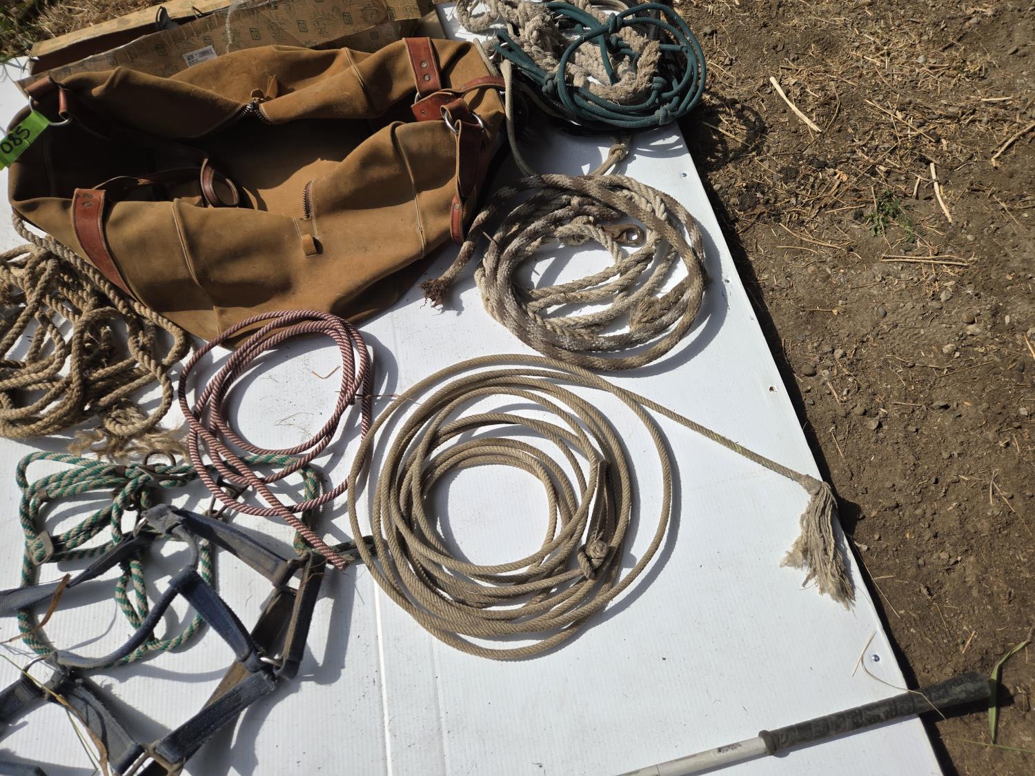 205 Ropes, Halters, (2) Stock Paddles, Decorative Pot Hanger, Leather Bag