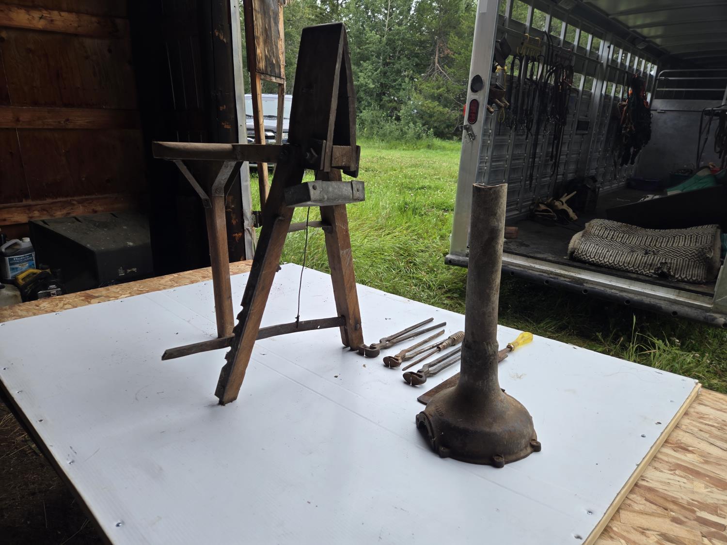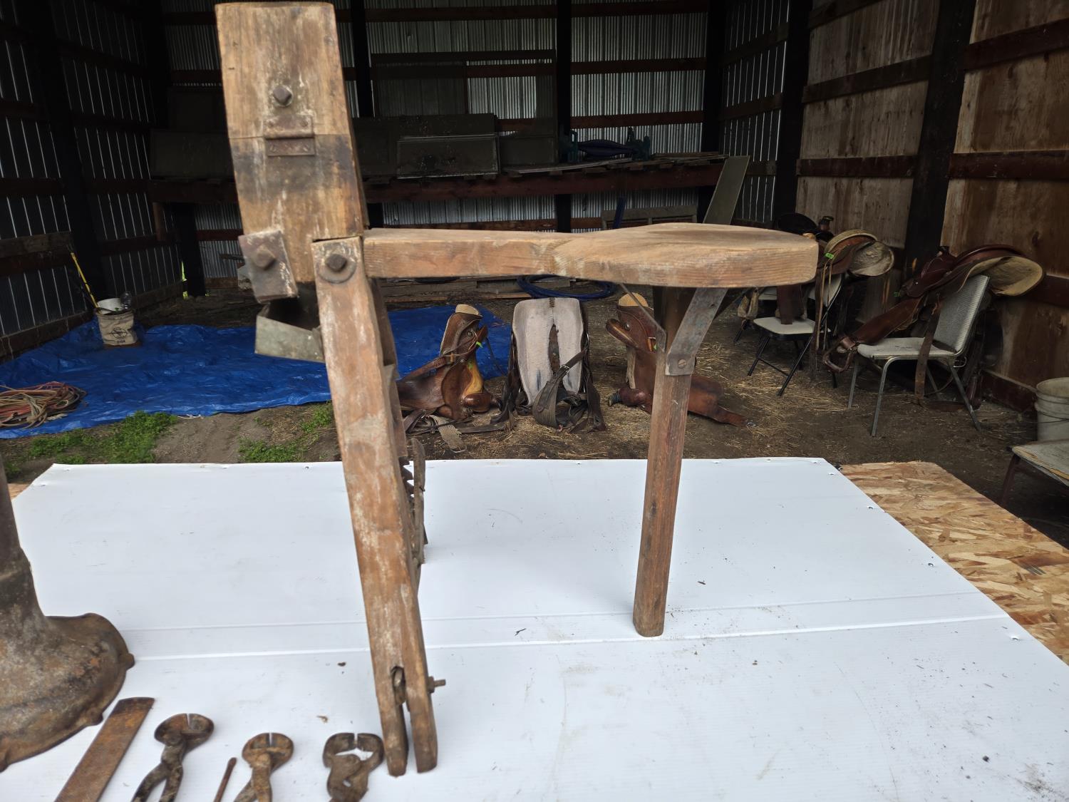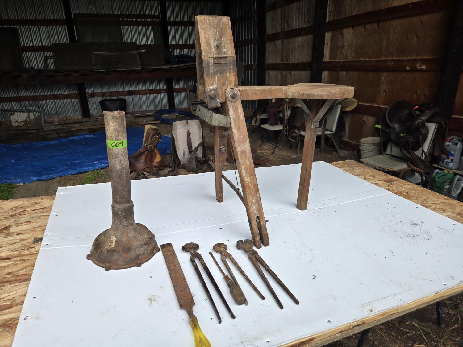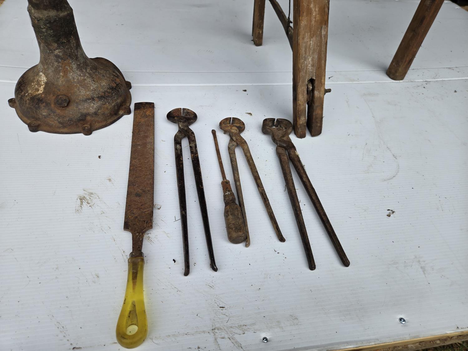 190 Saddle Makers Vise, Hoof Nippers, Large Rasp, Hoof Stand