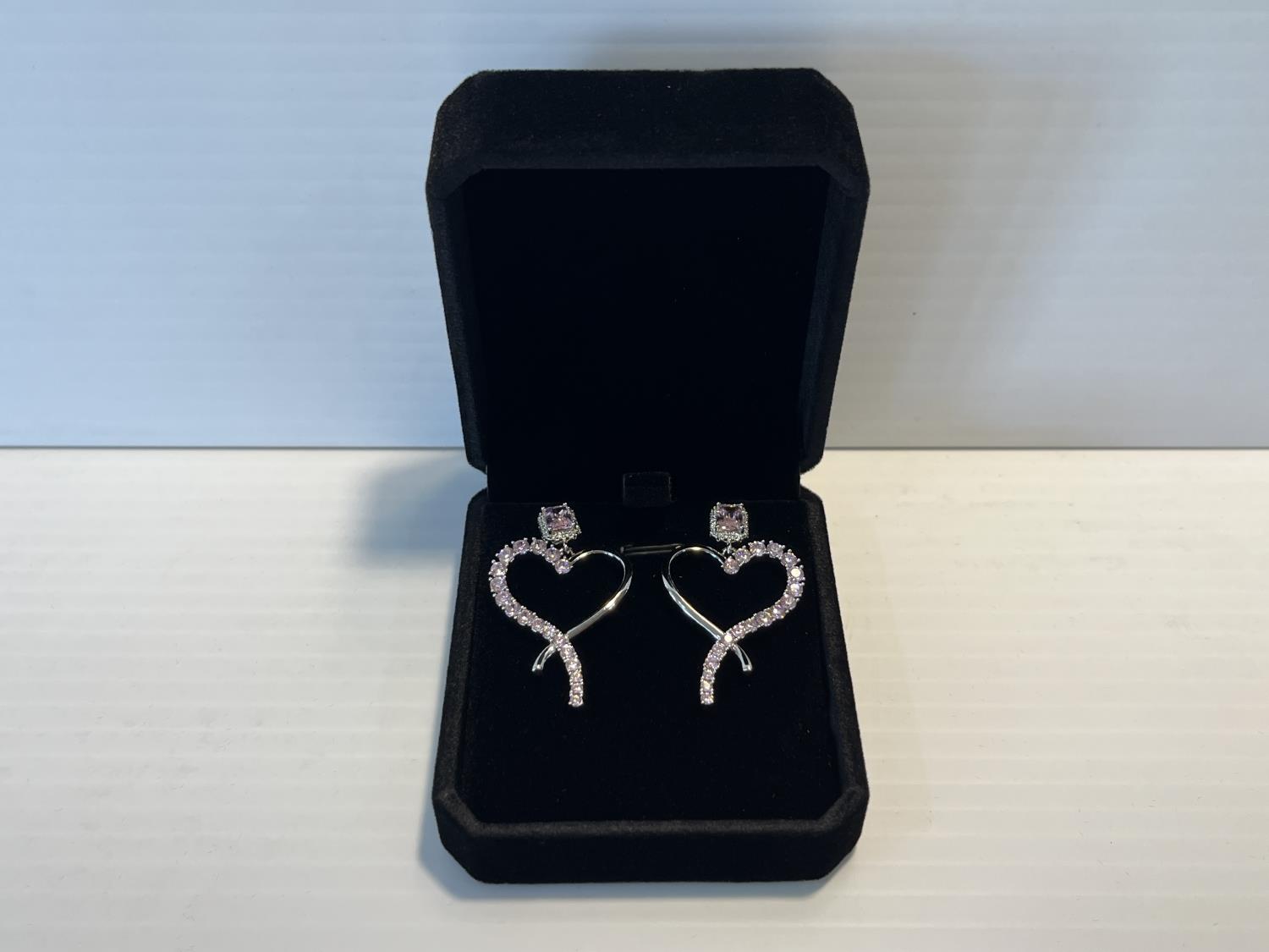 1311 1.0 Ct Pink Emerald Cut Simulated Diamond Heart Earrings (Unused)