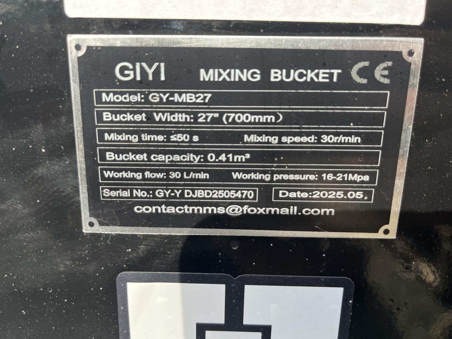 1553 GIYI MB27 27 Inch Hydraulic Mixing Bucket - Skid Steer Attachment (Unused)