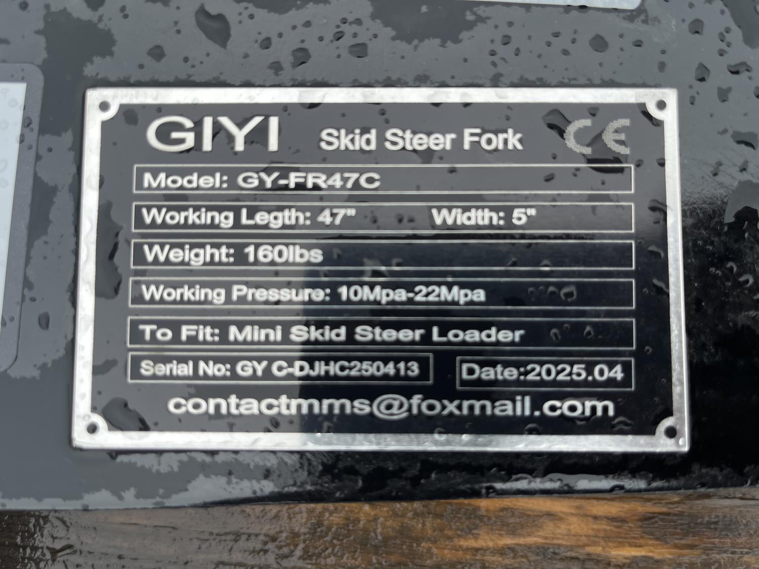 1633 GIYI GY-FR47C 47 Inch Pallet Forks - Mini Skid Steer Forks