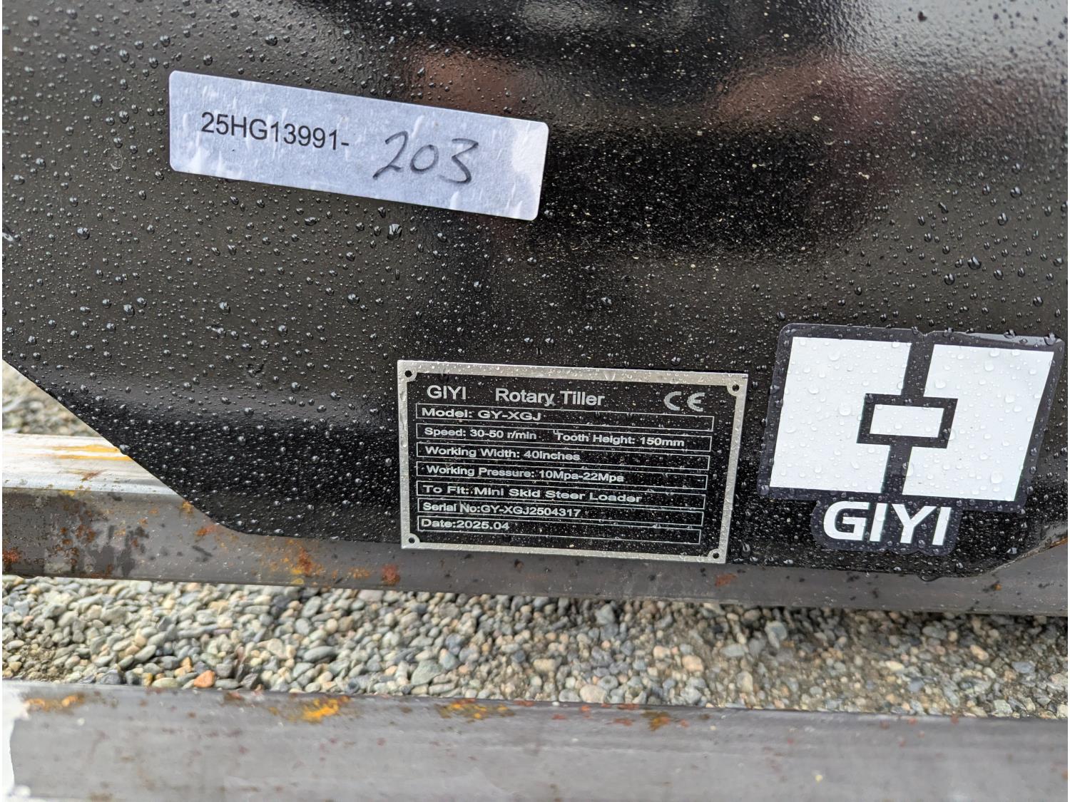 1620 Giyi GY-XGJ 40 Inch Hydraulic Rotary Tiller - Mini Skid Steer Attachment (Unused)