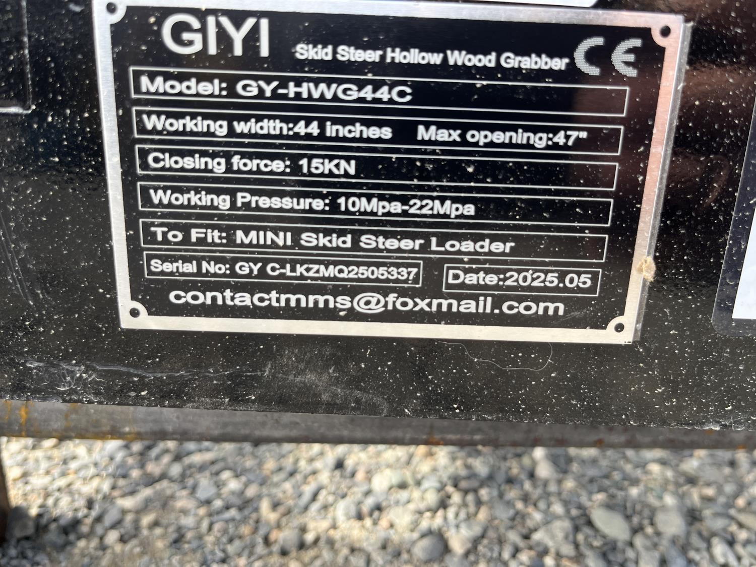 1606 GIYI HWG44C 44 Inch Hydraulic Grapple - Mini Skid Steer Attachment (Unused)
