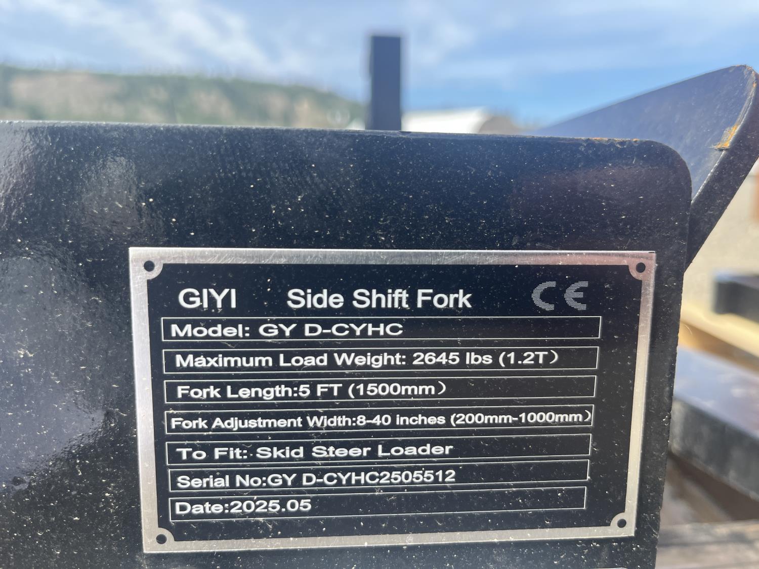 1596 GIYI Hydraulic Side Shift Pallet Forks - Skid Steer Attachment (Unused)