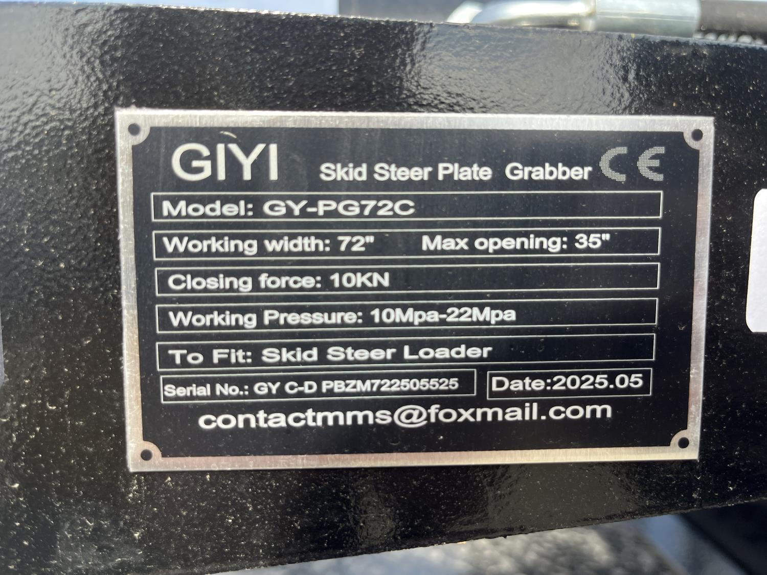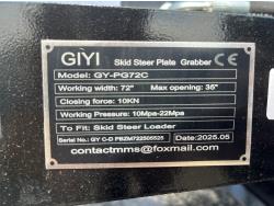 1550 GIYI PG72C 72 Inch Hydraulic Plate Grabber - Skid Steer Attachment (Unused)
