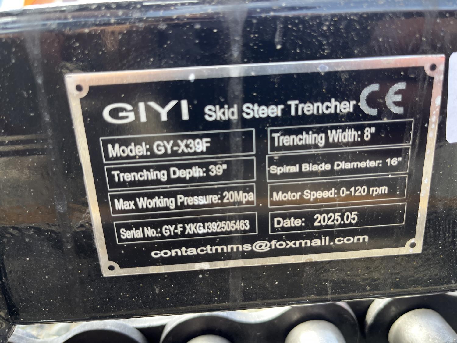 1619 GIYI X39F 39 Inch Hydraulic Trencher - Mini Skid Steer Attachment (Unused)
