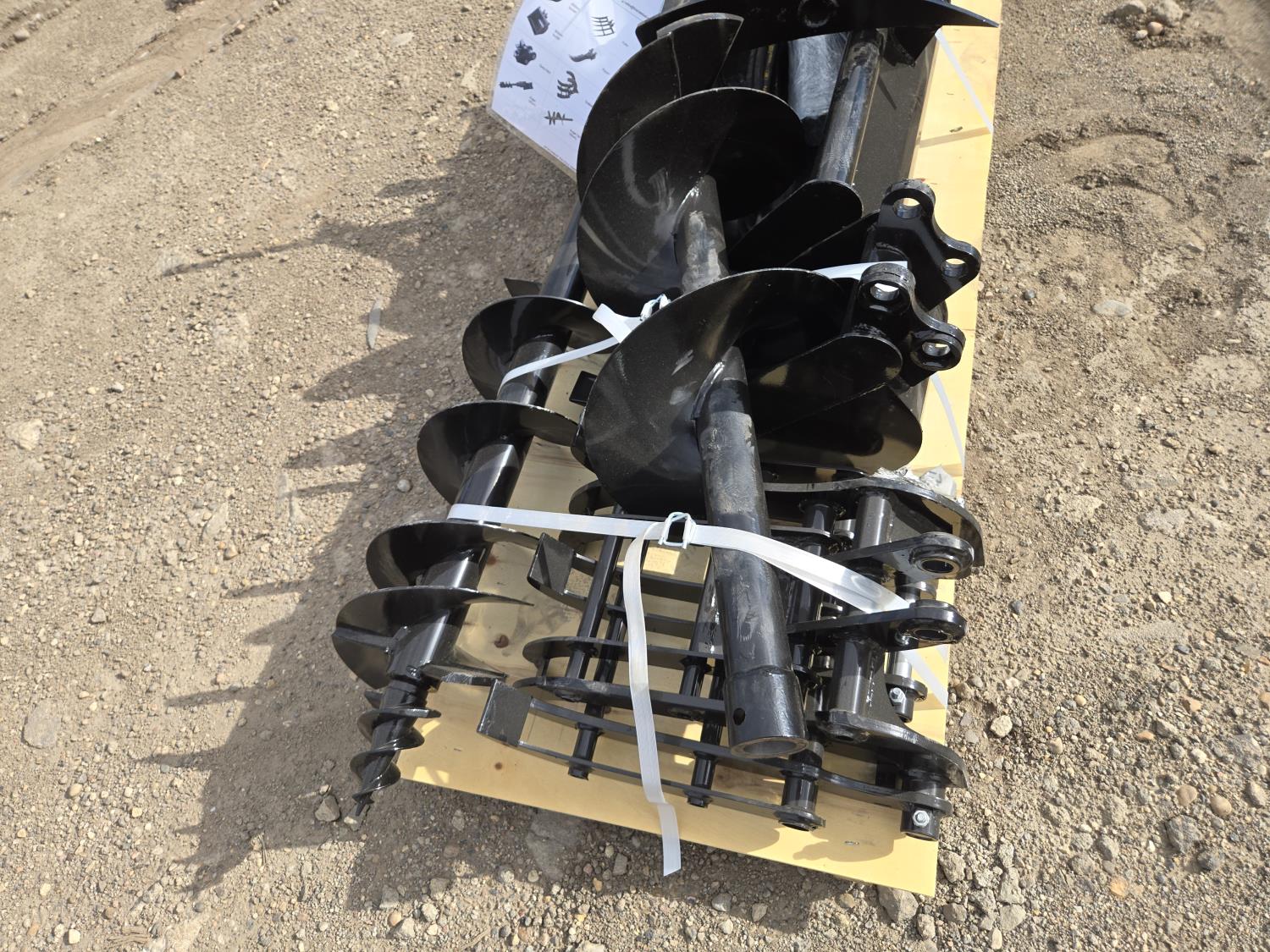 quick attach, rake, ripper, grabber, hydraulic auger with 8 inch rod, 12 inch auger rod, 8 inch dig bucket, 32 inch smooth bucket, fits 1-2 ton min- excavator, 1 inch pin diameter