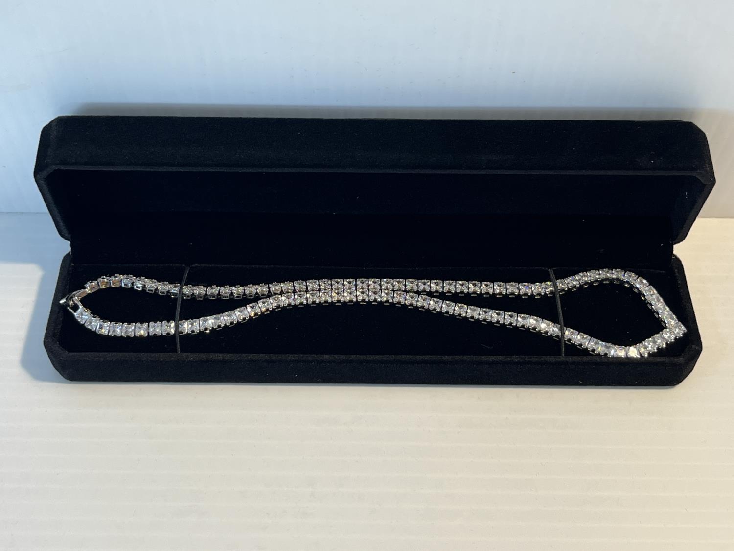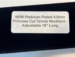 1318 Platinum Plated 4.0mm Princess Cut Tennis Necklace (Unused)