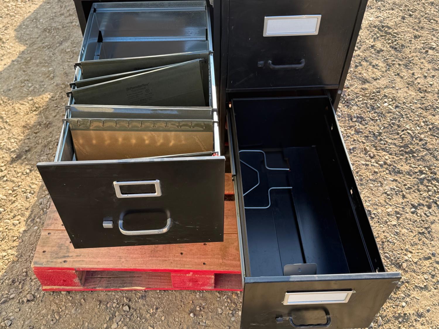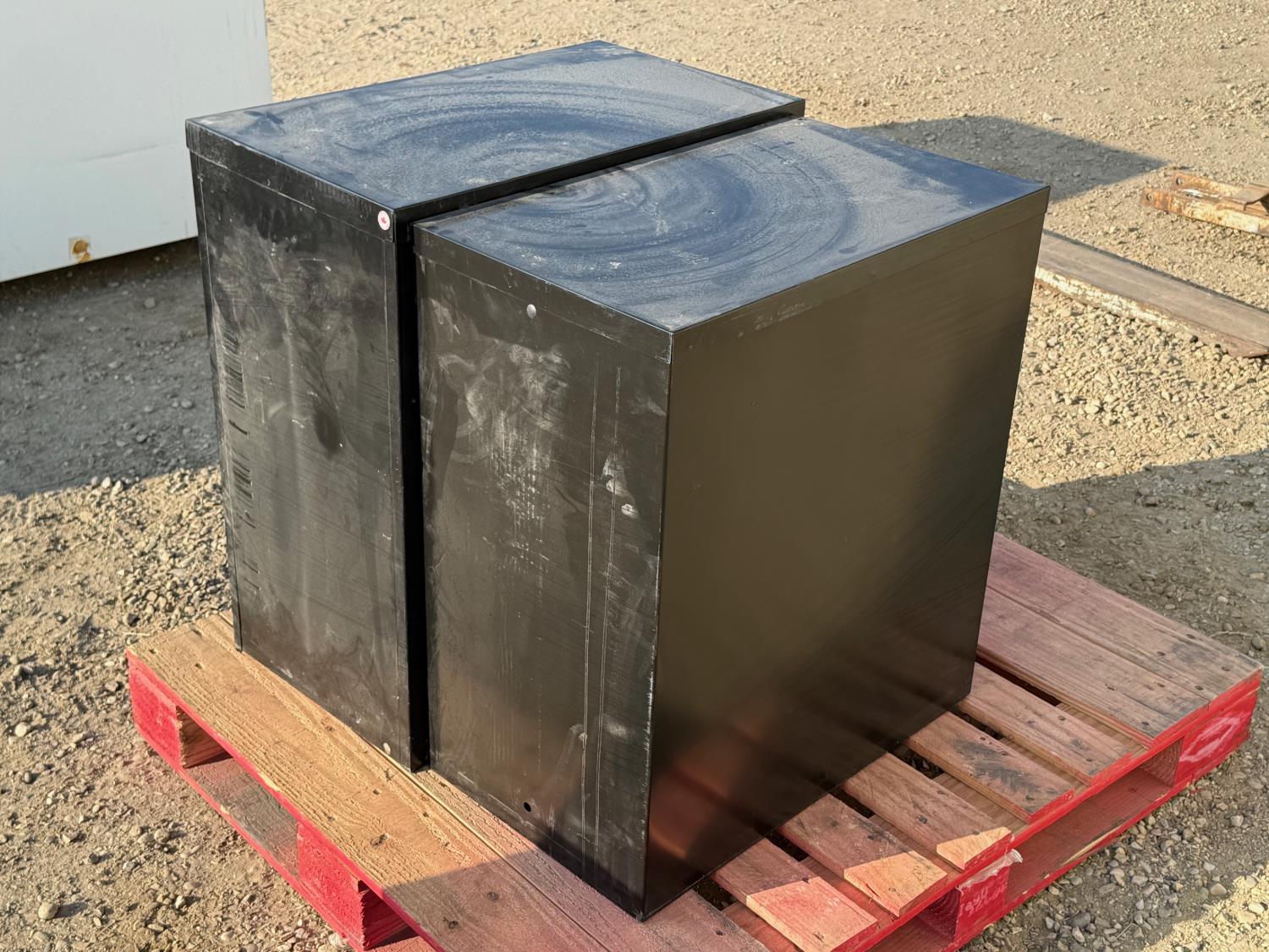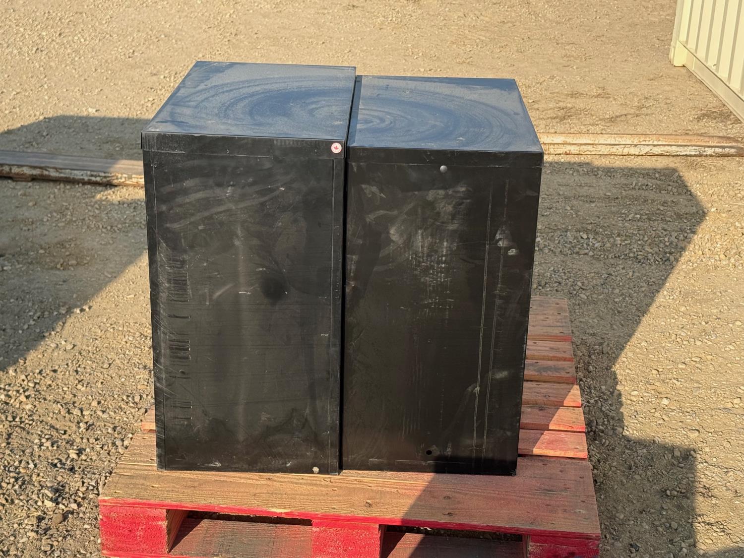 Two 2-drawer file cabinets. 15 inch wide x 27 inch deep x 29 inch tall (no keys)