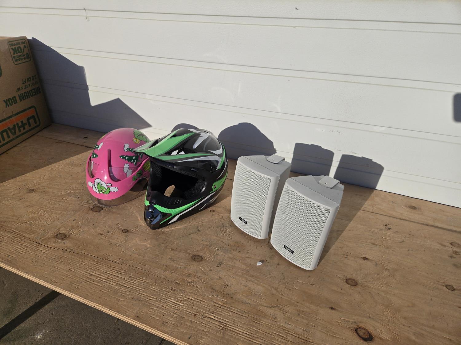5247 (2) Small Helmets, (2) Fusion Speakers