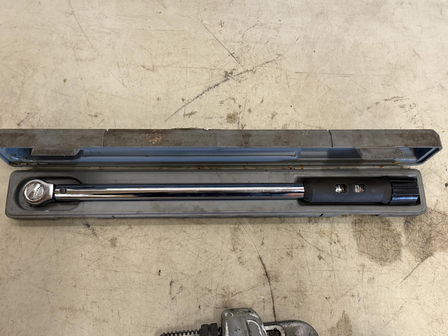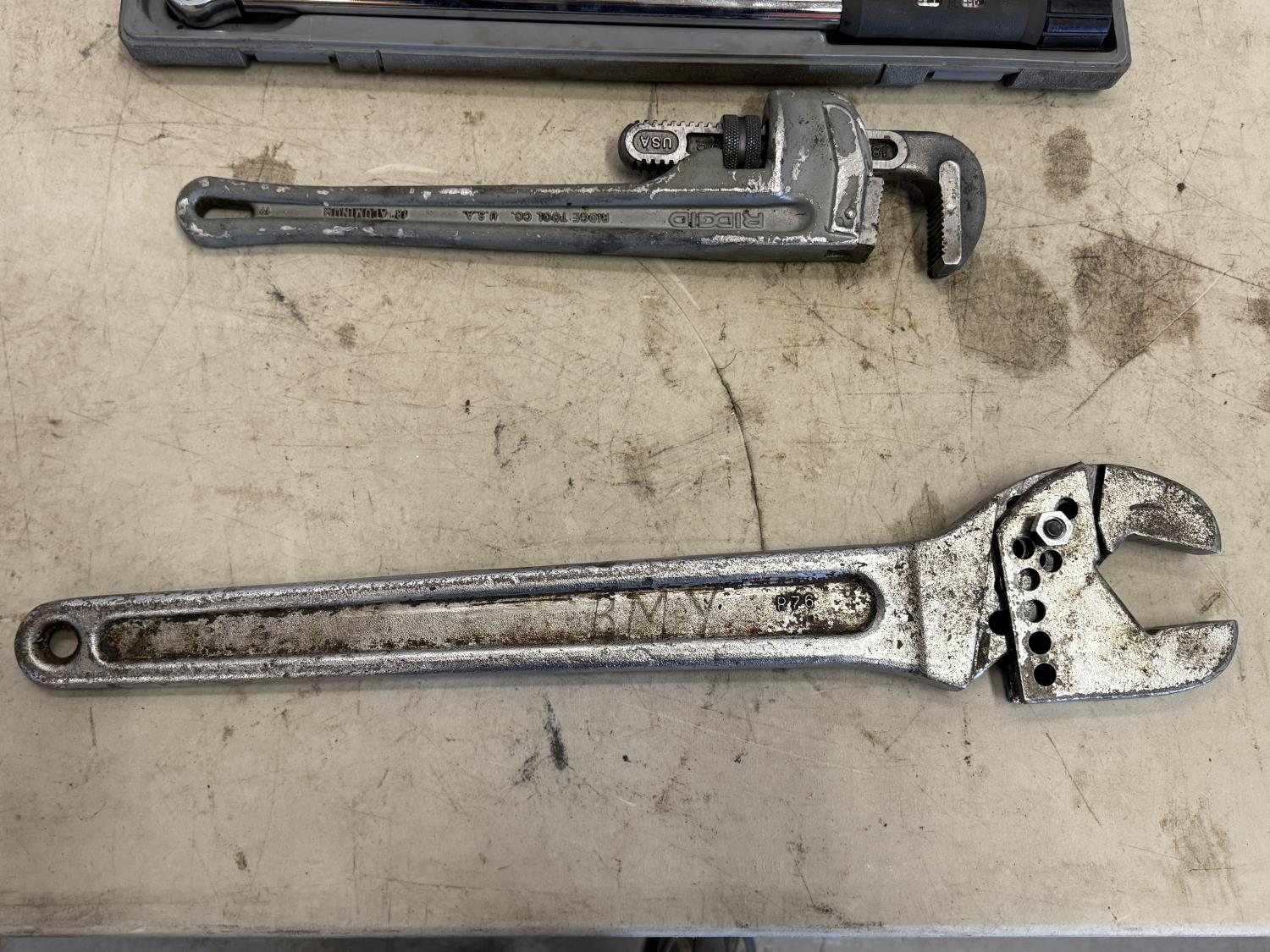 18 inch Rigid pipe wrench, OTC adjustable wrench and a McMaster Carr 1/2 inch torque wrench