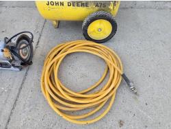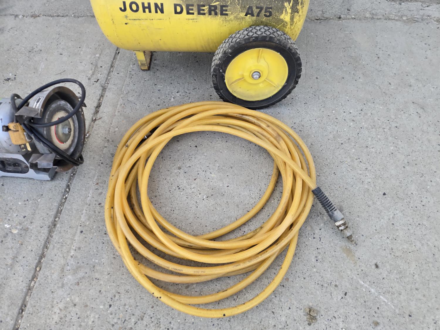 5334 John Deere A75 Air Compressor with Air Hose & 6 Inch Bench Grinder