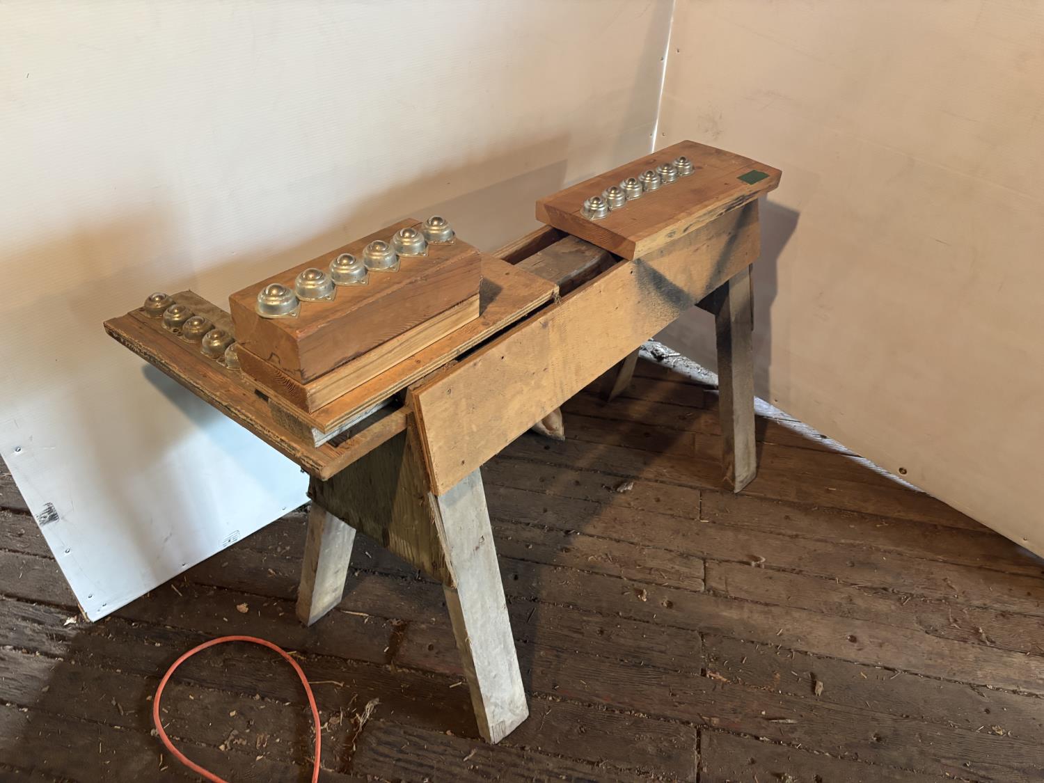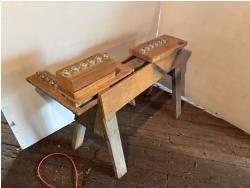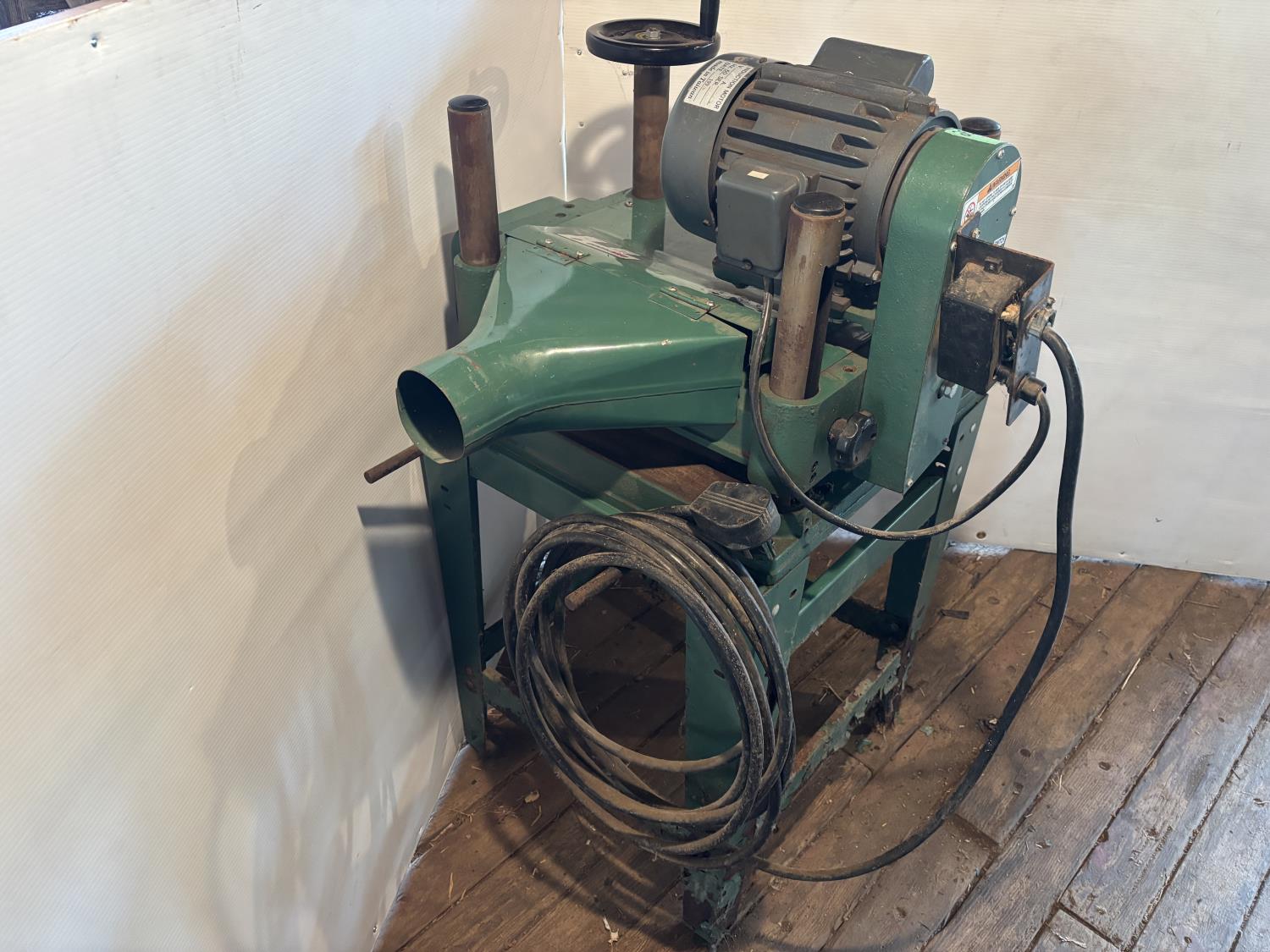 1 HP, 11 amp, 240 volt single phase, metal stand, saw horse with rollers, extra blades