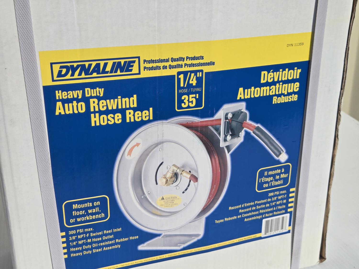 5382 Dynaline Heavy Duty Auto Rewind Air Hose Reel with Air Hose (Unused)