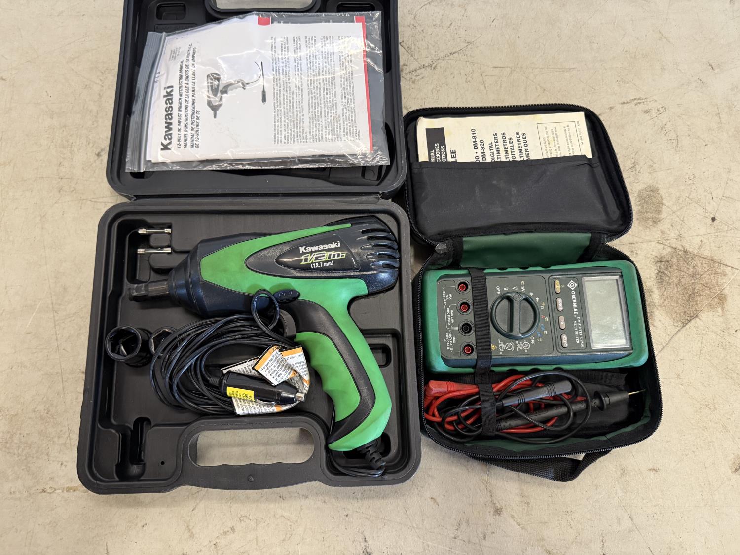 1/2 inch 12volt impact kit and a greenlee multimeter