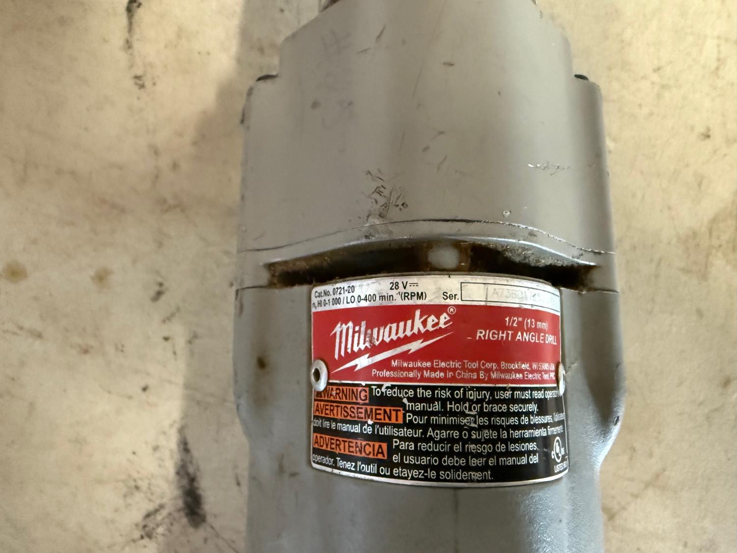 Milwaukee 1/2 inch angle drill M28. Battery operated drill