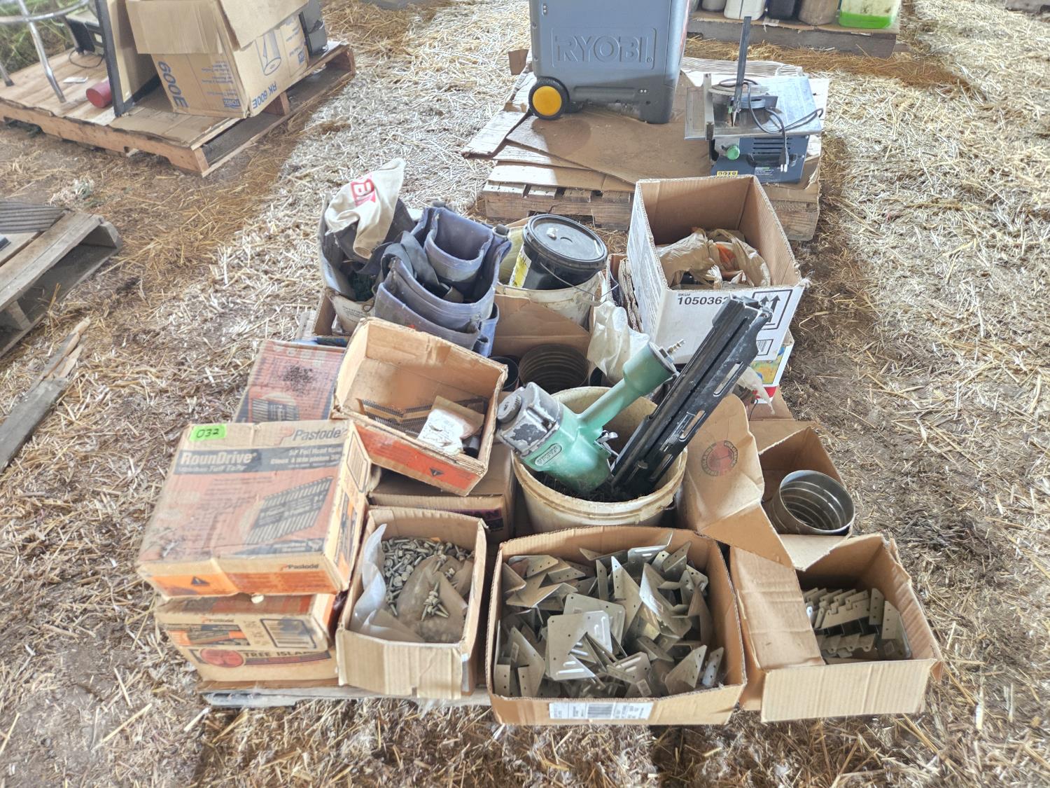 framing nailer, joist hangers, screws, nails, miscellaneous
