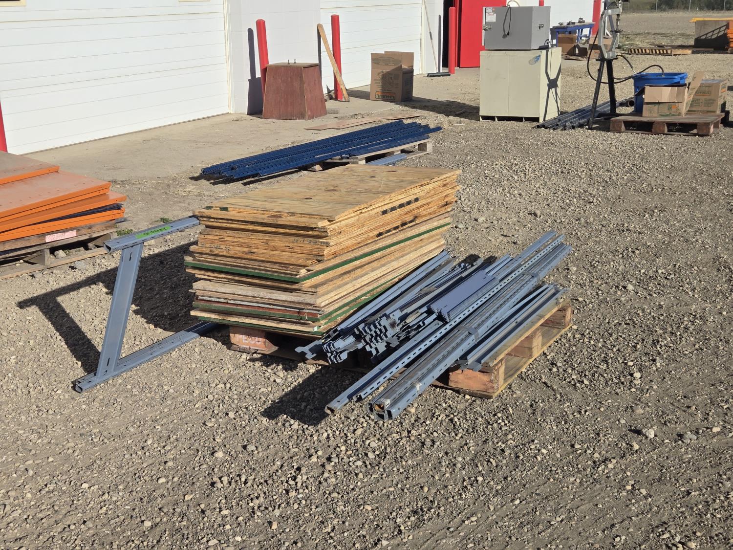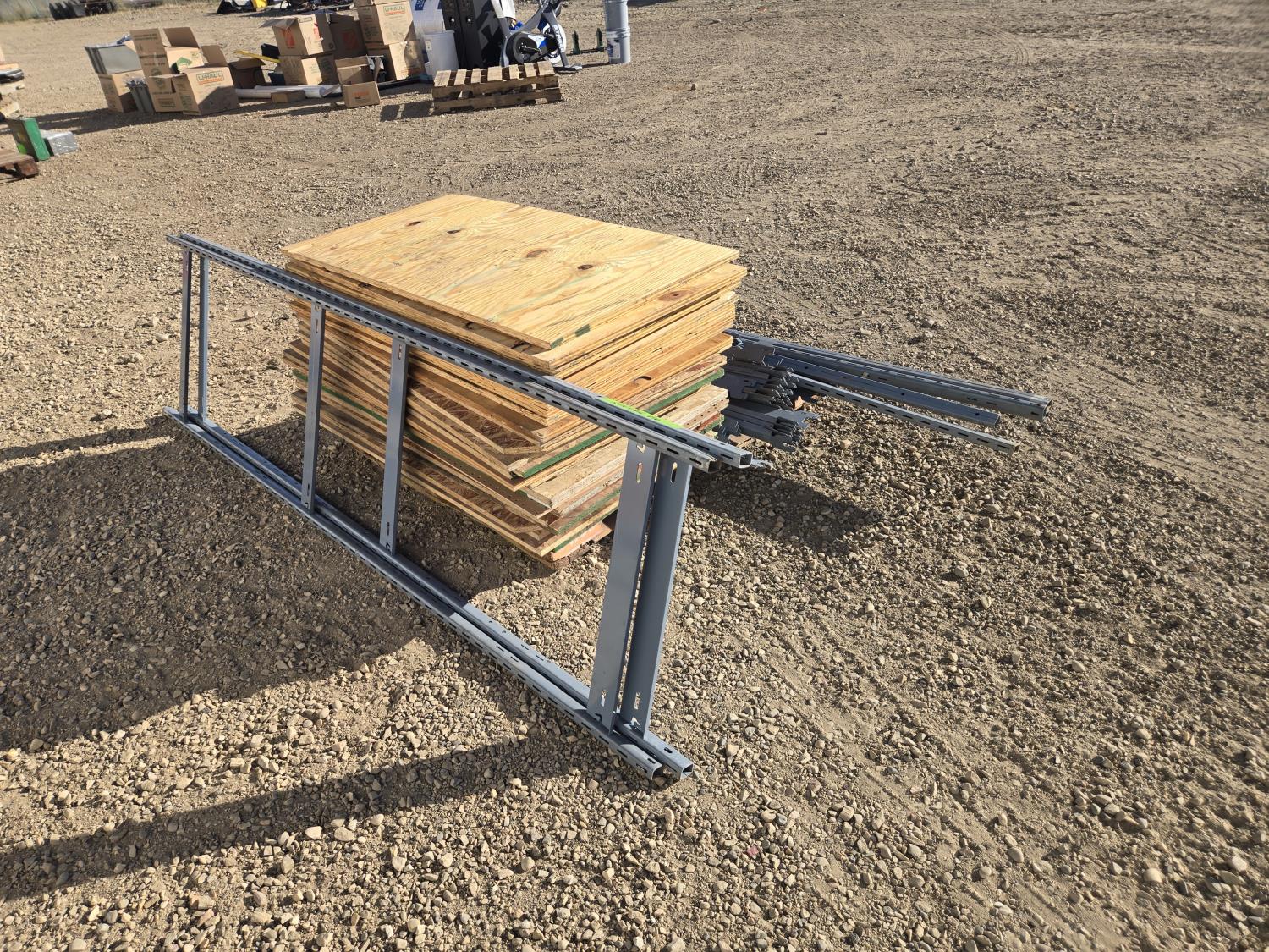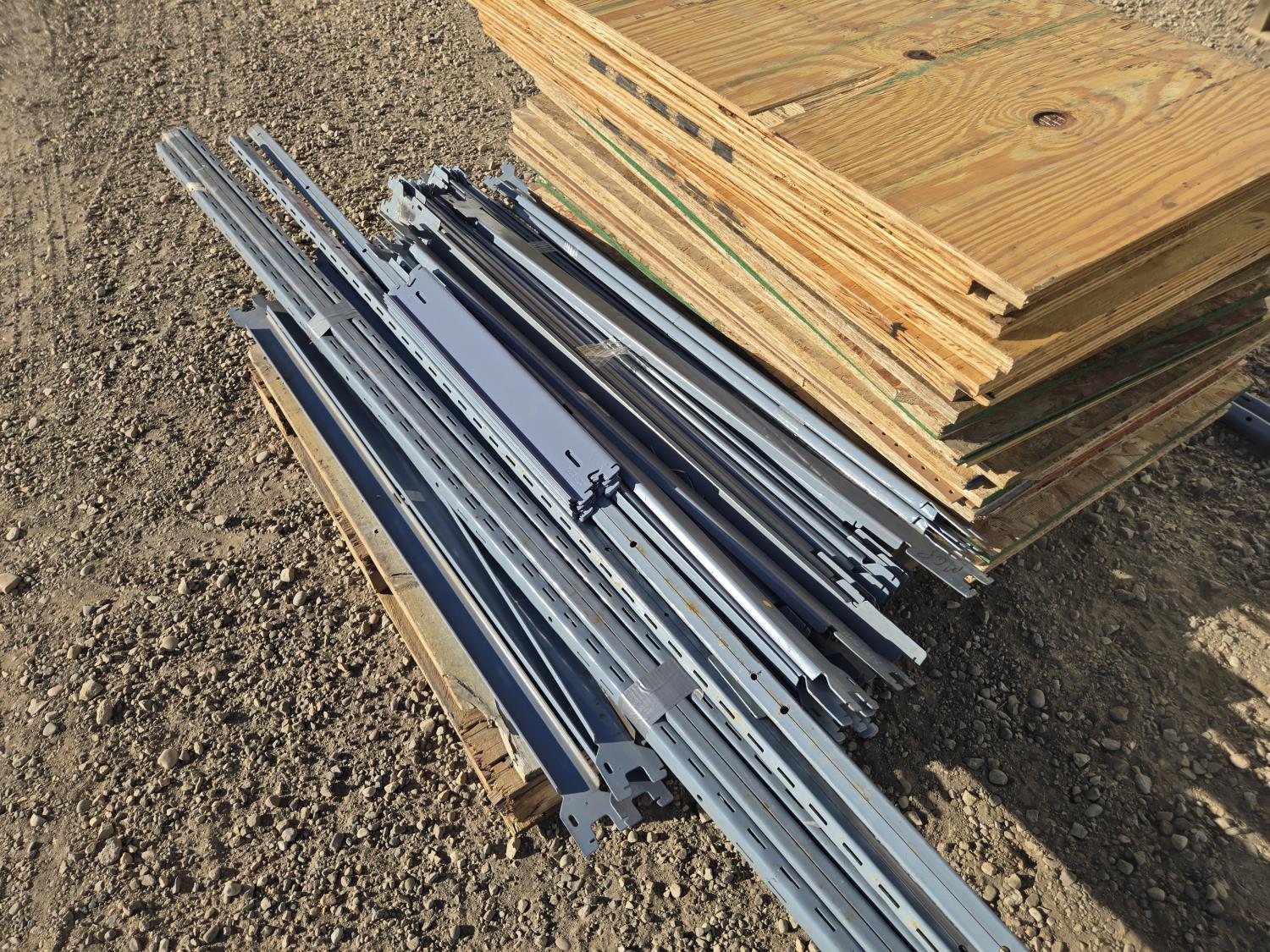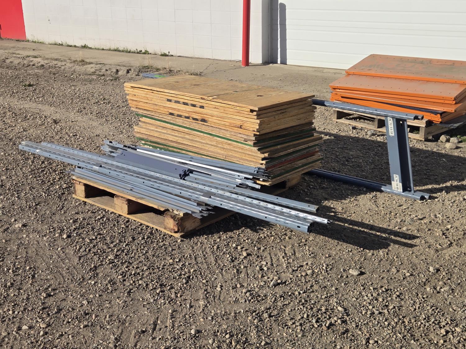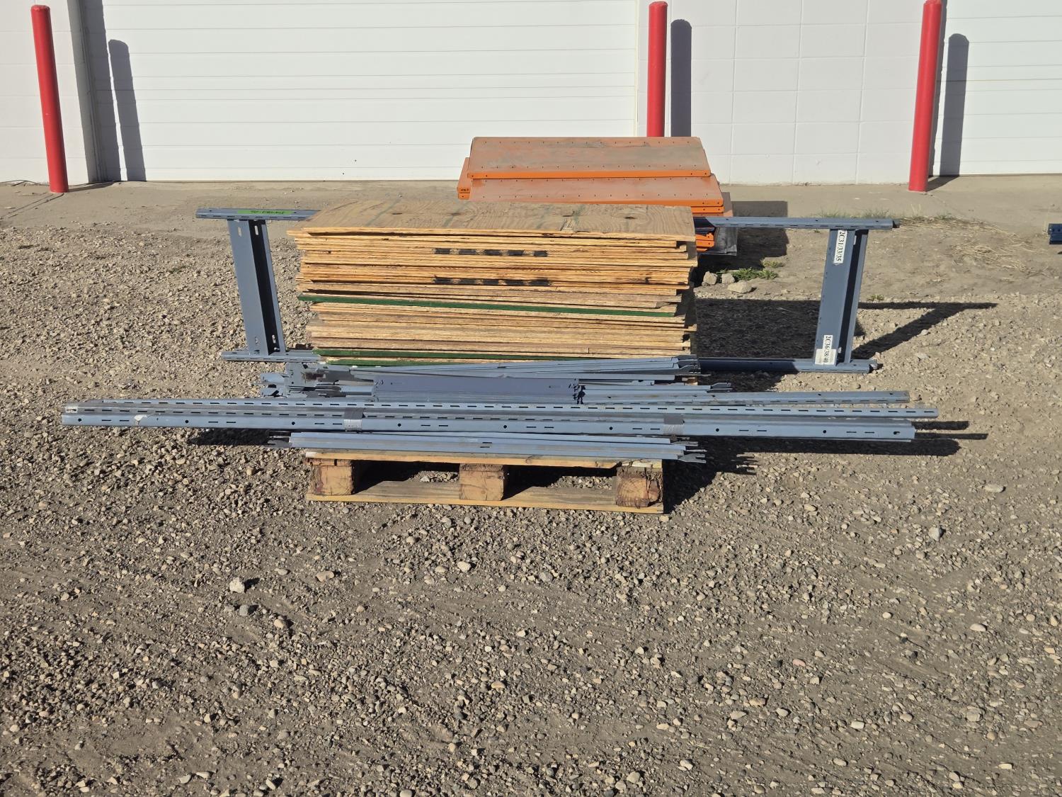 (8) end posts, qty of shelf beams, (28±) 24 inch X 48 inch wood shelfs