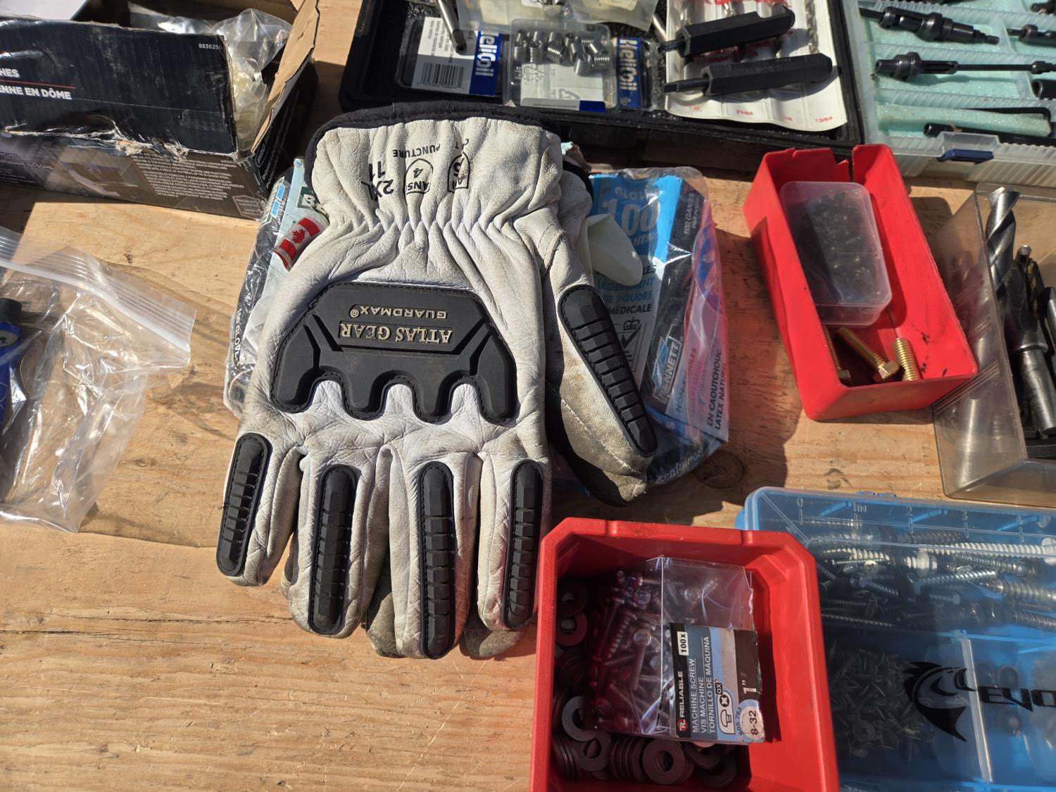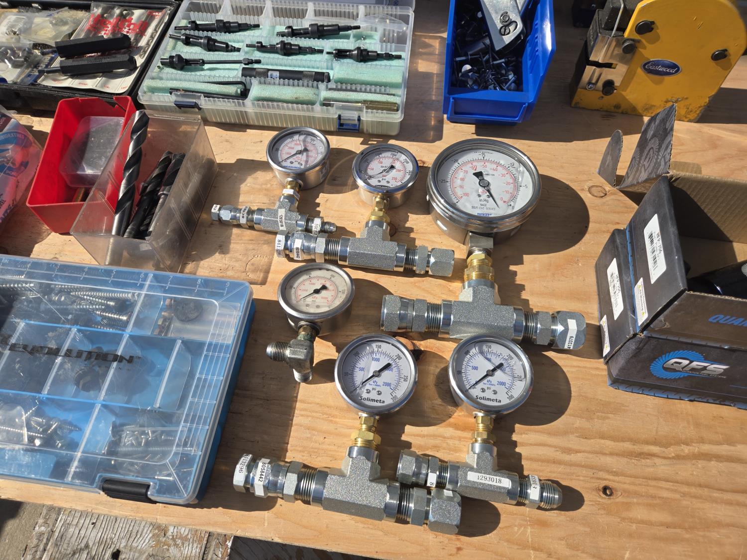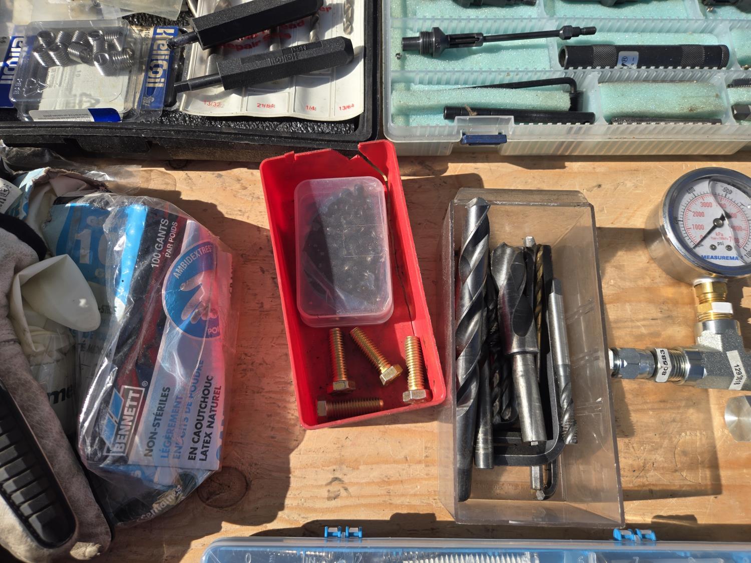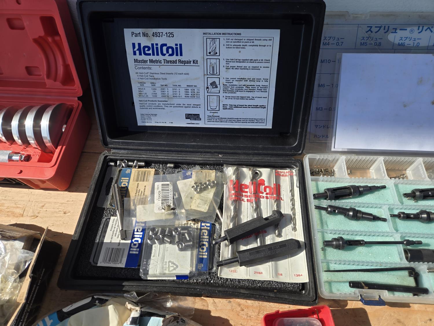 Dremel kit, bearing puller, seal driver, (2) Helicoil kits, metal shrinker, metal stretcher, pop riveter, qty of hydraulic hoses, miscellaneous items