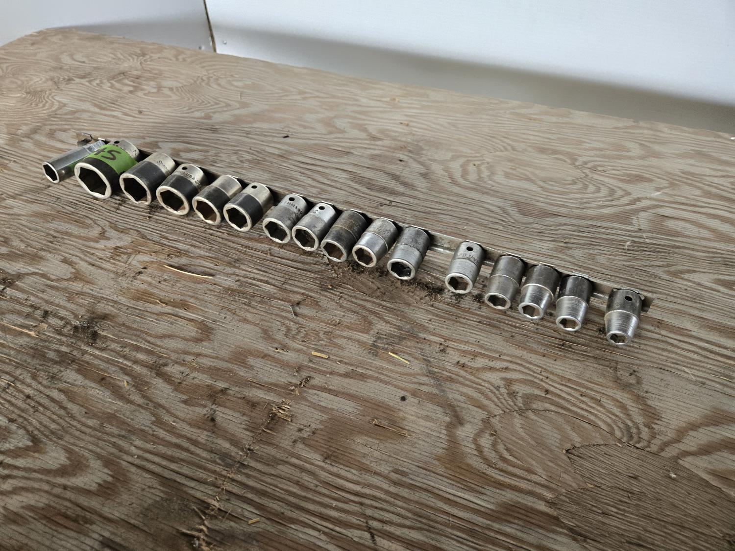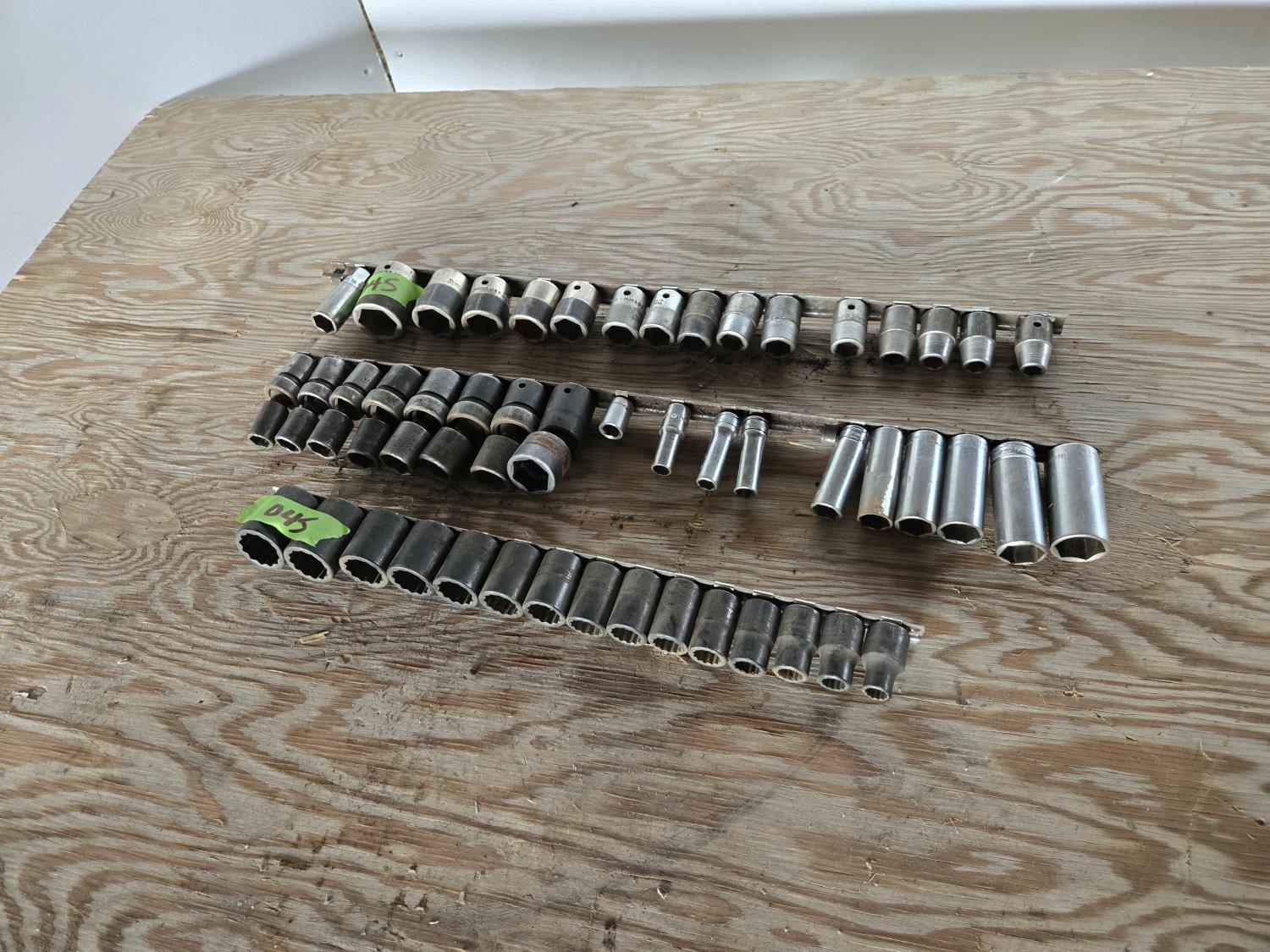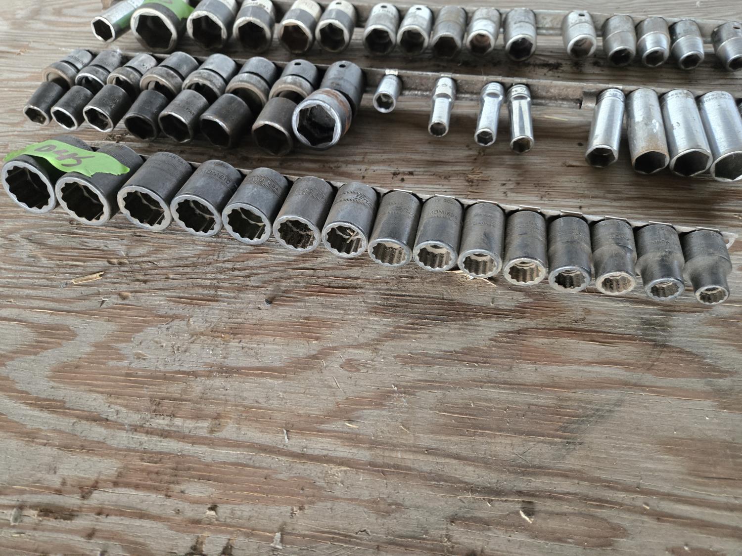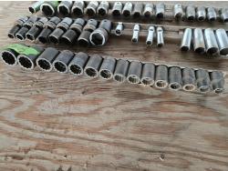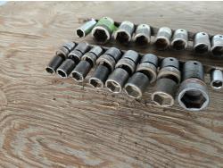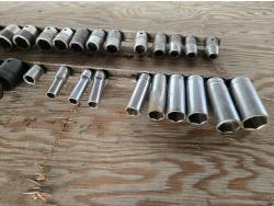 1/2 inch standard universal joint socket set, 1/2 inch torx socket set, 1/' shallow socket metric set, 3/8 deep standard socket set