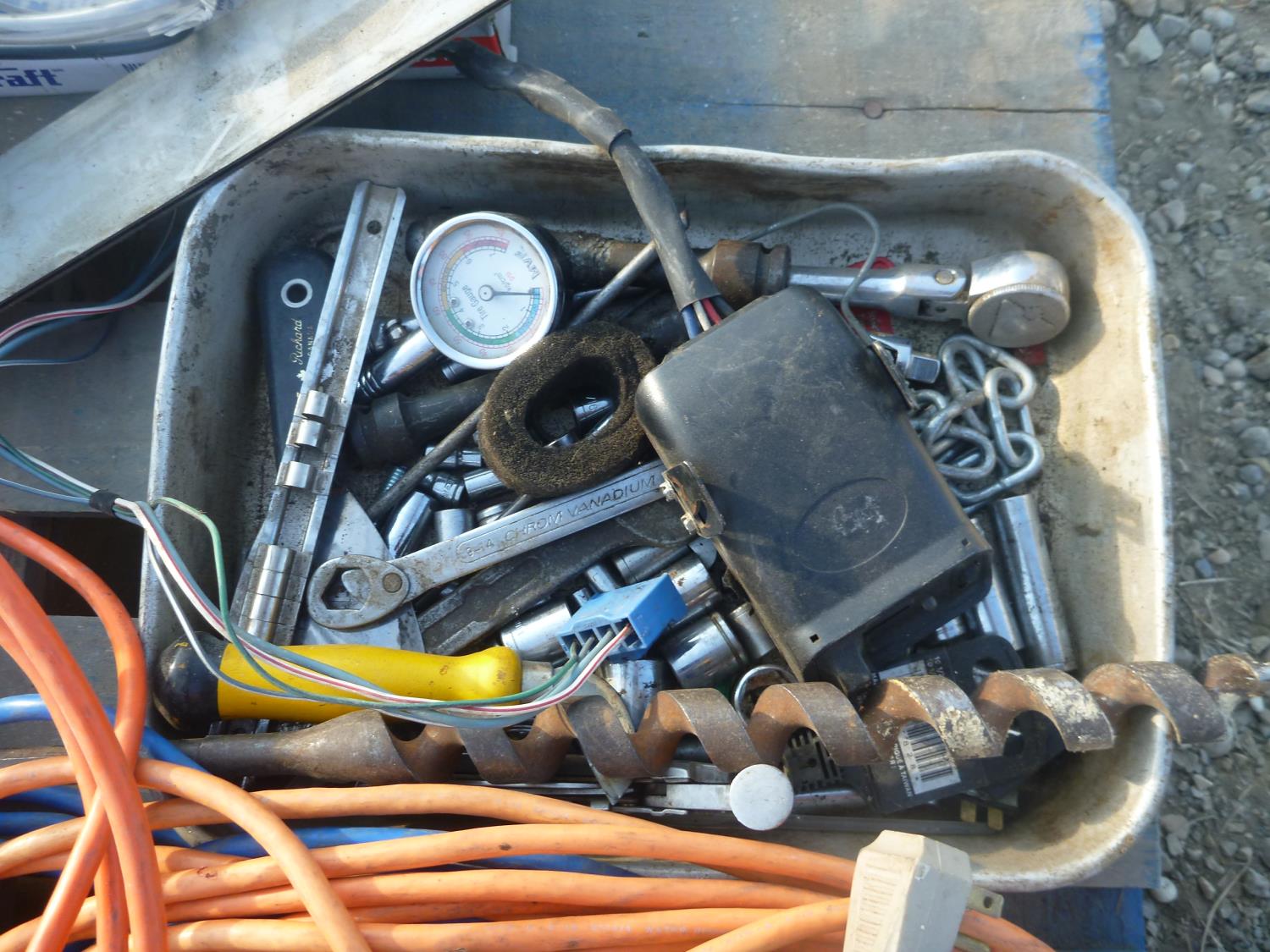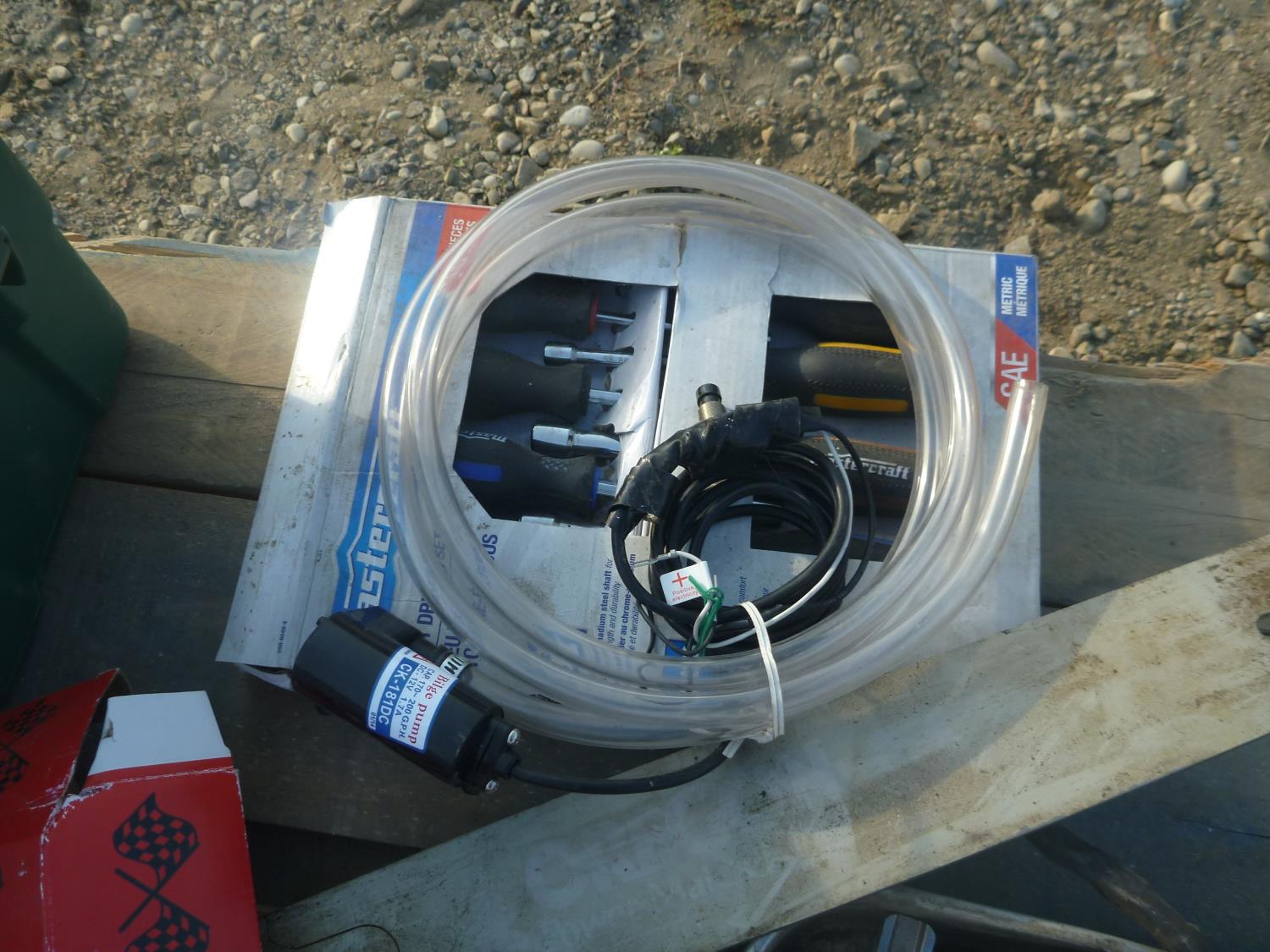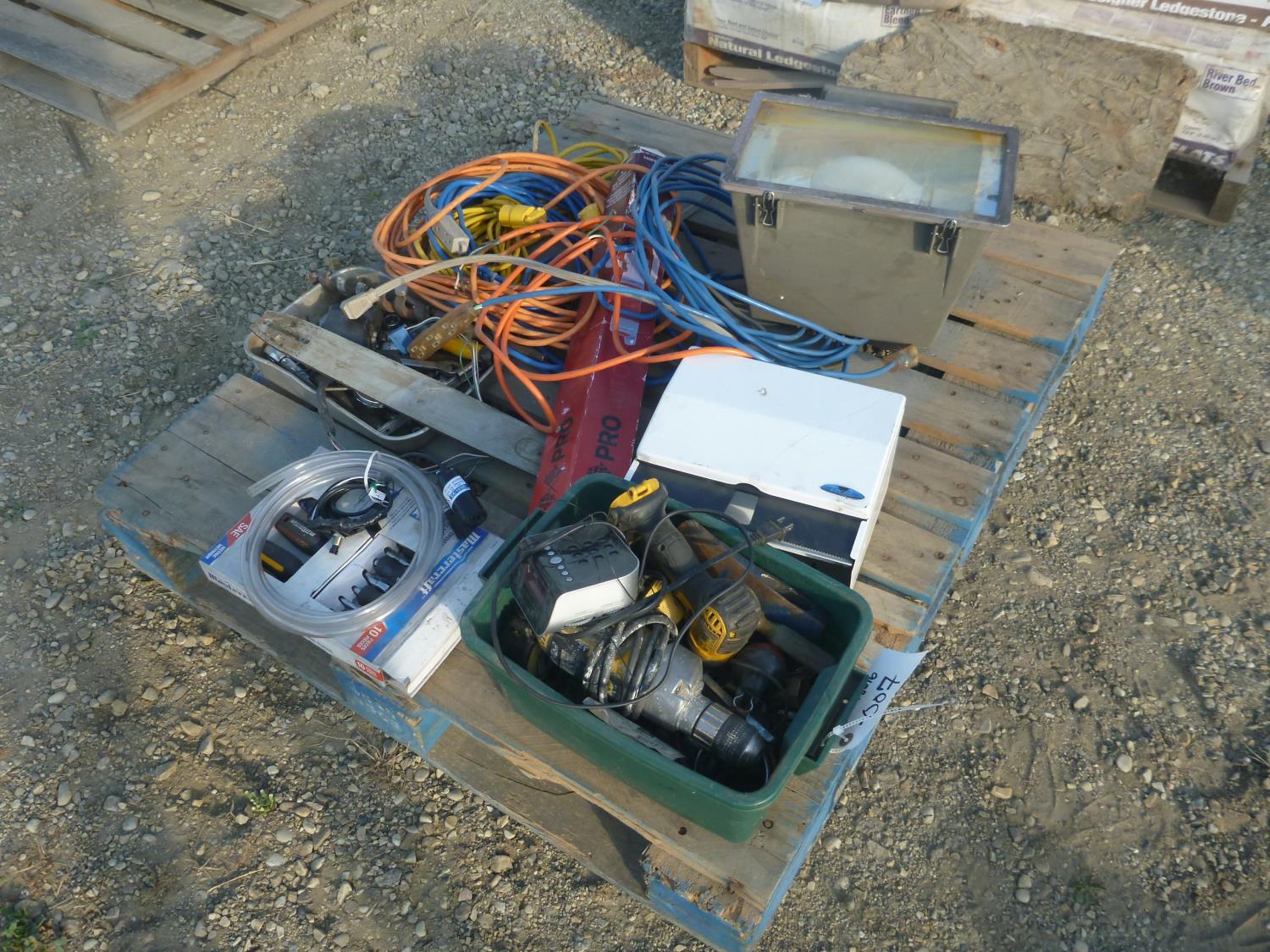 Extension cords, light, screw drivers, drill