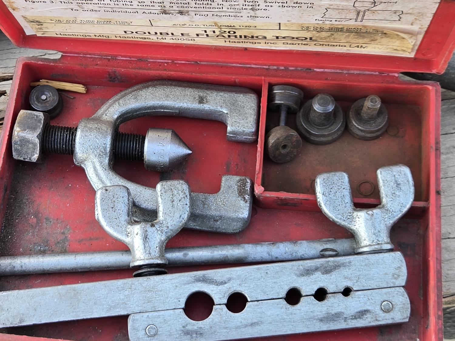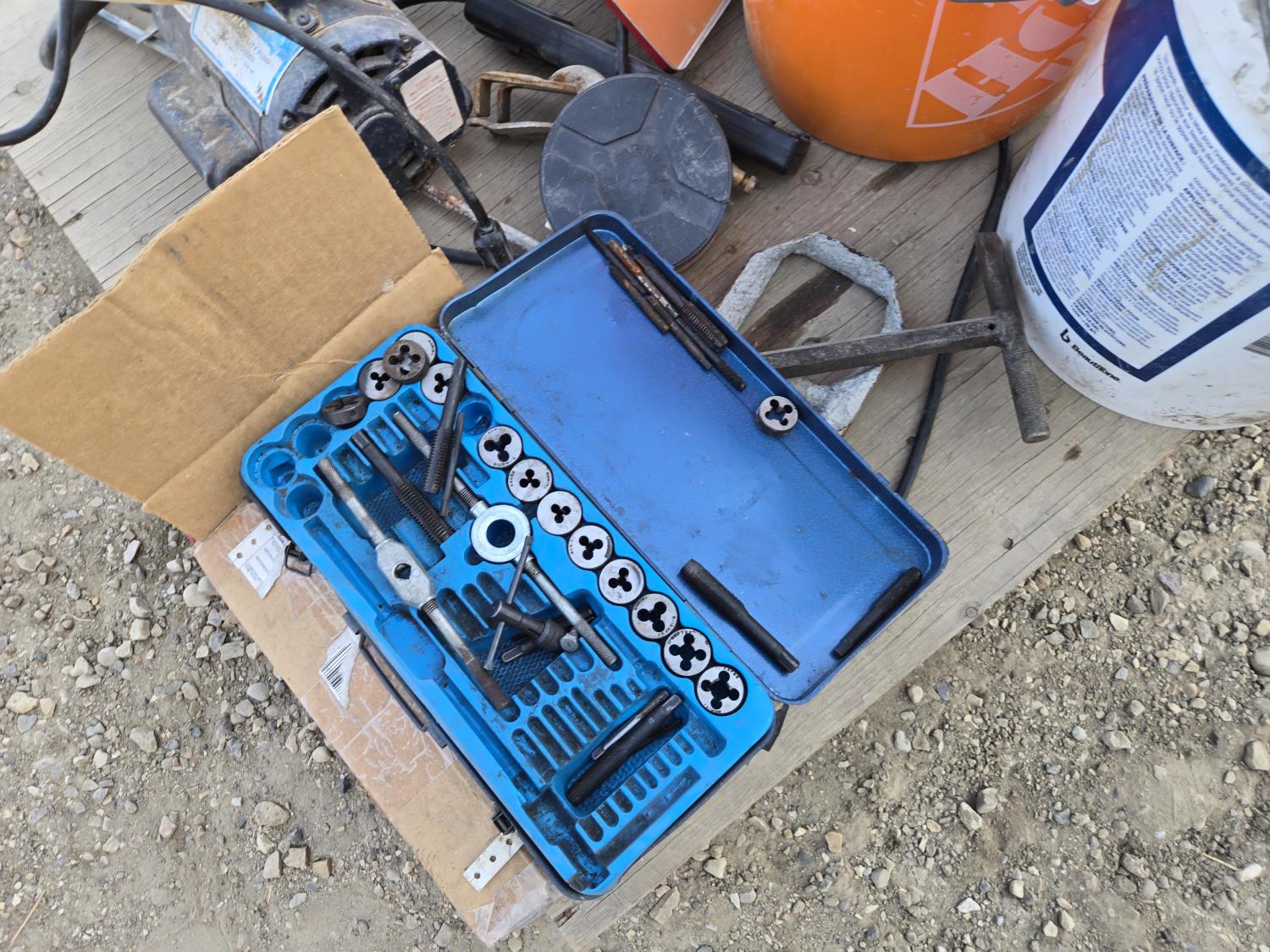 (2) tap & die sets, flaring tool, Blue point terminal kit, miscellaneous tools and hardware