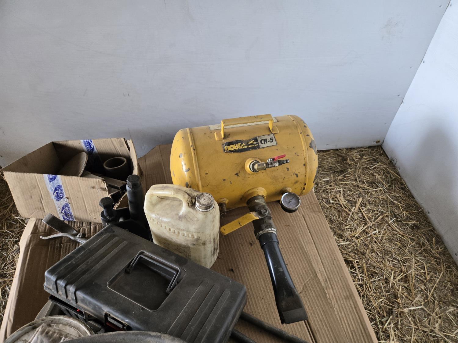 Air storage tank, bead blaster, tire tools, sledge hammer