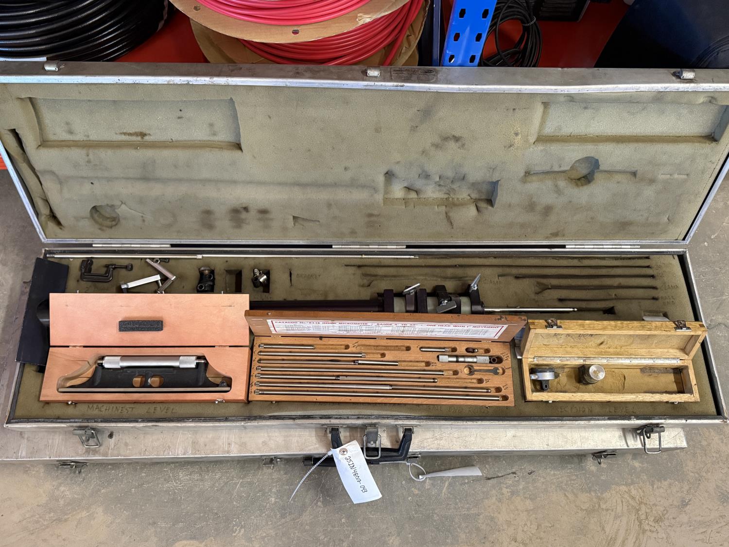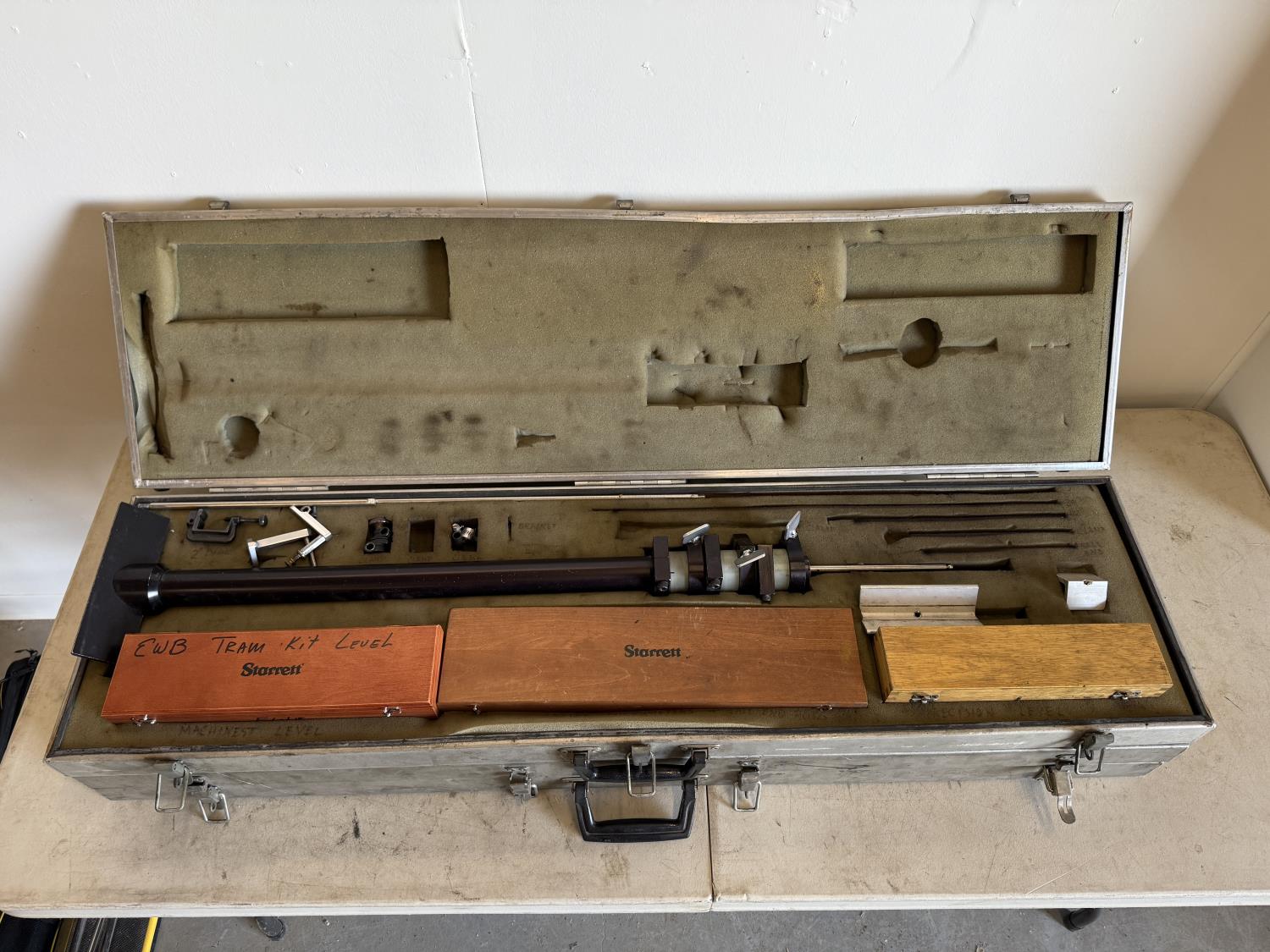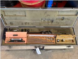 Pair of aluminum cases containing a leveling system for machine leveling. Machinist level included