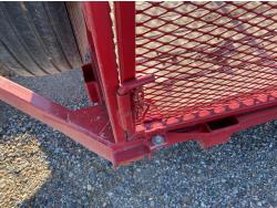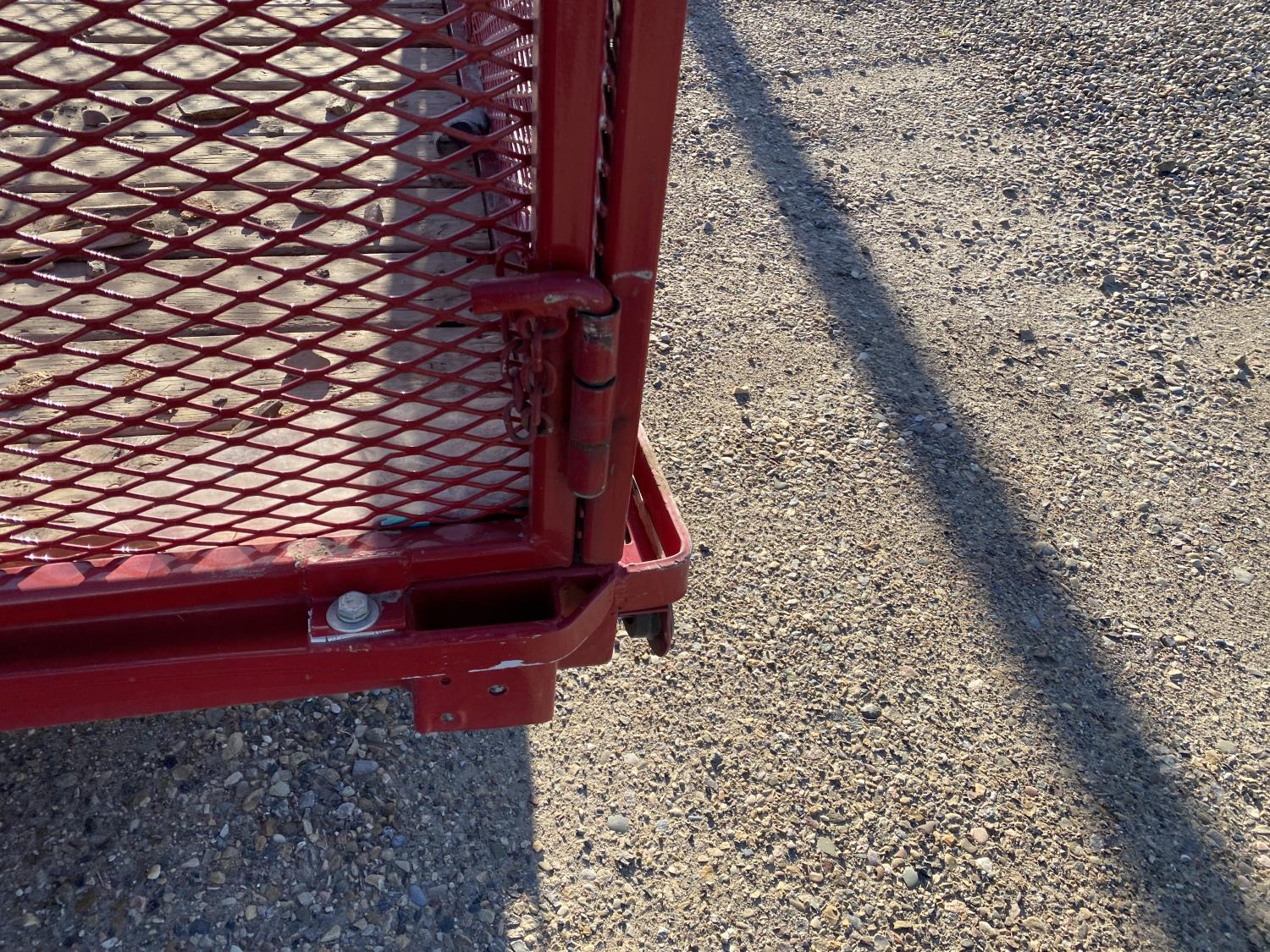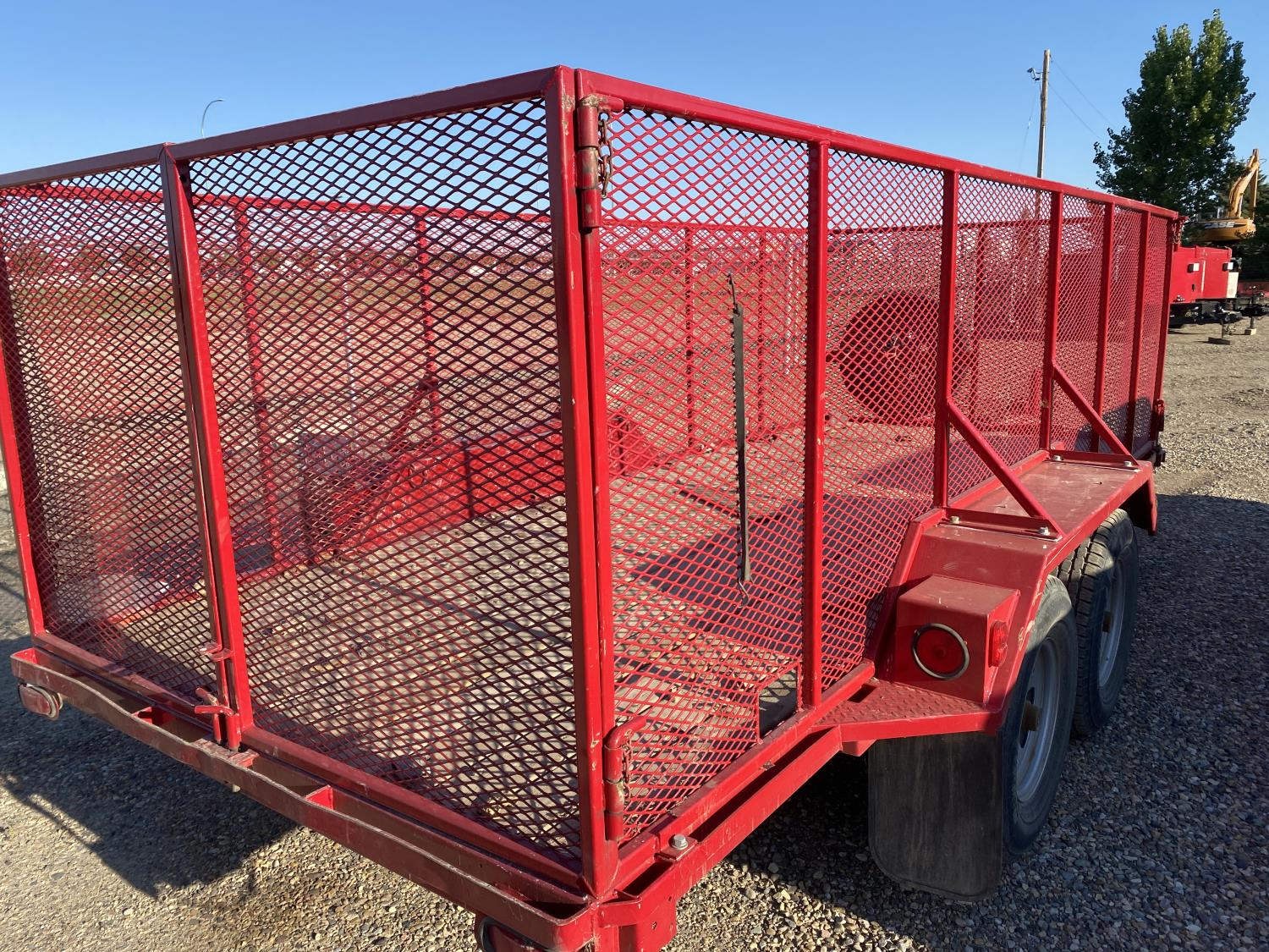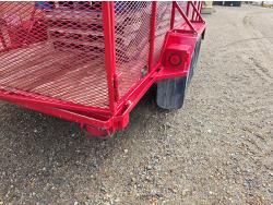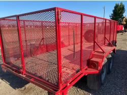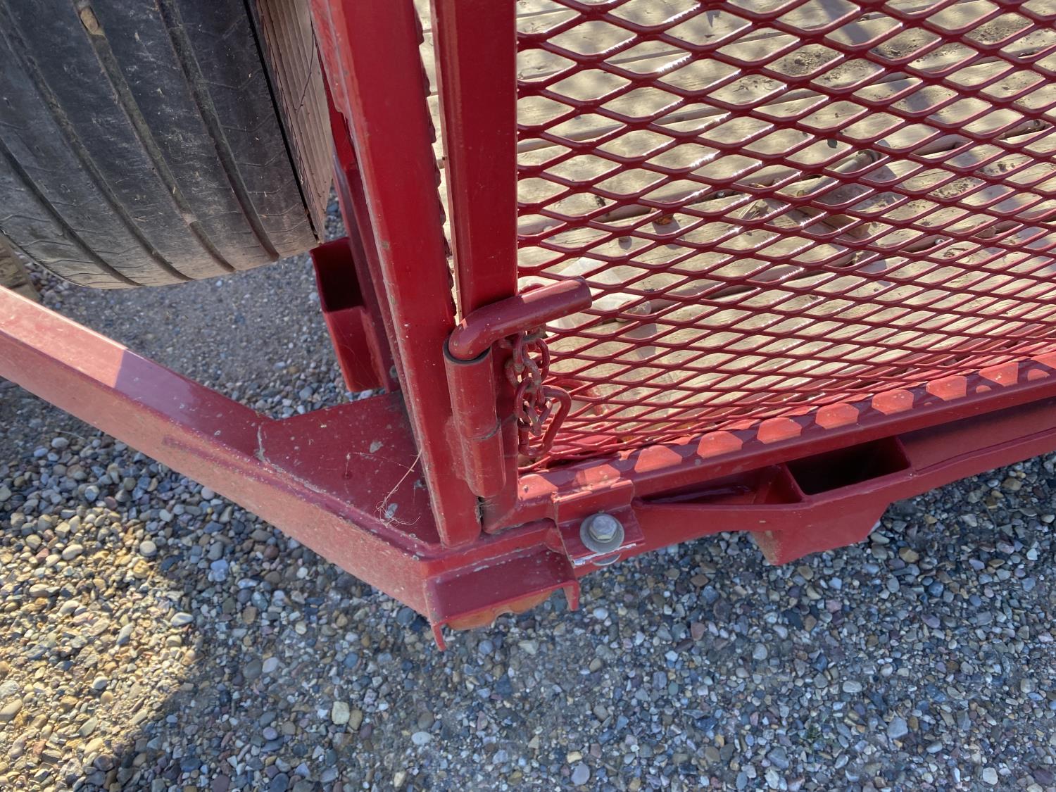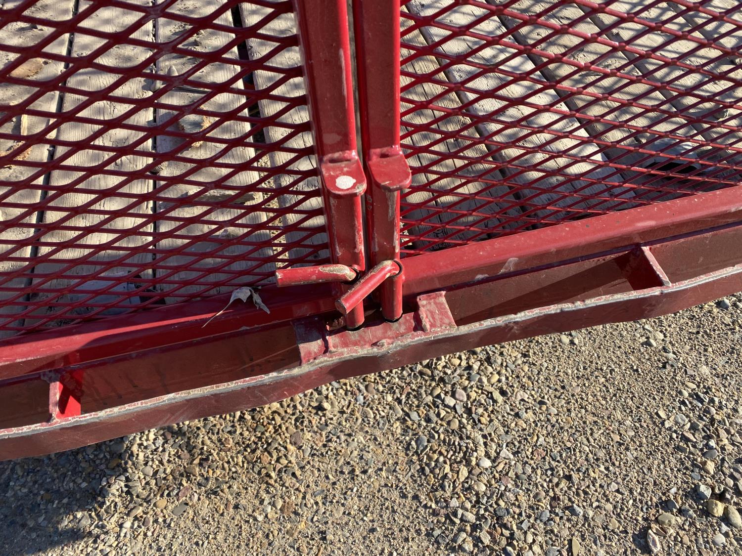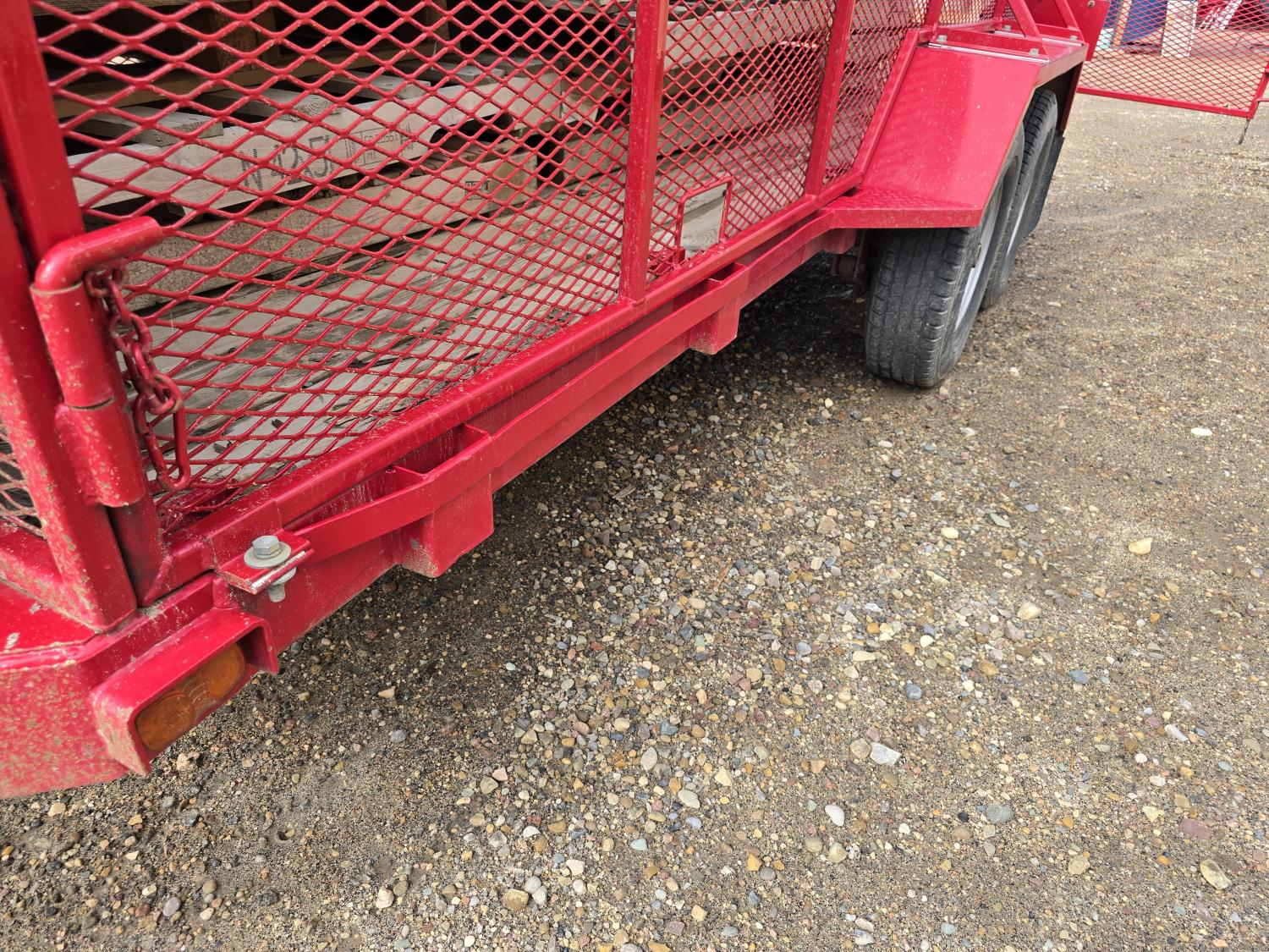 78 inch wide deck, wood deck, electric brakes, torsion spring suspension, 2-5/8 inch ball hitch, rub rails, stake pockets, 48 inch tall removable metal cage sides, LT235/85R16 tires
