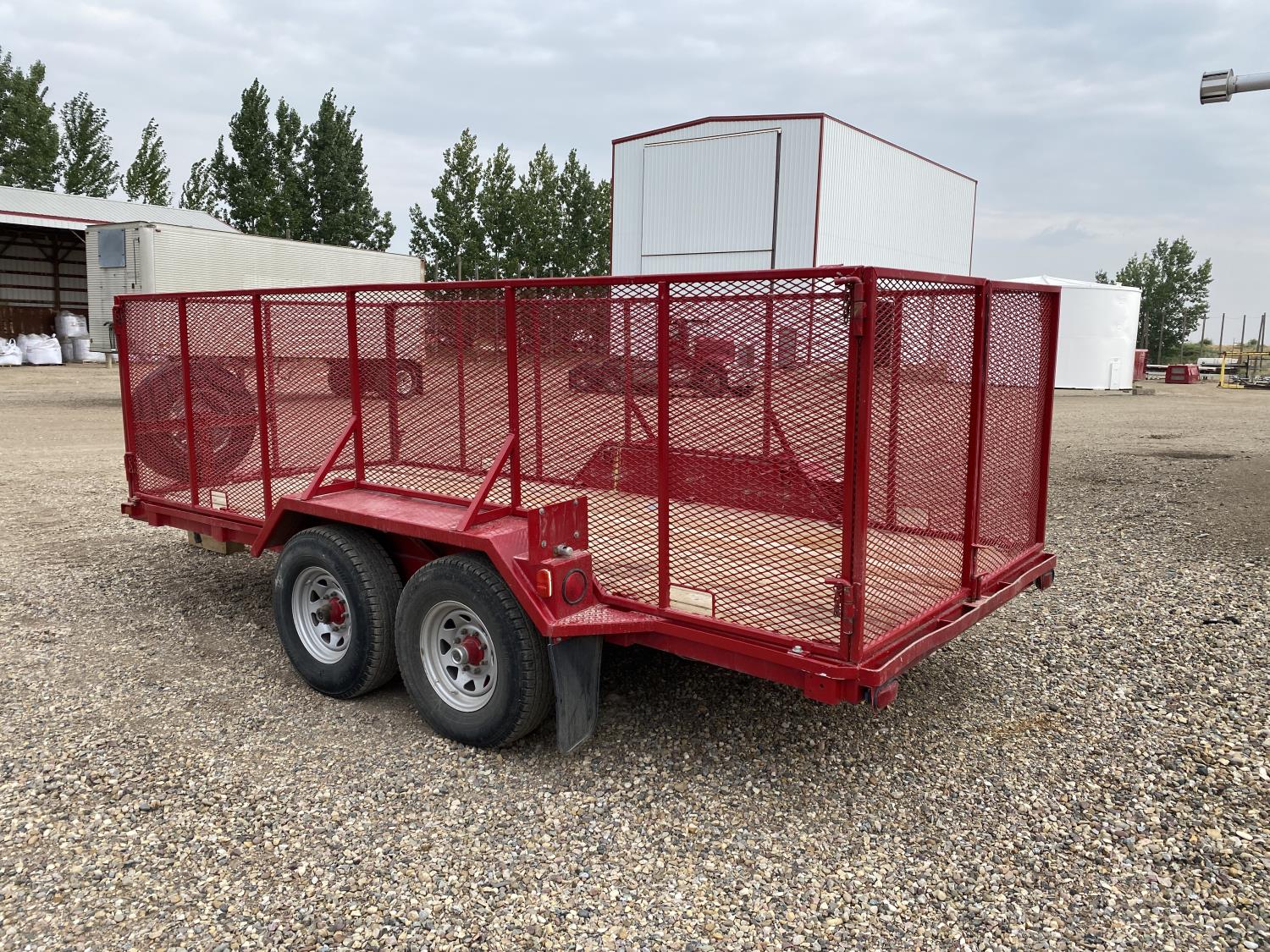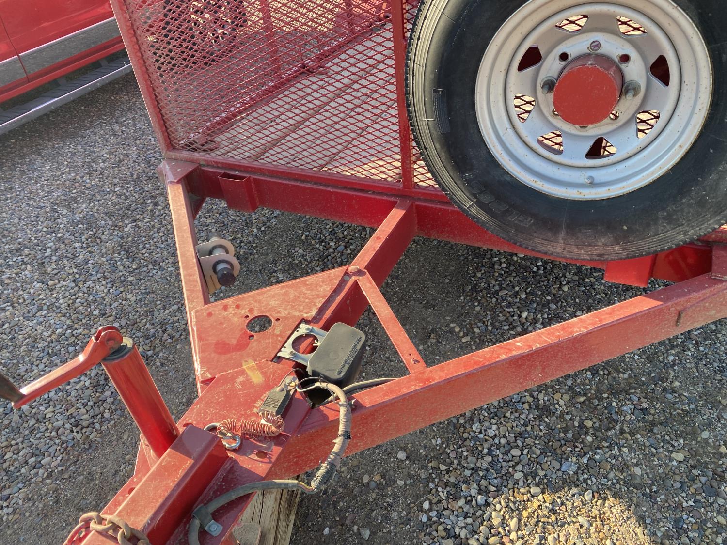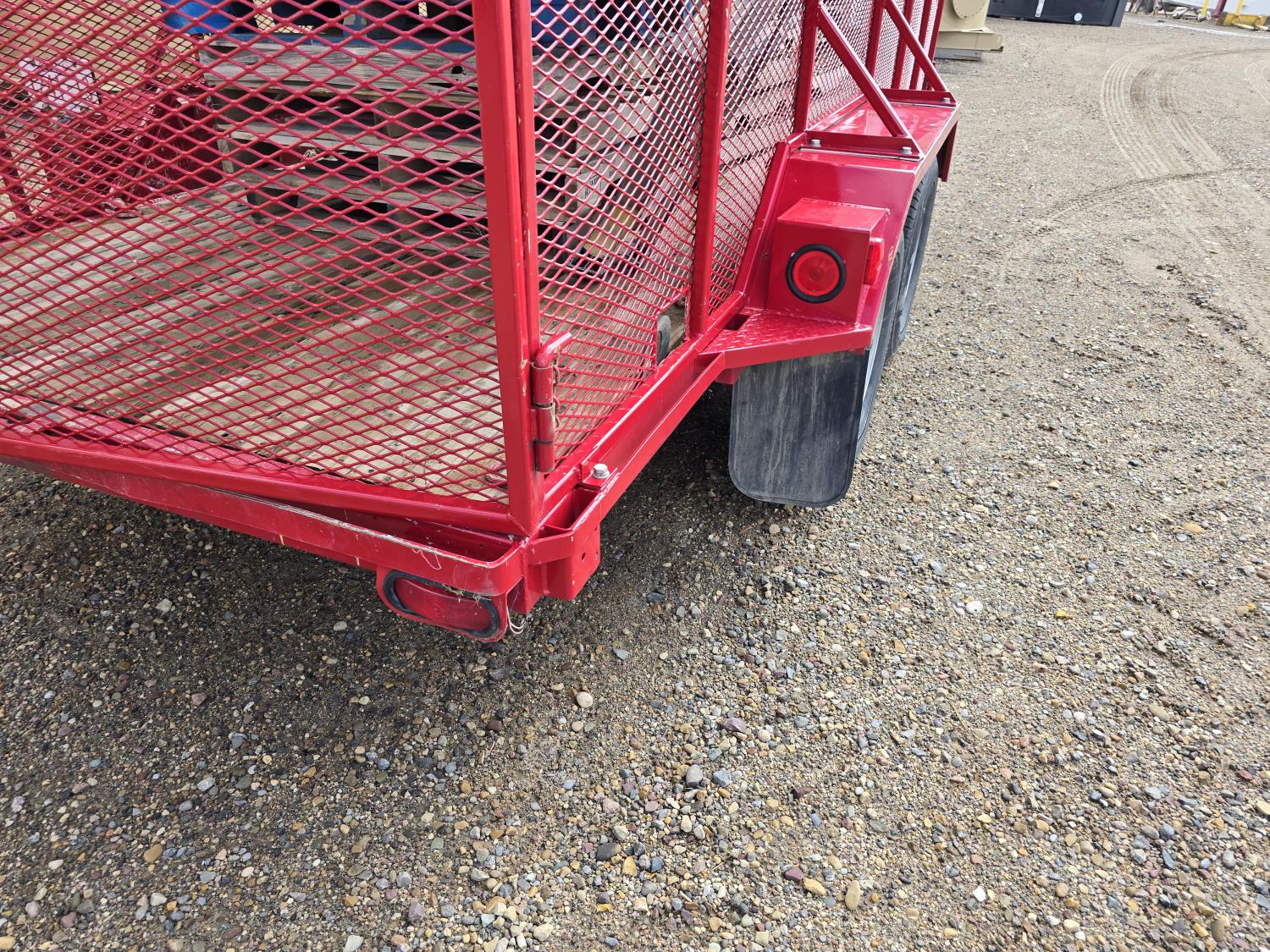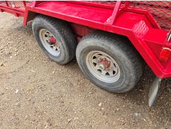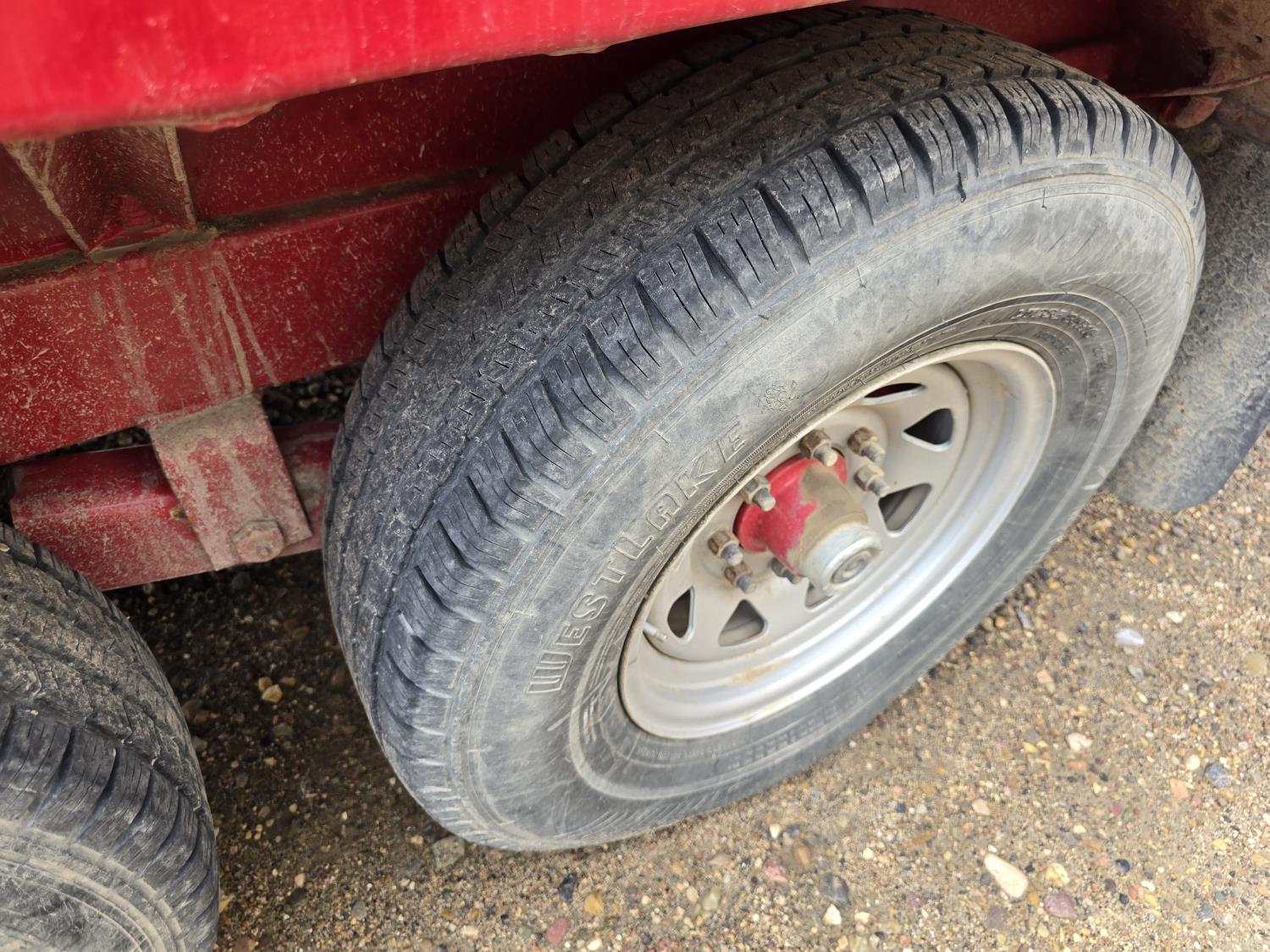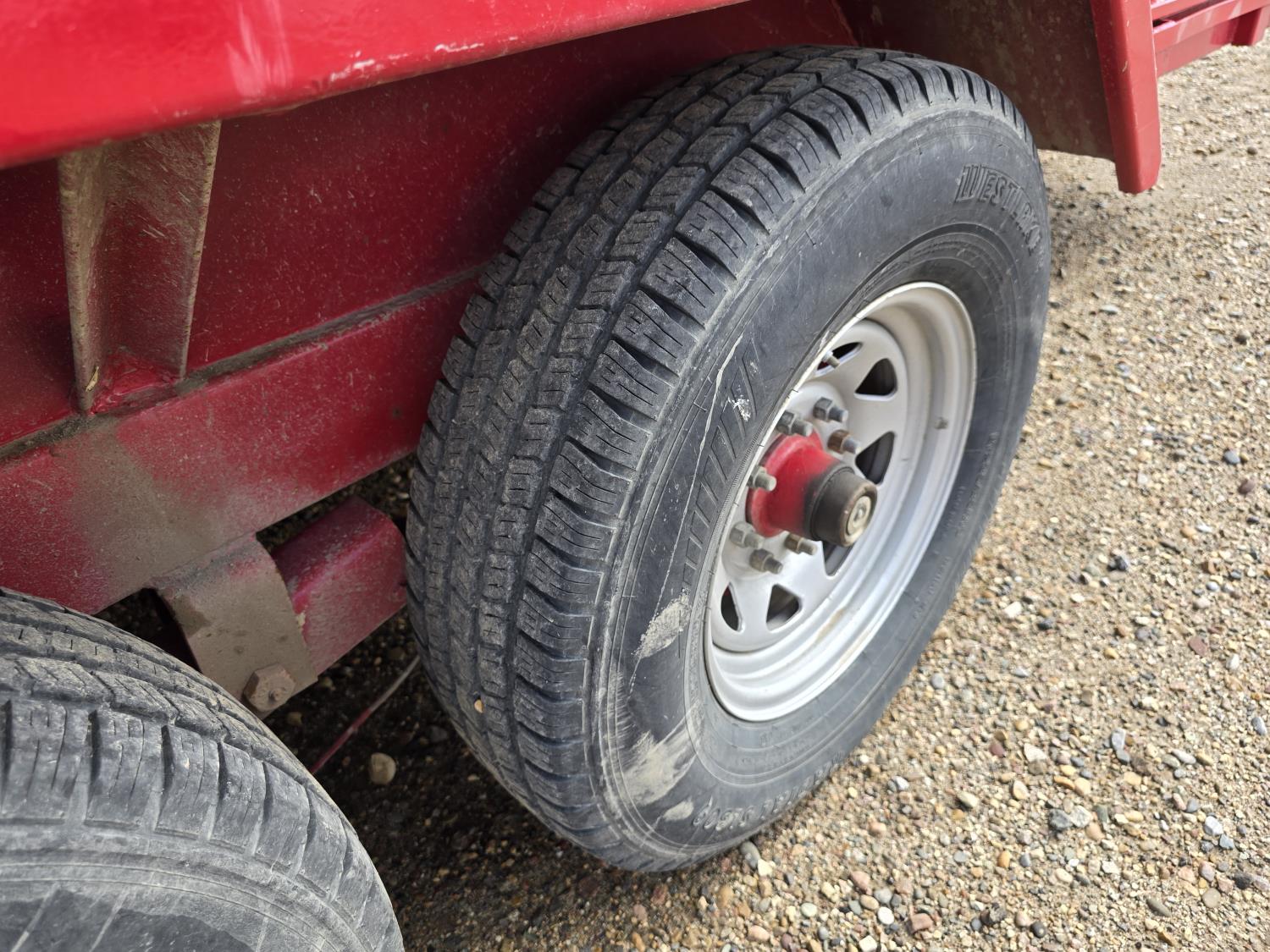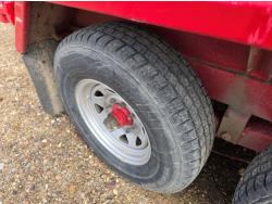 78 inch wide deck, wood deck, electric brakes, torsion spring suspension, 2-5/8 inch ball hitch, rub rails, stake pockets, 48 inch tall removable metal cage sides, LT235/85R16 tires