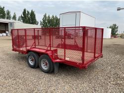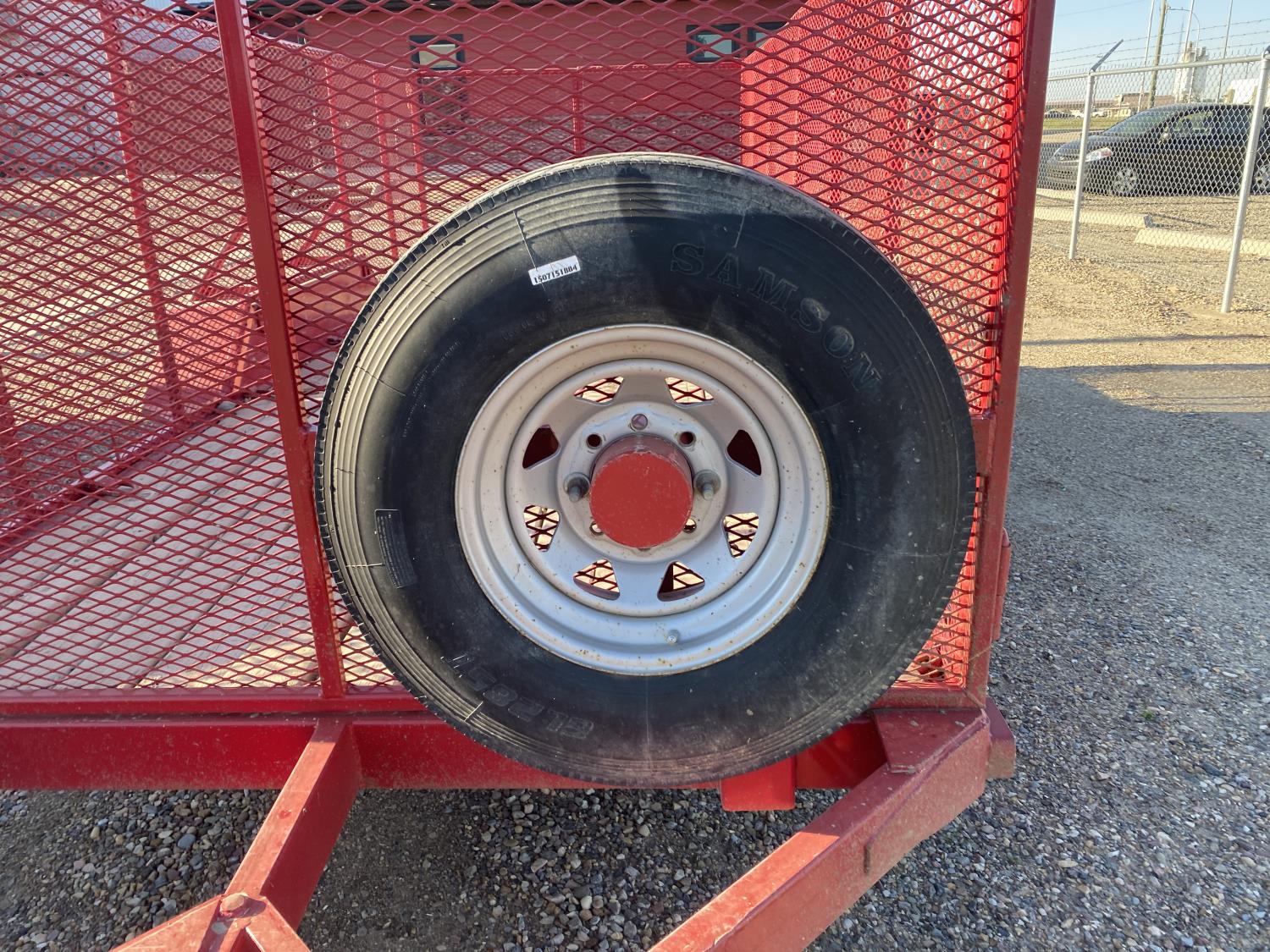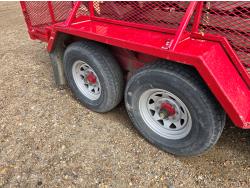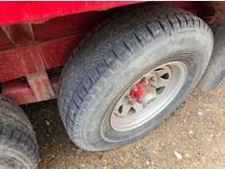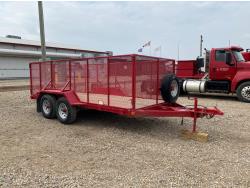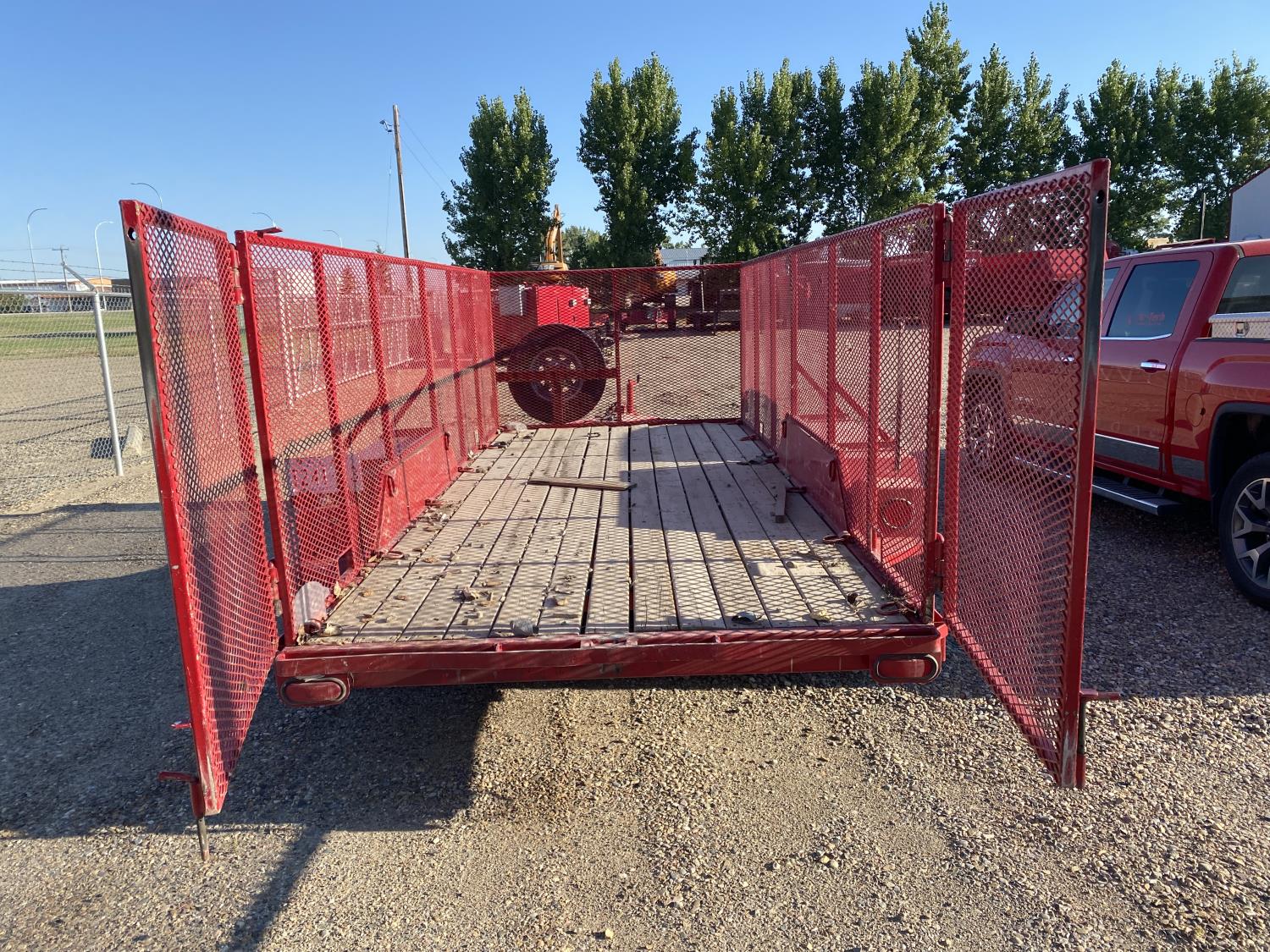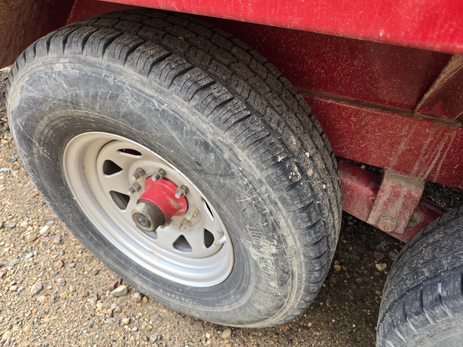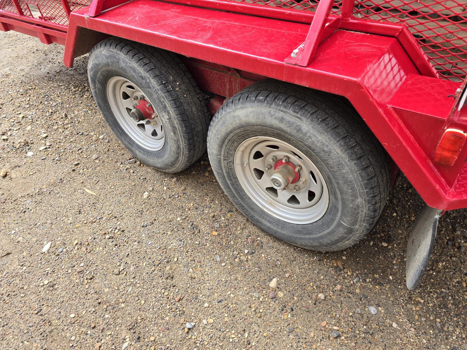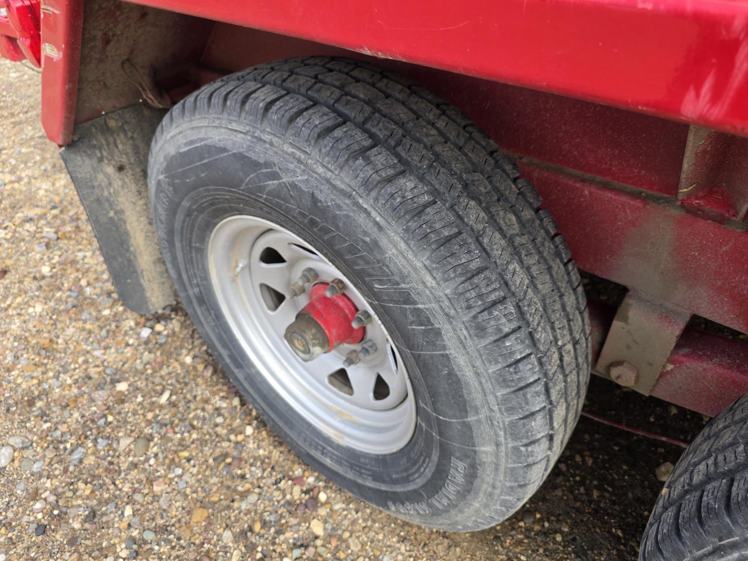 78 inch wide deck, wood deck, electric brakes, torsion spring suspension, 2-5/8 inch ball hitch, rub rails, stake pockets, 48 inch tall removable metal cage sides, LT235/85R16 tires