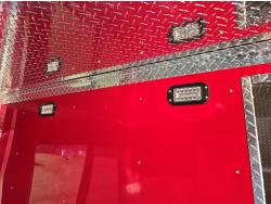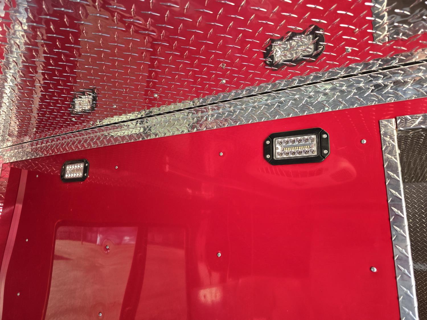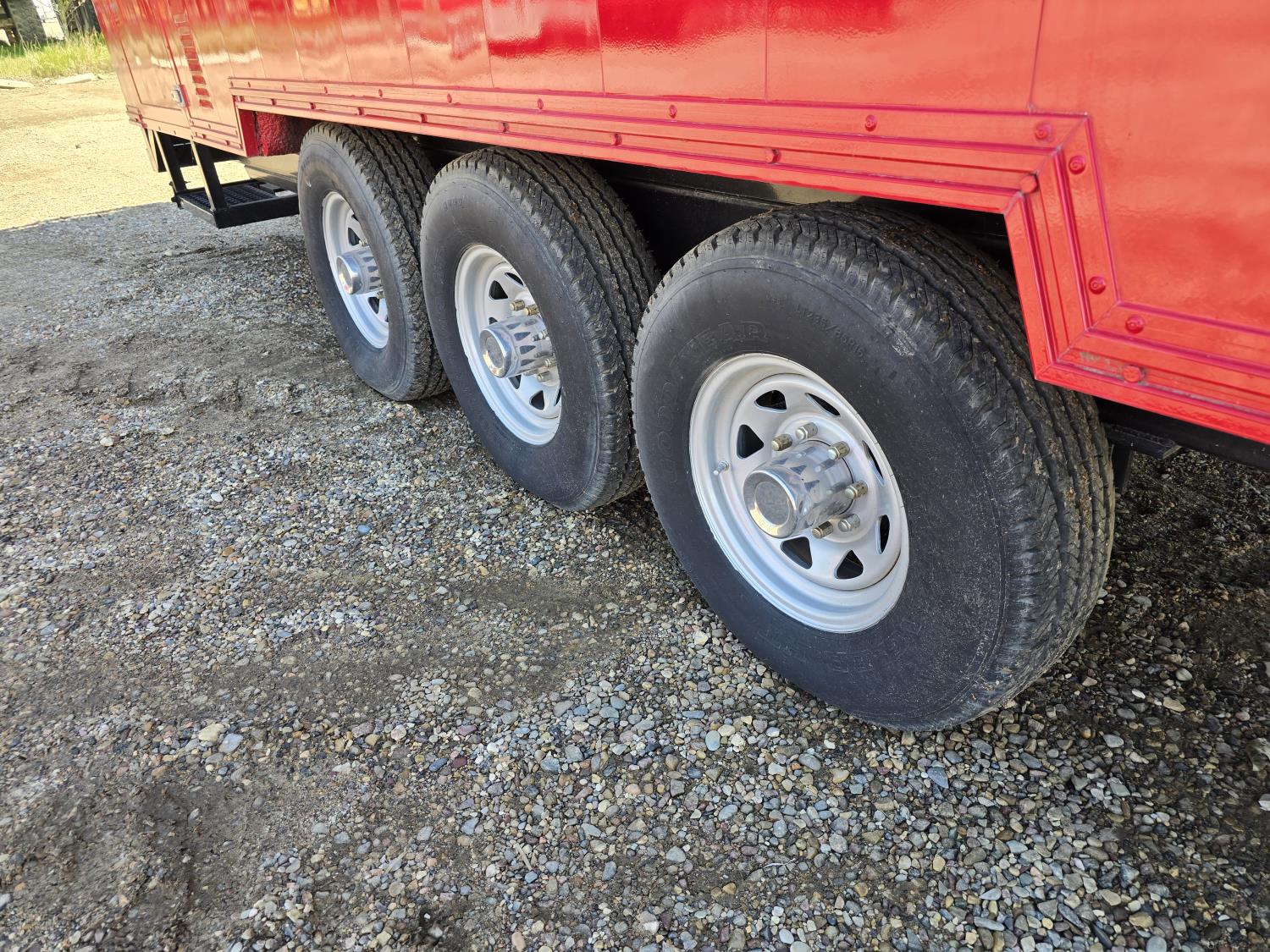 96 inch interior width, 85 inch interior height, side door, fold down door, electric brakes, torsion spring suspension, Kubota D1703 1.7L 3 cylinder diesel engine, 235/85R16 tires