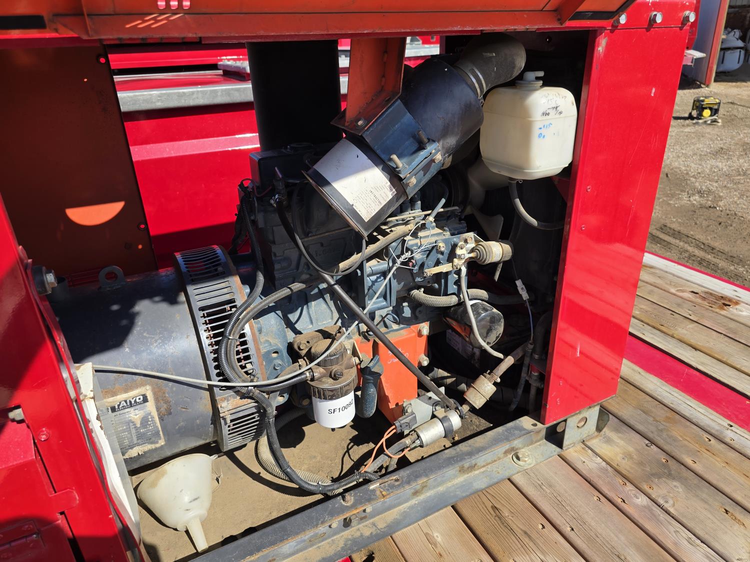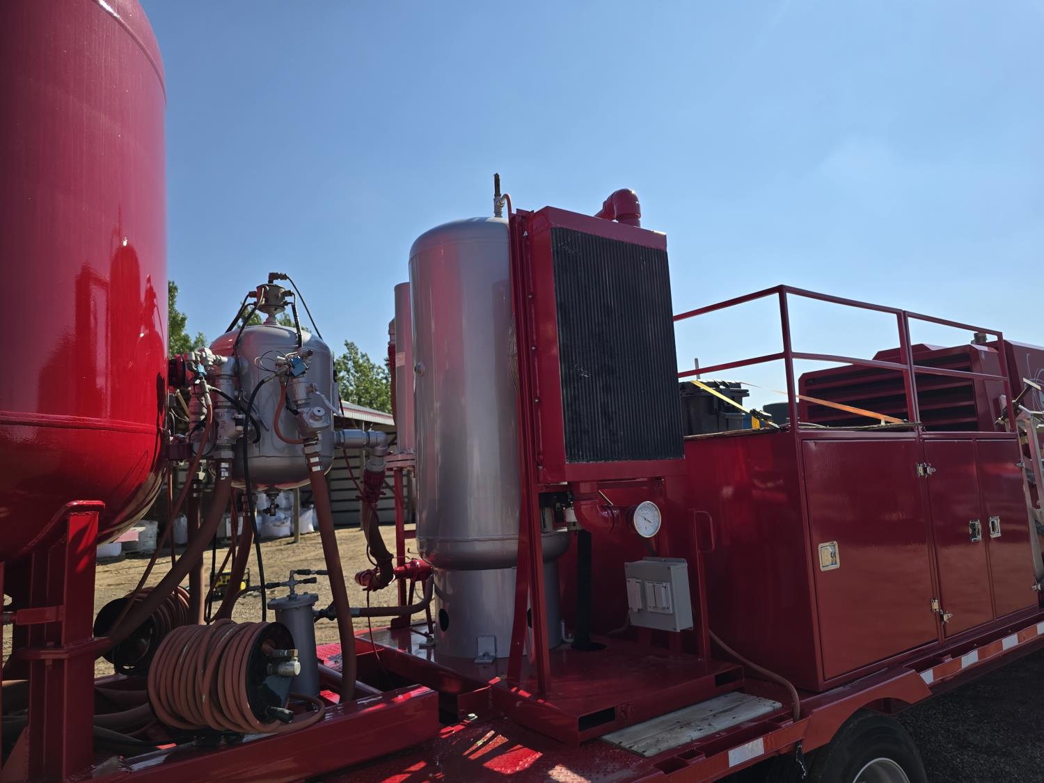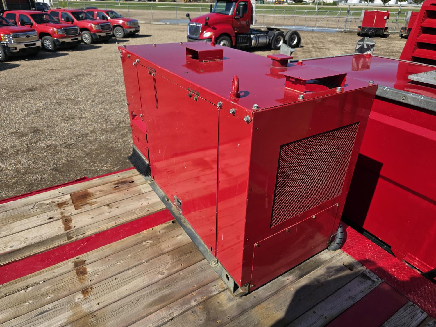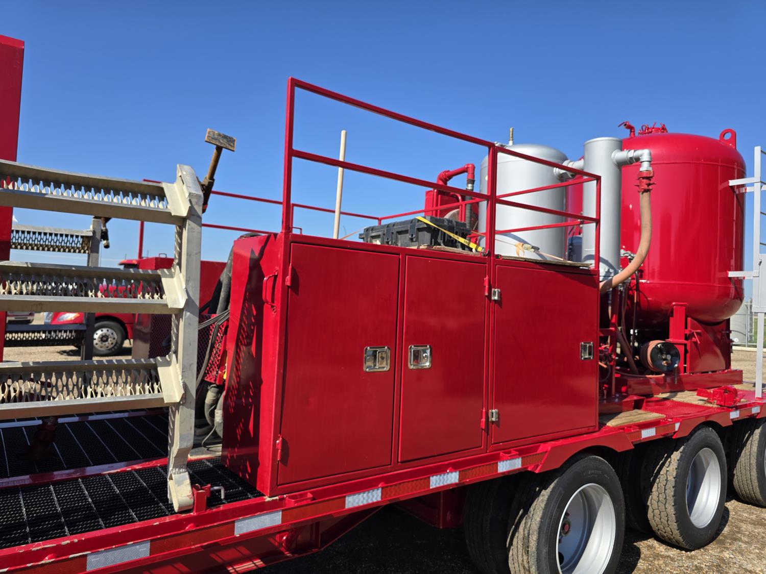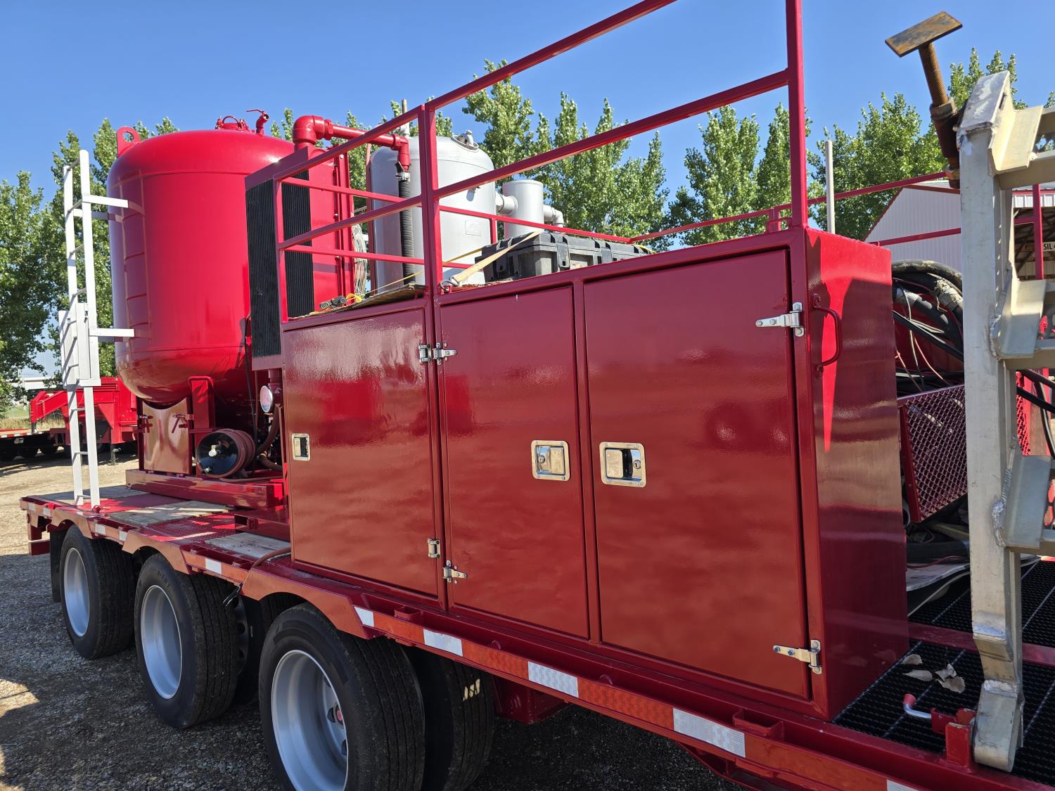 102 inch wide deck, 126 inch upper deck, wood deck, 8 ton sand pot, 2022 Atlas Copco 950 CFM compressor, Kubota KJ-S130DX 120/240V single phase diesel generator, 1600 CFM air dryer, stake pockets, rub rails, air brakes, air ride suspension, 255/70R22.5 tires