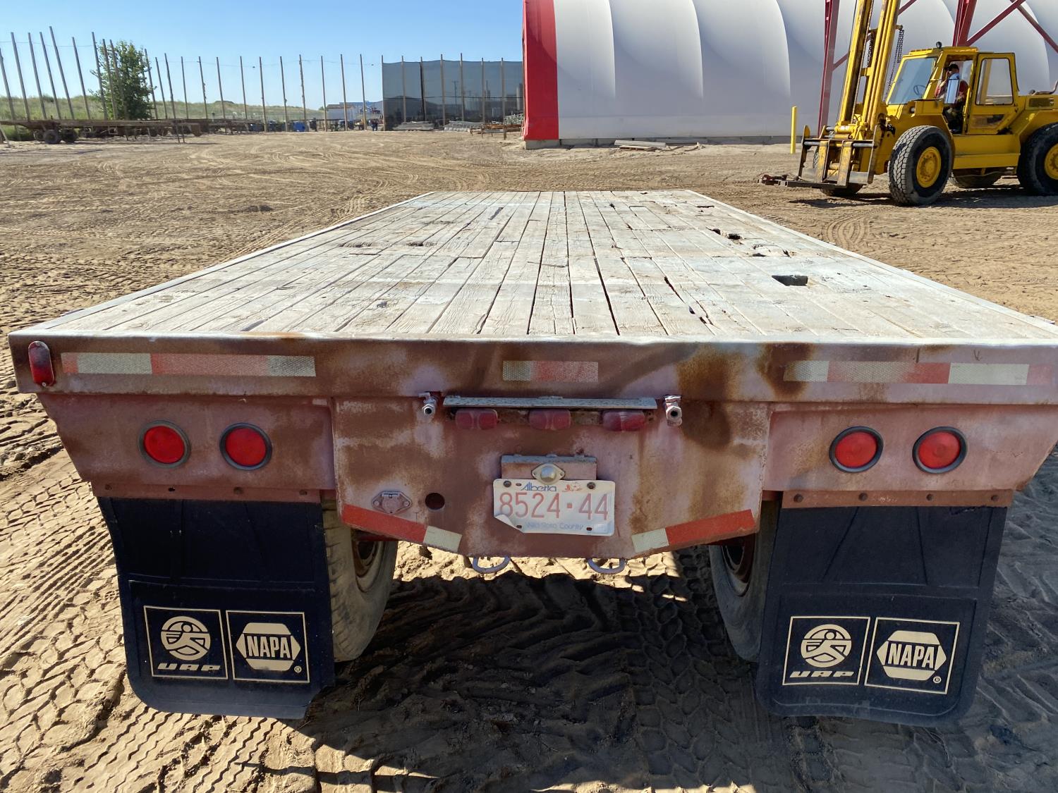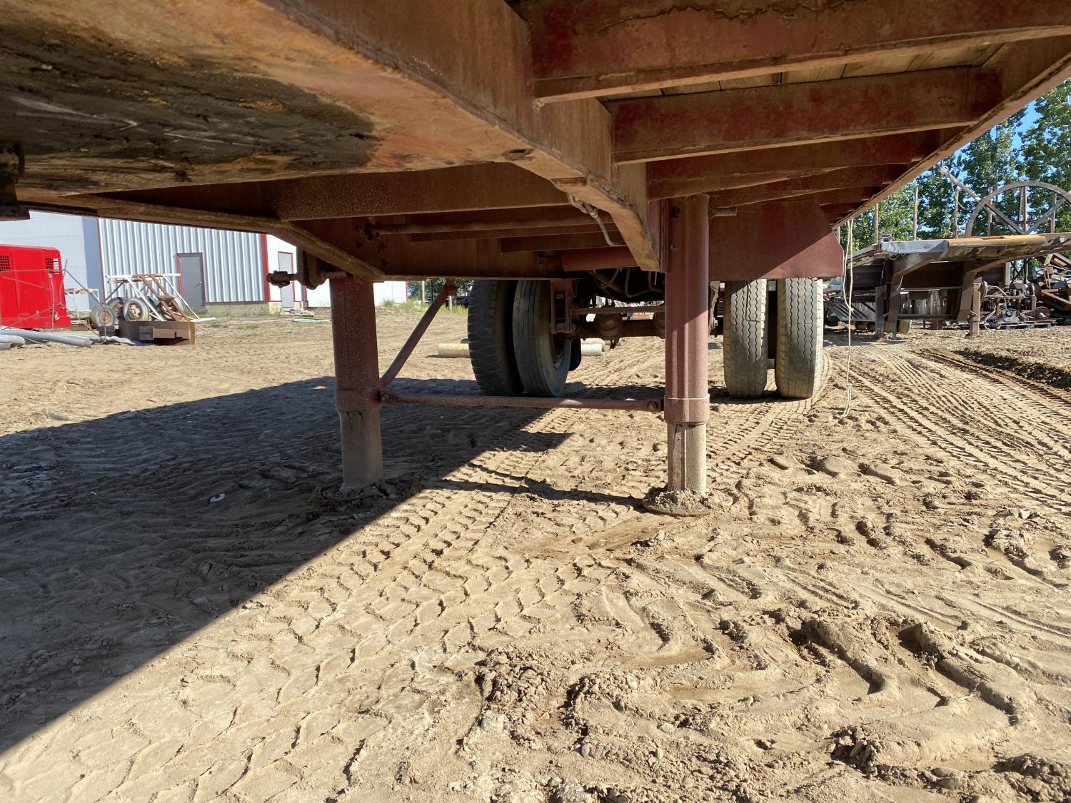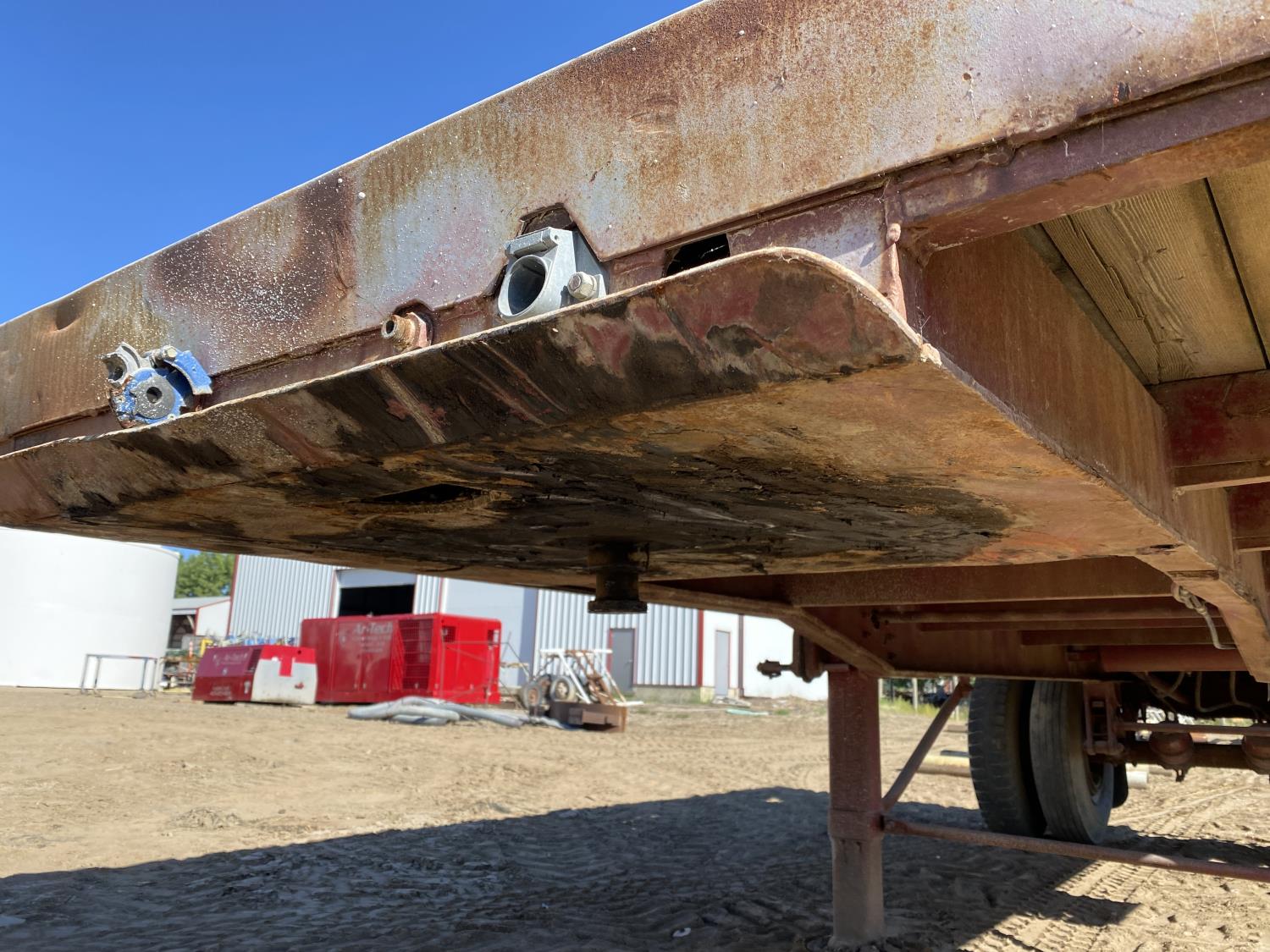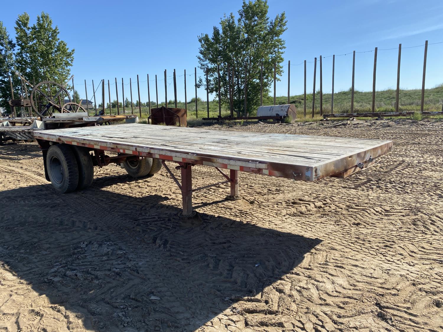 106 inch wide deck, wood deck, stake pockets, rub rails, spring suspension, 10-20 tires