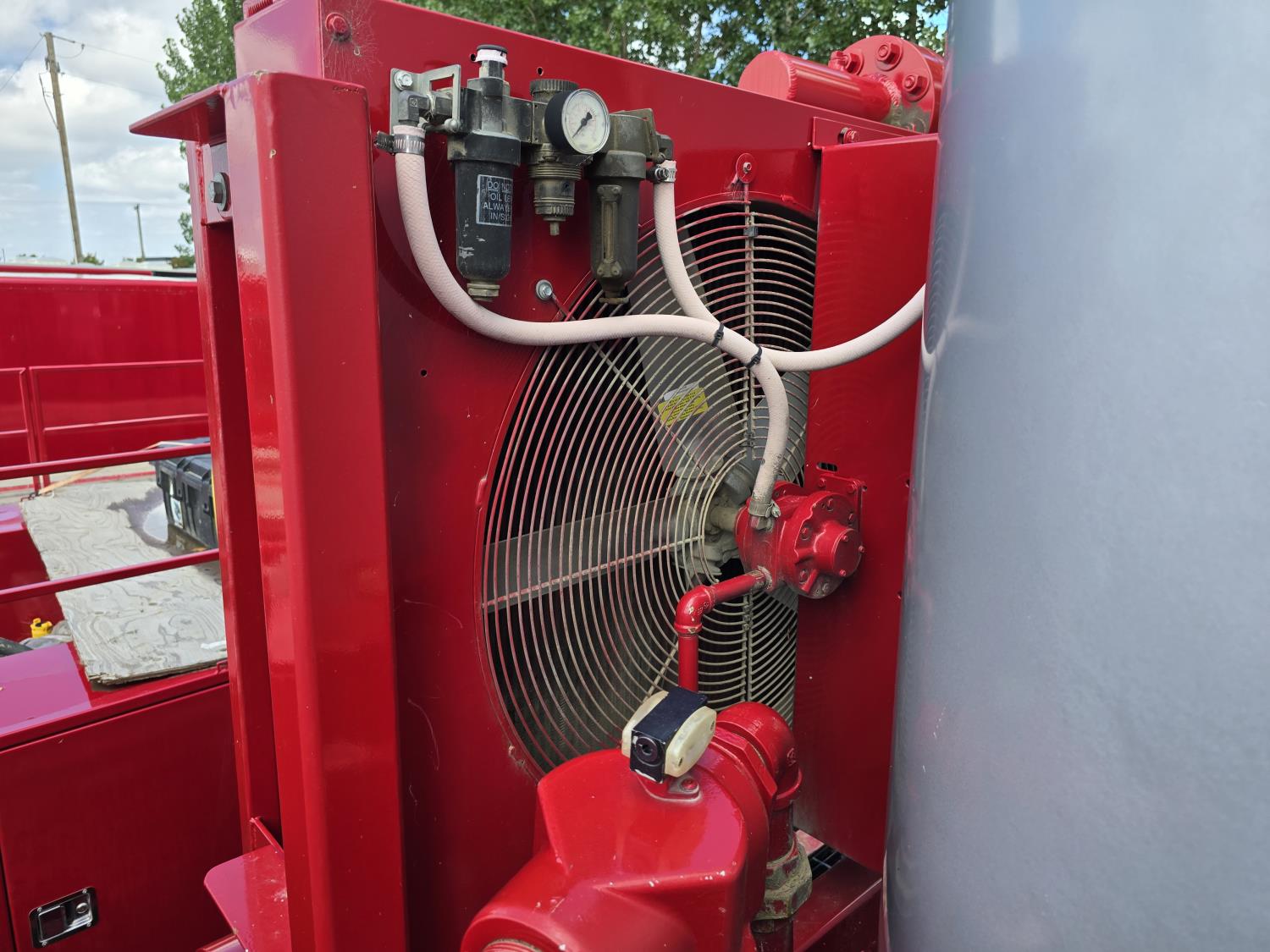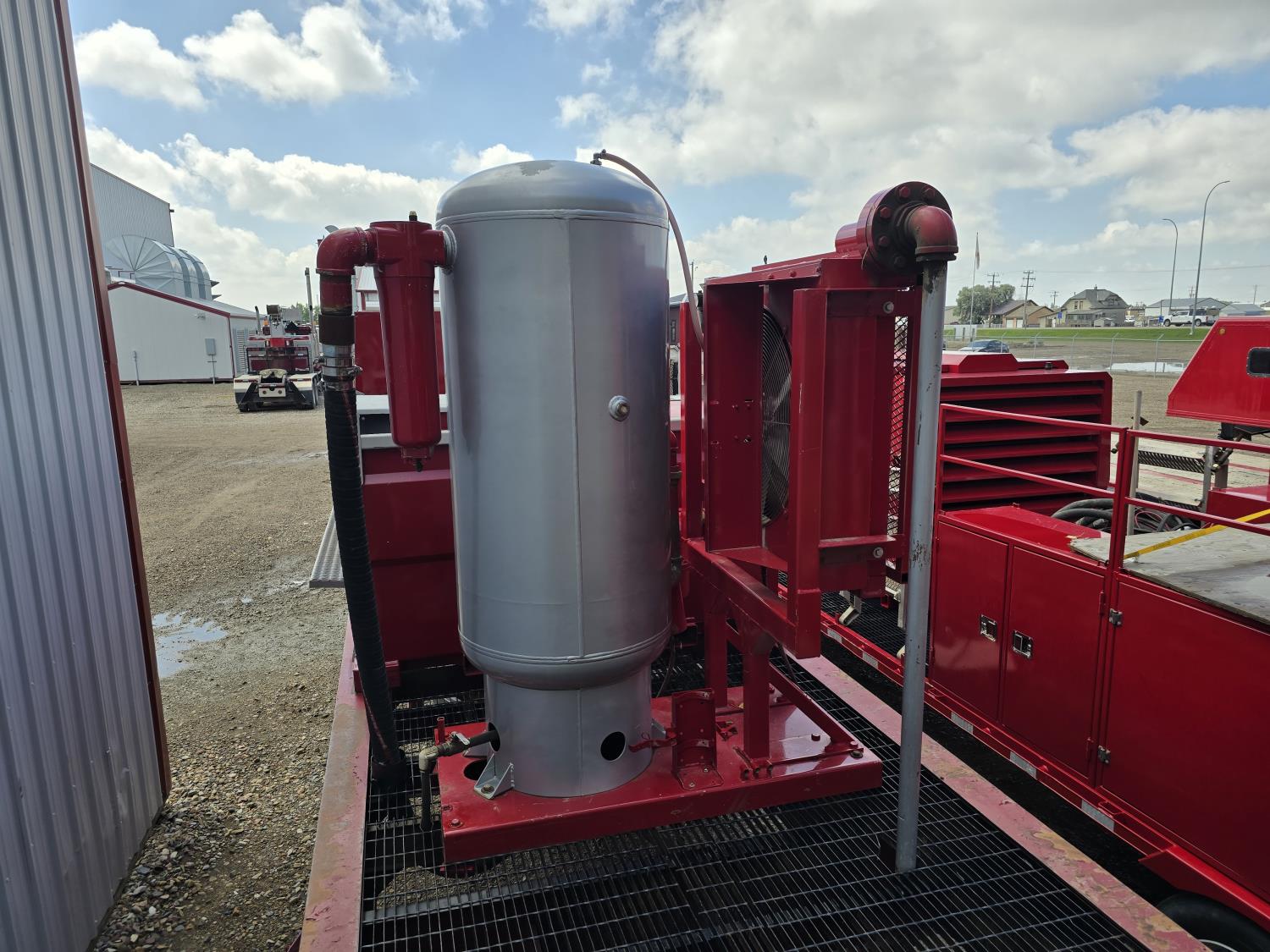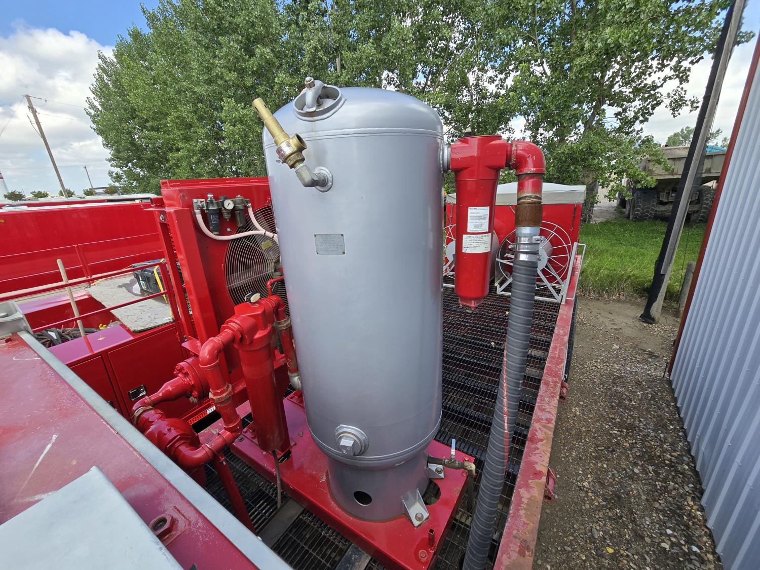 91 inch wide deck, steel deck, (2) 2013 600 lb blast pots, air dryer, cargo winches, tool / storage box, air brakes, Sullair 900CFM compressor, 8 ft L x 7 ft W x 4 ft T sand box, Webasto heater on compressor, spring suspension, 11R22.5 tires