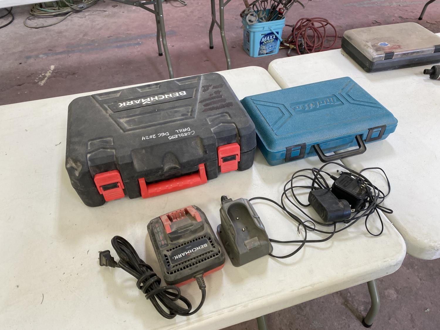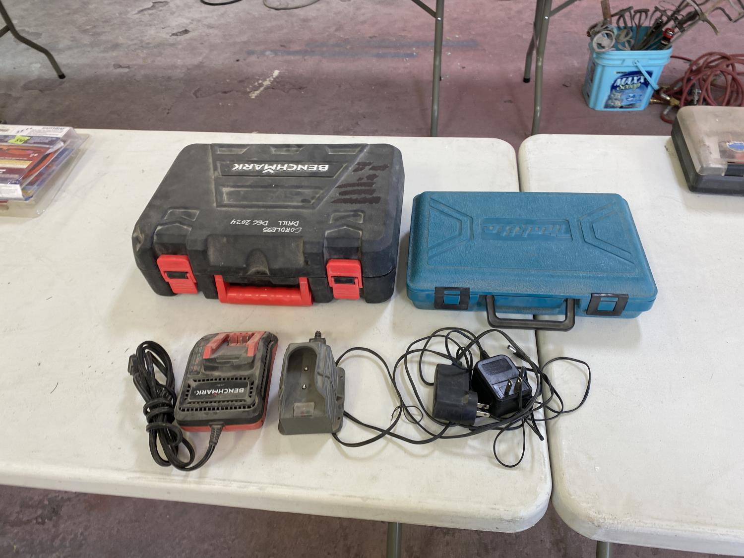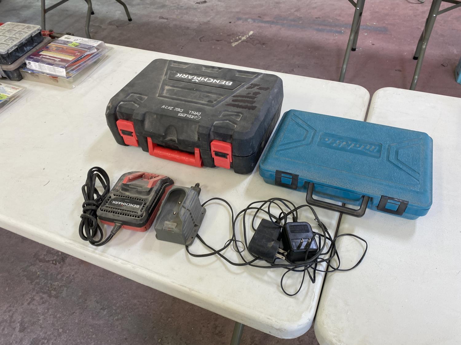 1160 Qty of (2) Tool Cases W/ (3) Misc Chargers