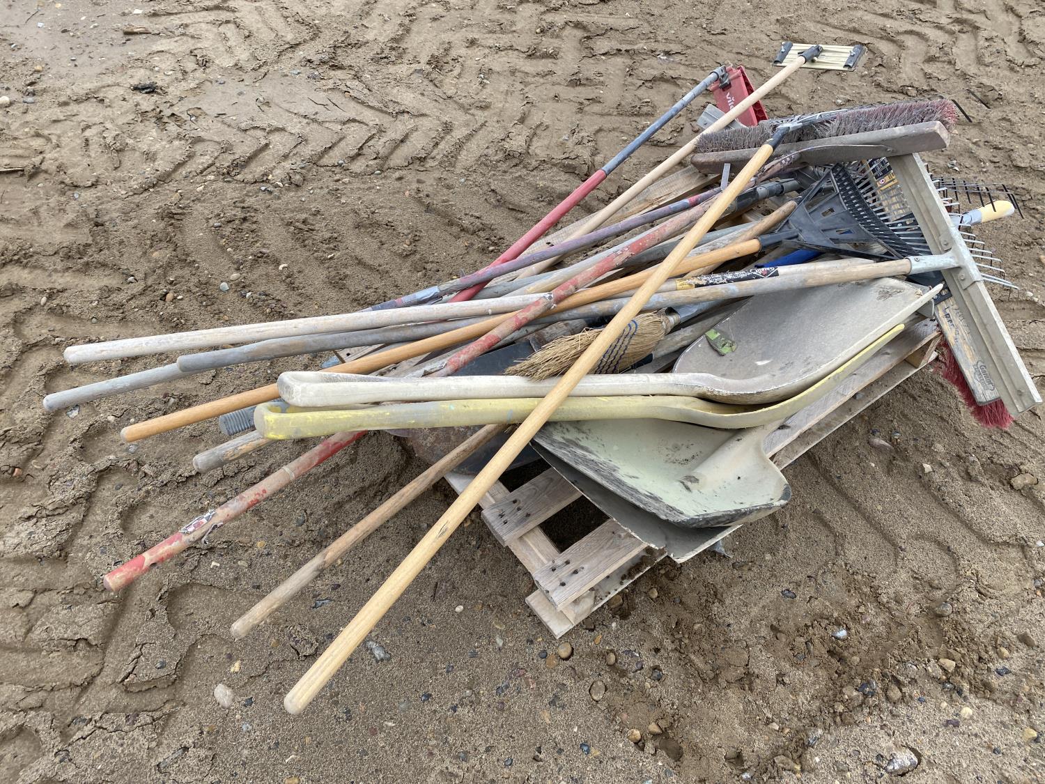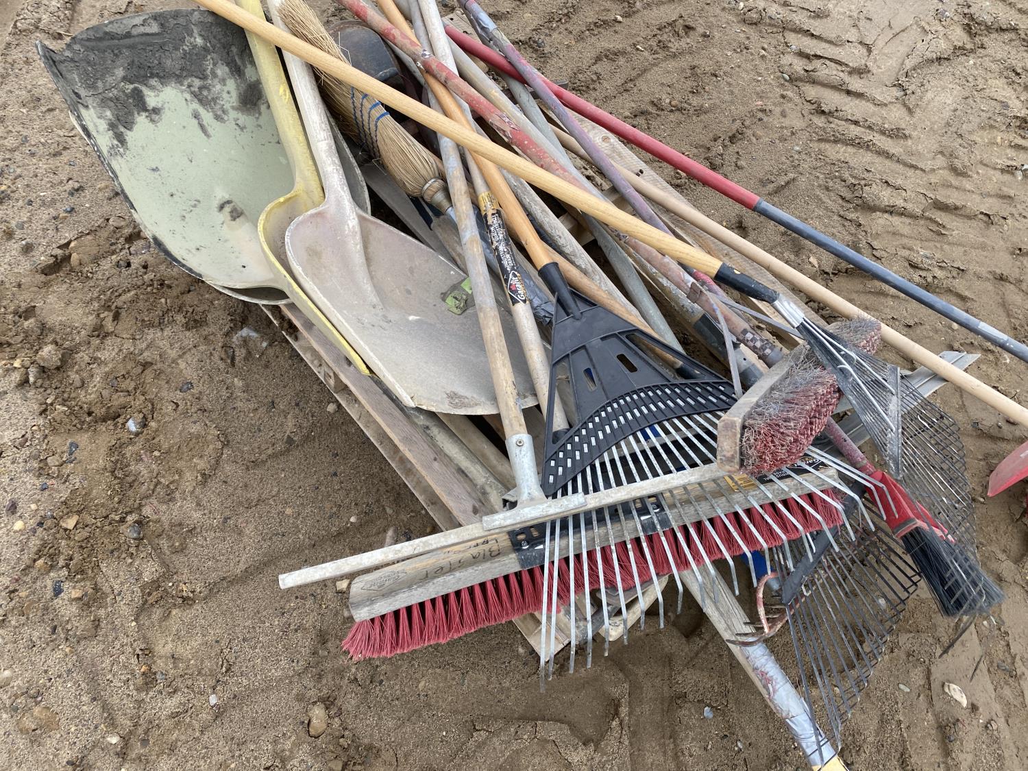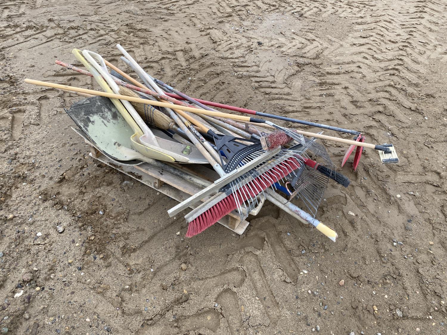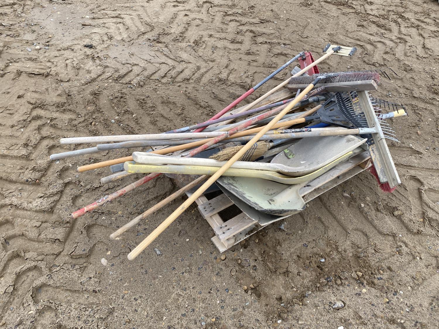 1105 Qty of Misc Shovels, Brooms & Rakes