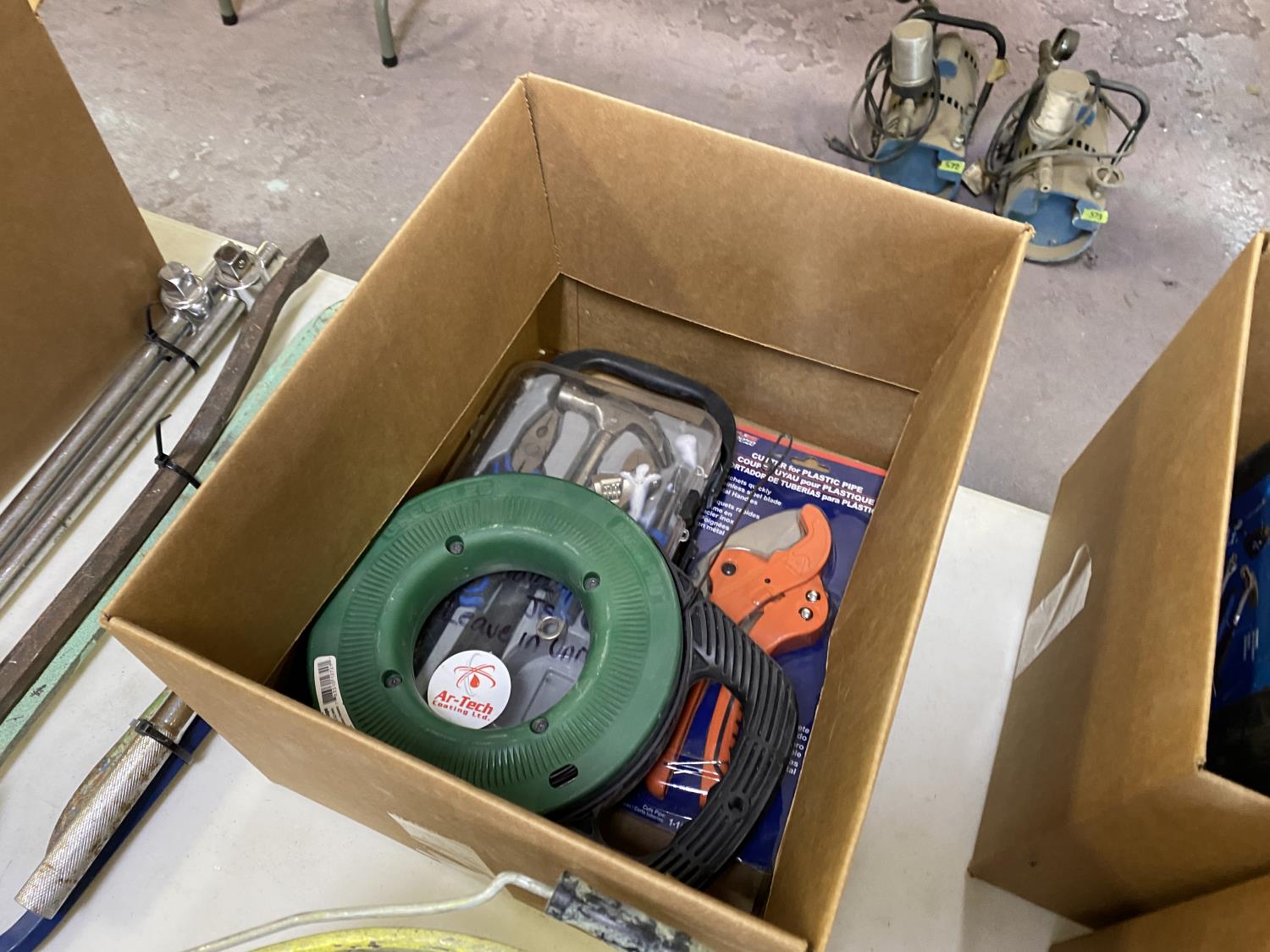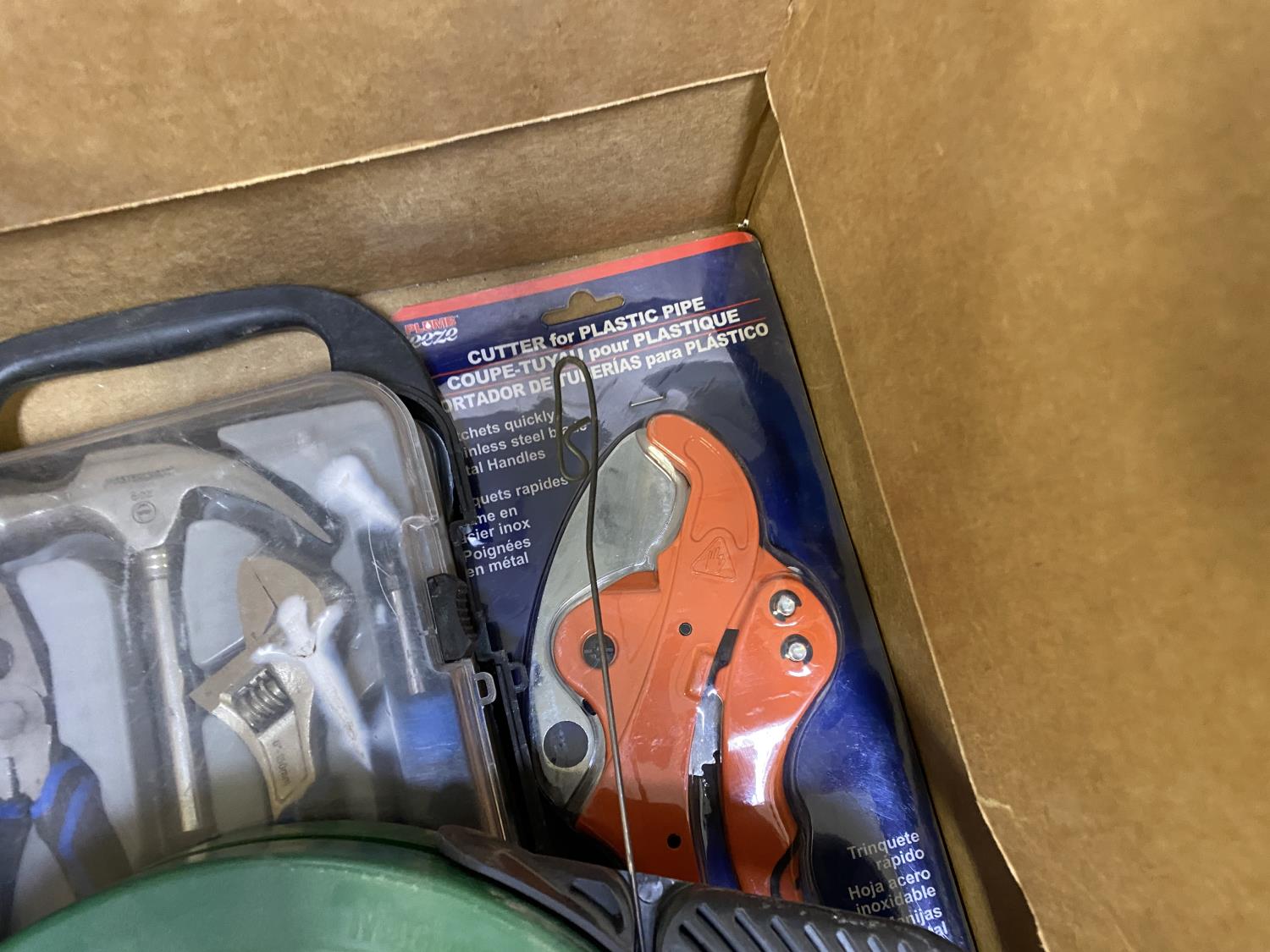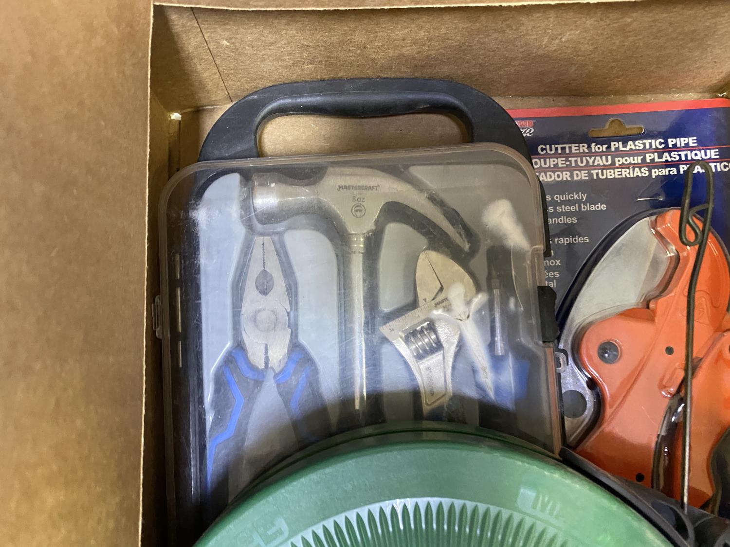 includes Mastercraft tool kit, 65 ft steel fish tape, plastic pipe cutter