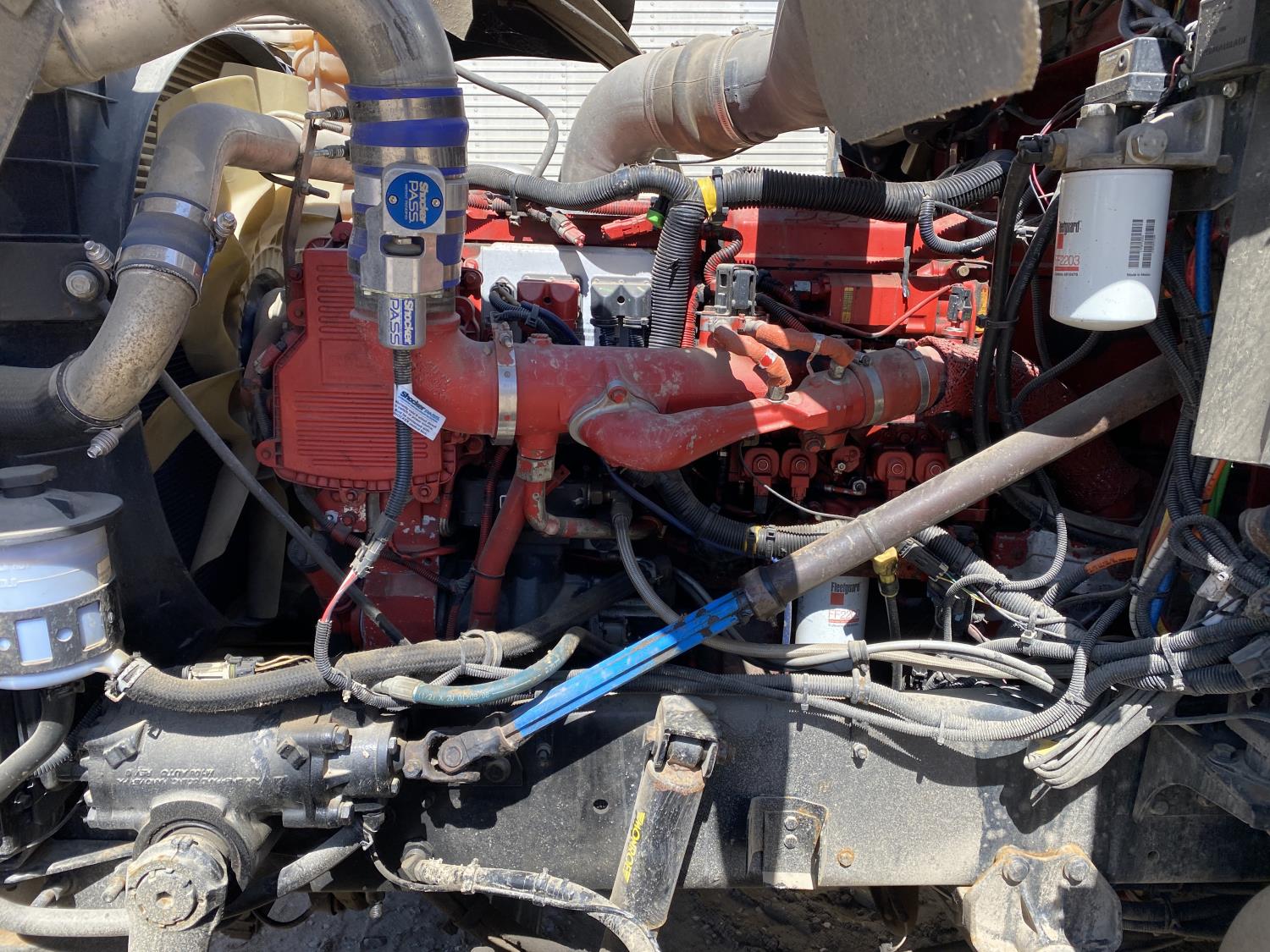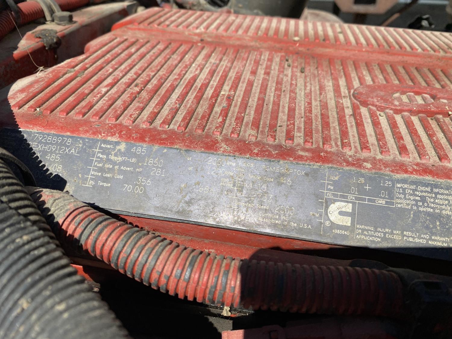 Cummins ISX 15 6 cylinder 485 HP engine, engine brake, engine block heater, Eaton Fuller auto shift transmission, A/C, air ride suspension, 12,000 lb front axle, 40,000 lb rear axles, full lockers, 187 inch WB, all aluminum wheels, 11R24.5 tires