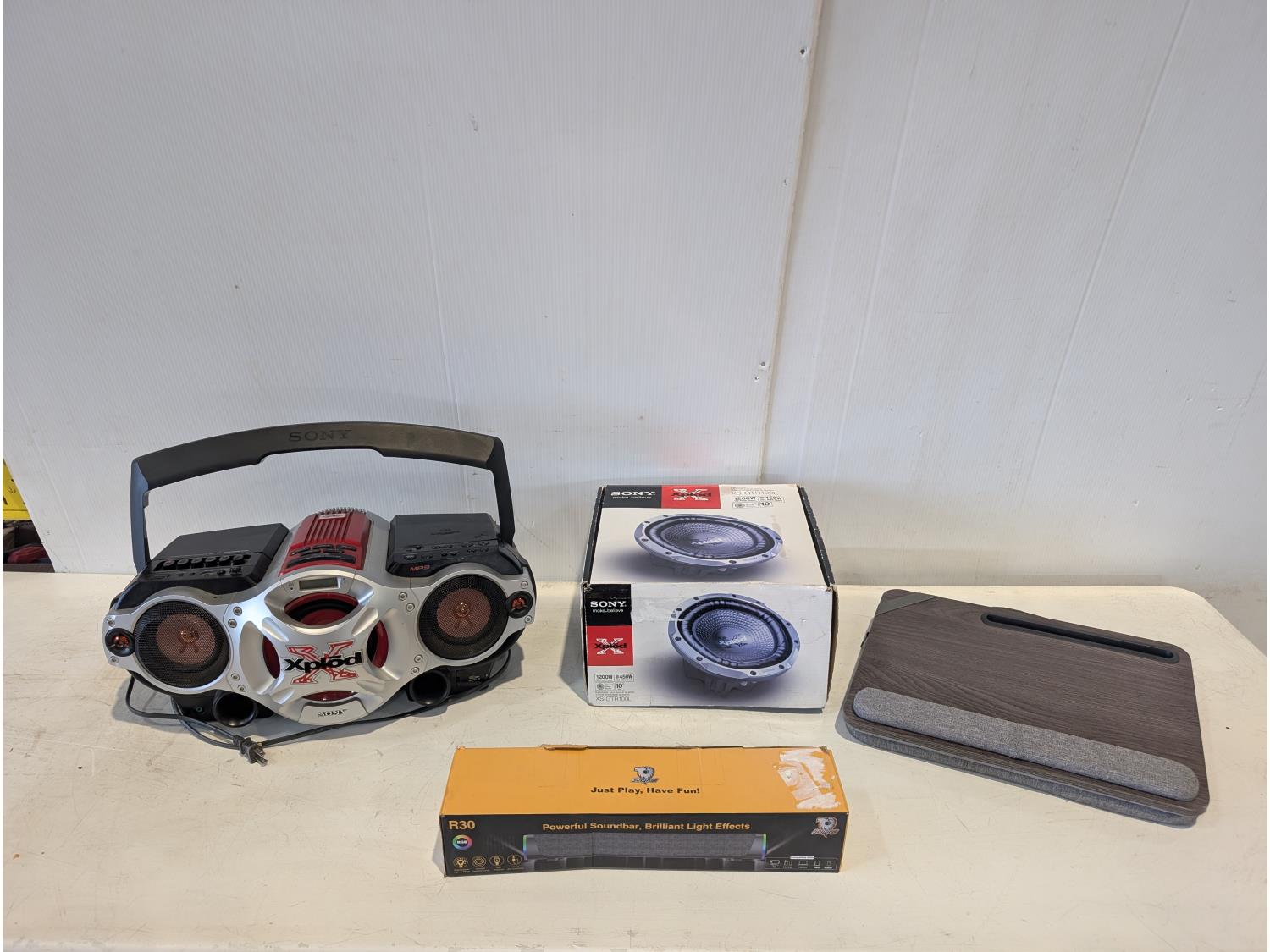 1330 Sony Xplod Stereo, 10 Inch Subwoofer, Soundbar and Lap Desk