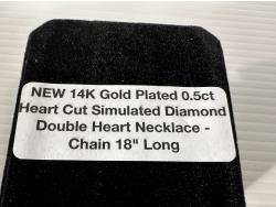 1607 Smartlife 14K Gold Plated 0.5 Ct Heart Cut Double Heart Necklace (Unused)