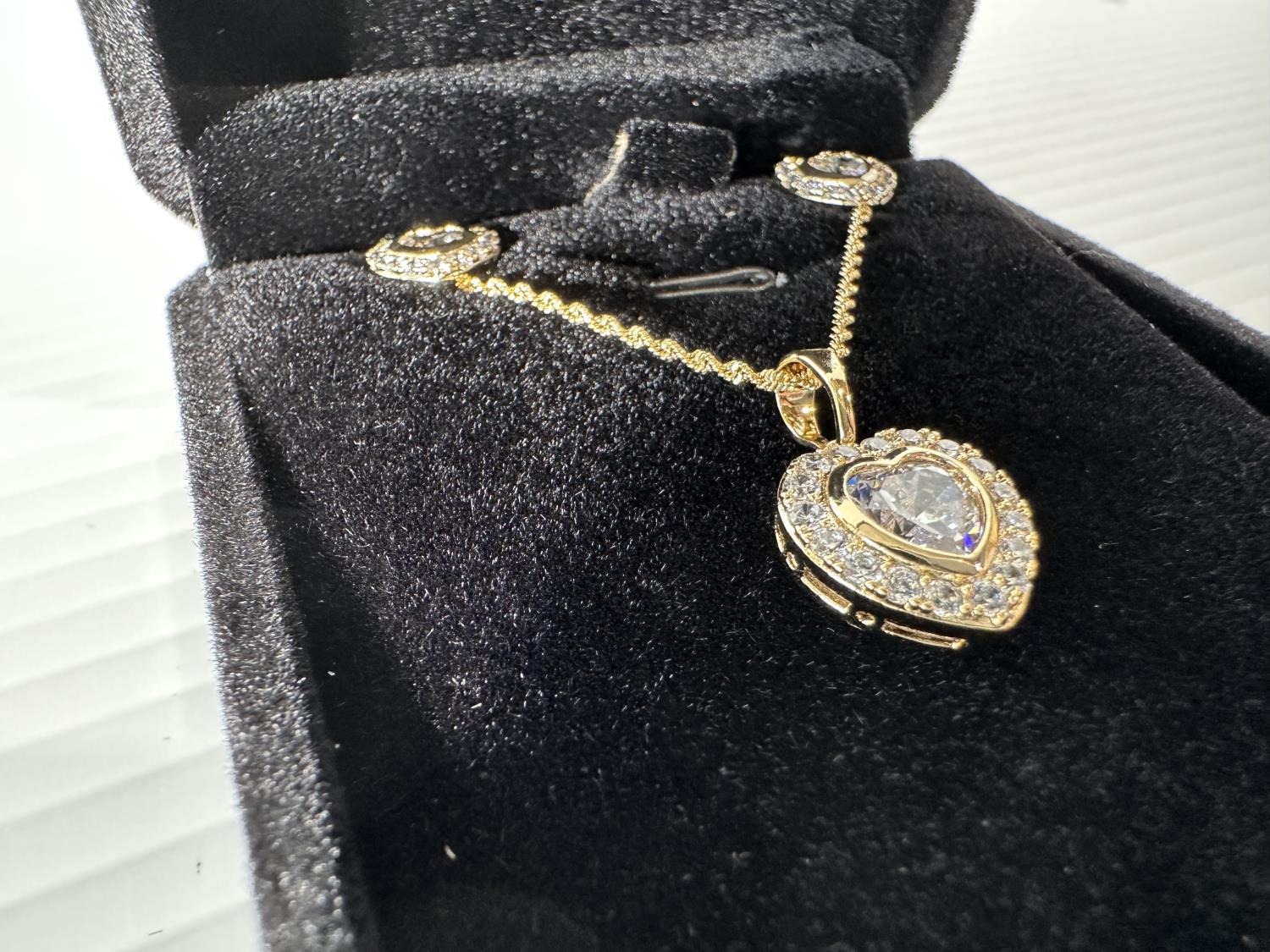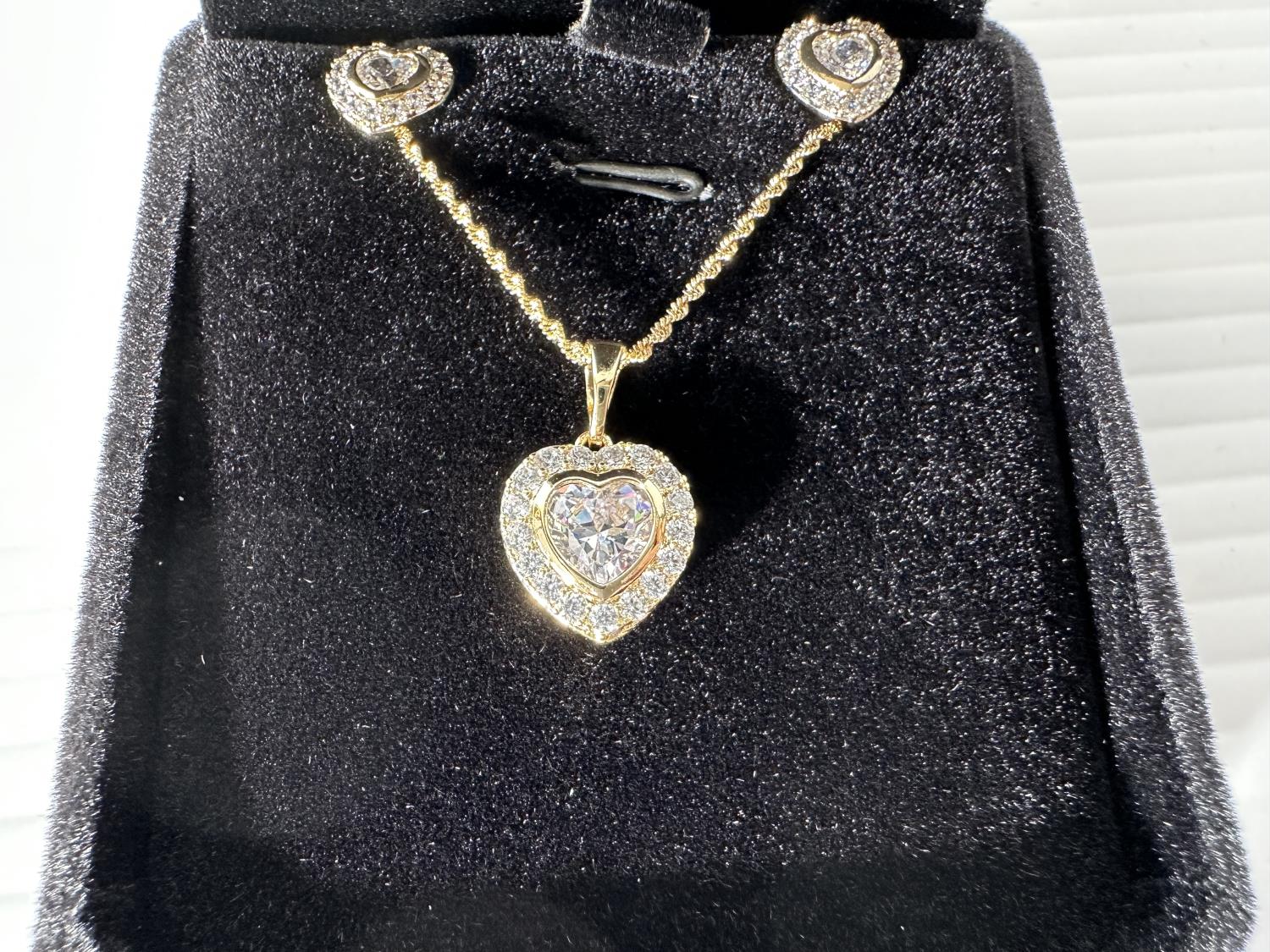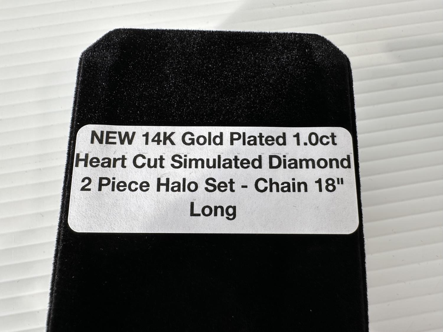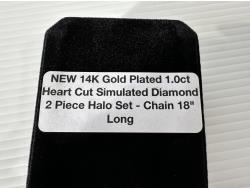 1605 Smartlife 14K Gold Plated 1.0 Ct Heart Cut 2 Piece Halo Set (Unused)