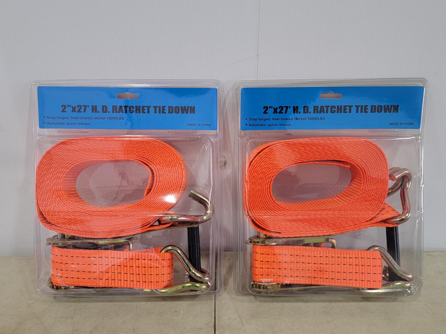 1143 (2) 2 Inch X 27 Ft Heavy Duty Ratchet Tie Down Straps (Unused)
