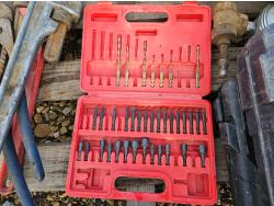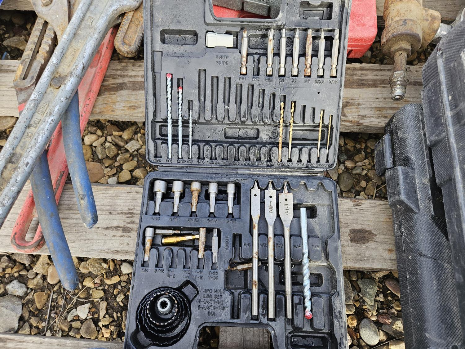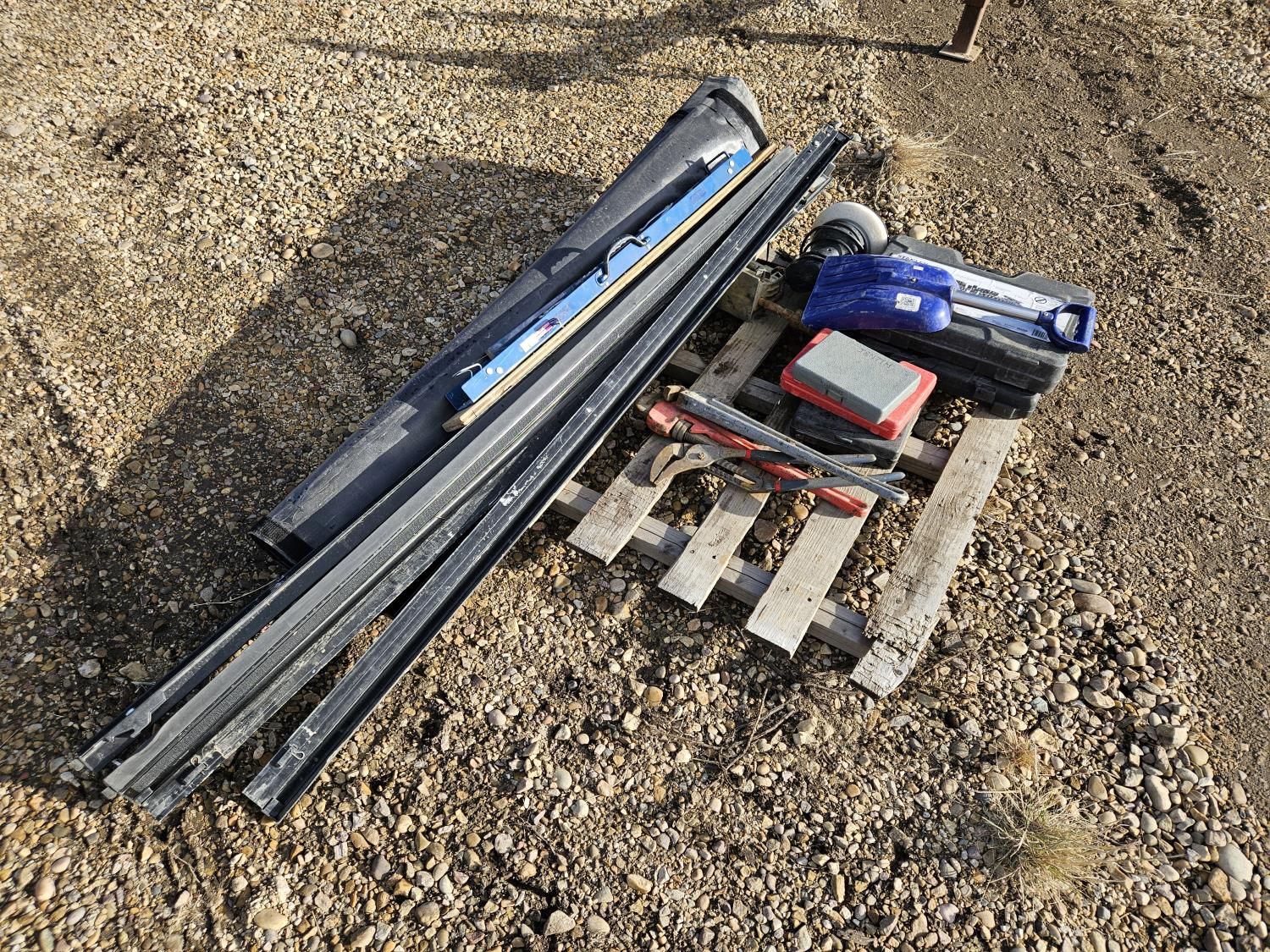 Snow shovel, orbital buffer, pipe wrenches, tool kits