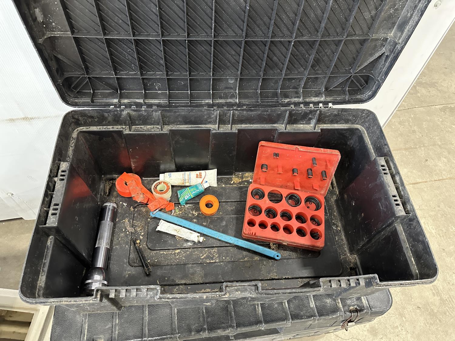 1267 (2) Poly Storage Bins and Poly Gull-Wing Tool Box