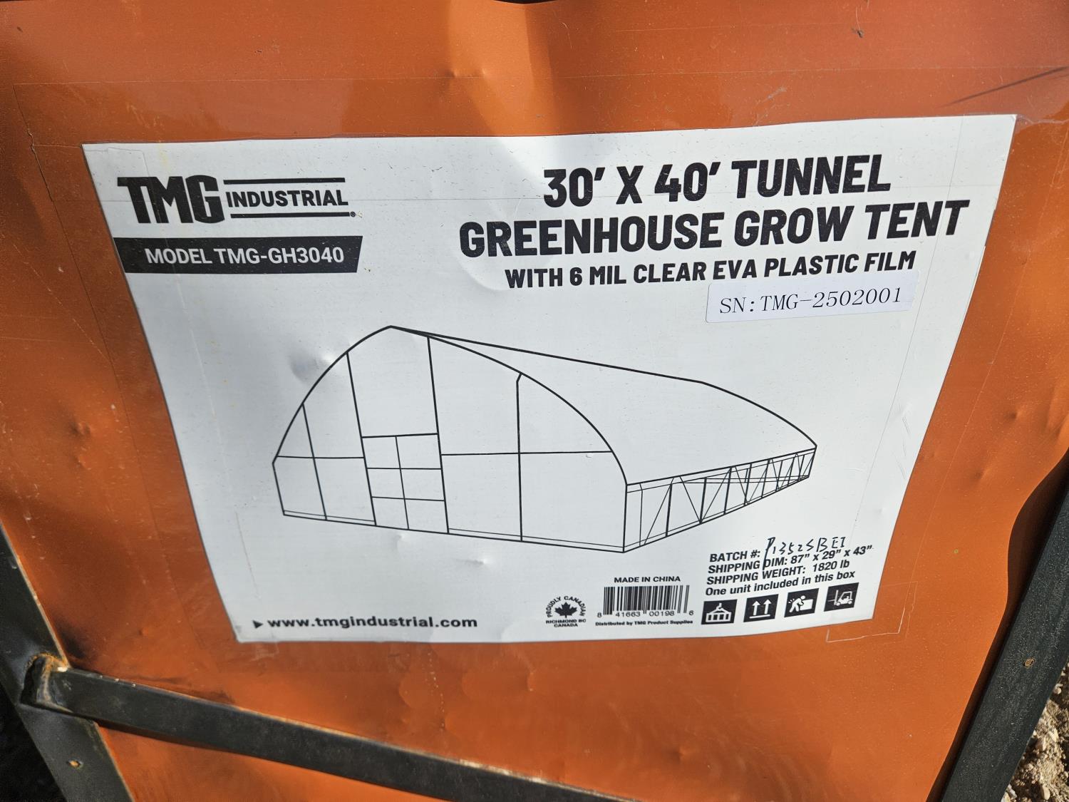 1806 TMG Industrial 30 Ft X 40 Ft Tunnel Greenhouse Grow Tent (TMG Returned Item)
