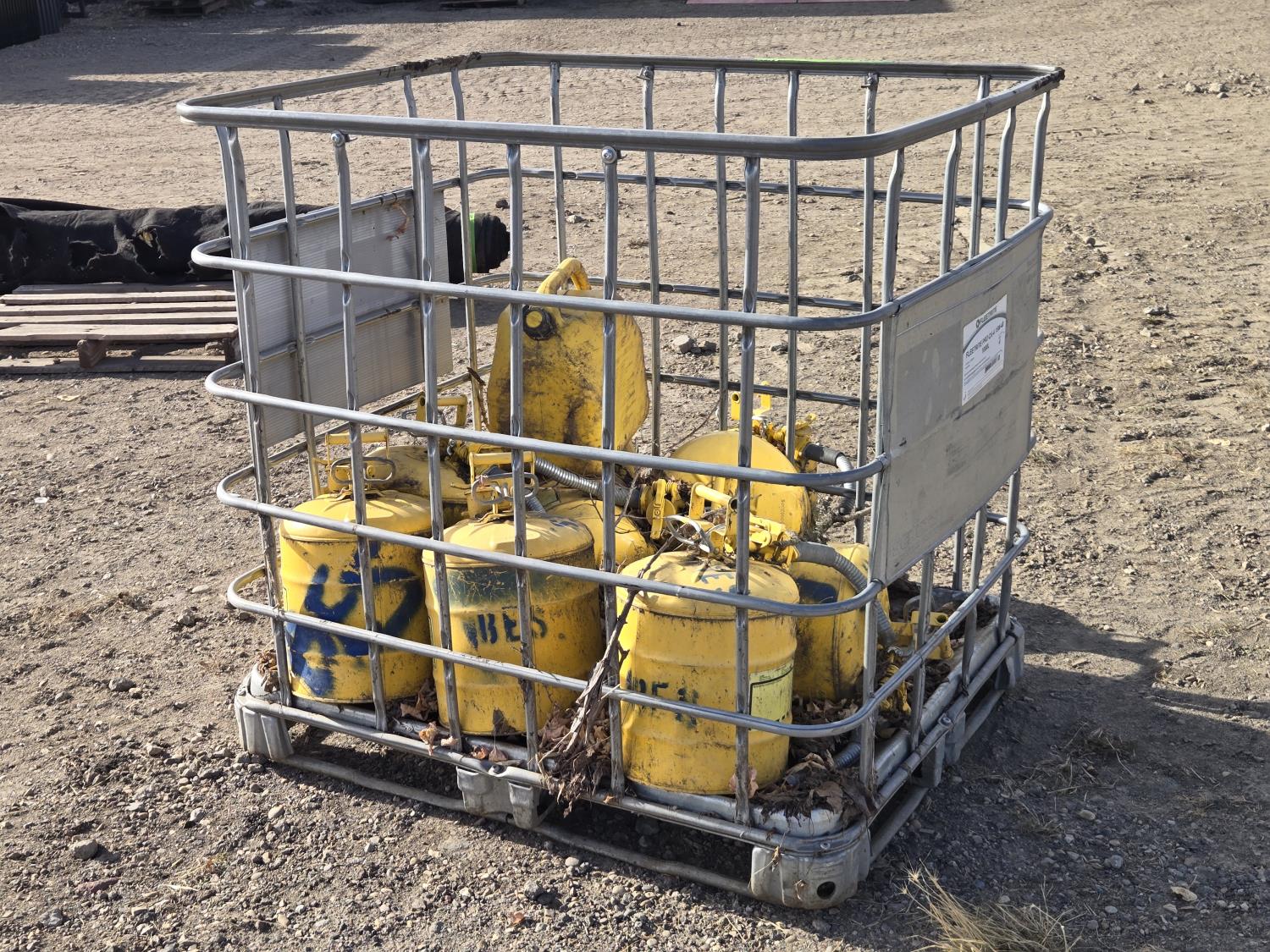 2241 (9) Metal Fuel Cans, (1) 20L Poly Jerry Can