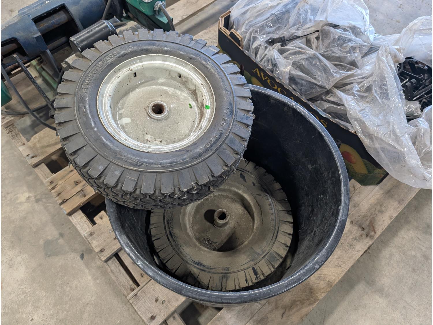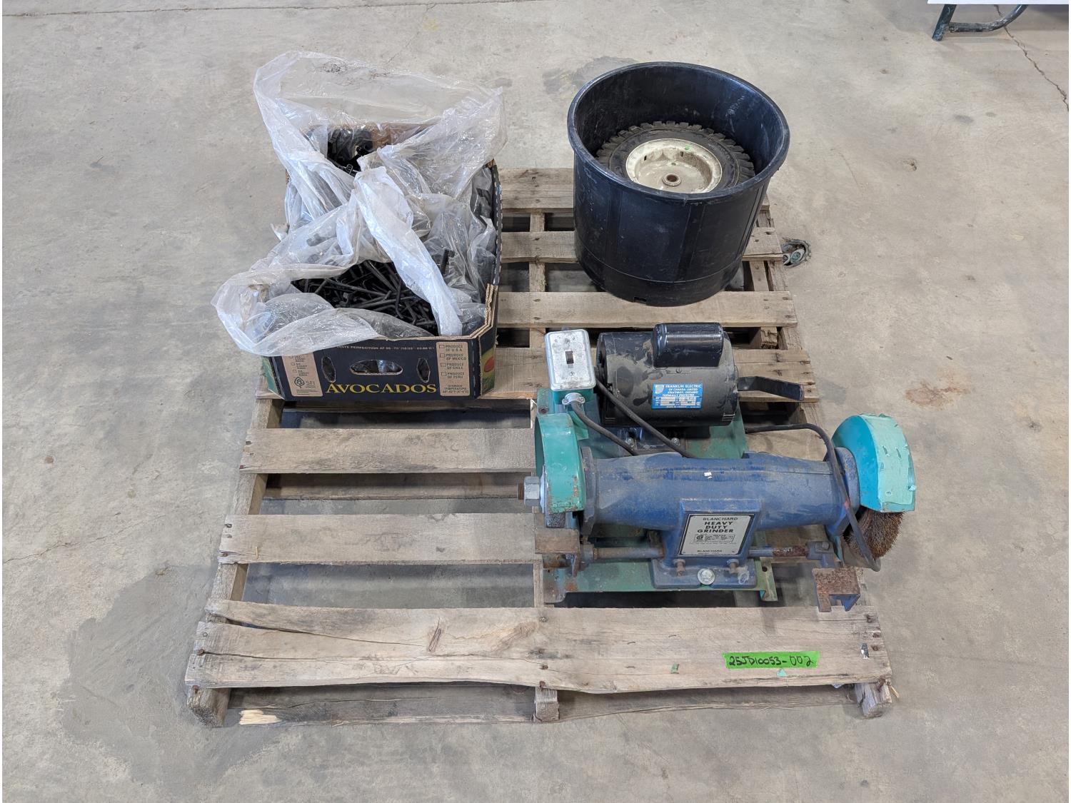 1263 Qty of Slatwall Hooks, Blanchard Heavy Duty Bench Grinder and (2) 12.50X4.00 Utility Tires